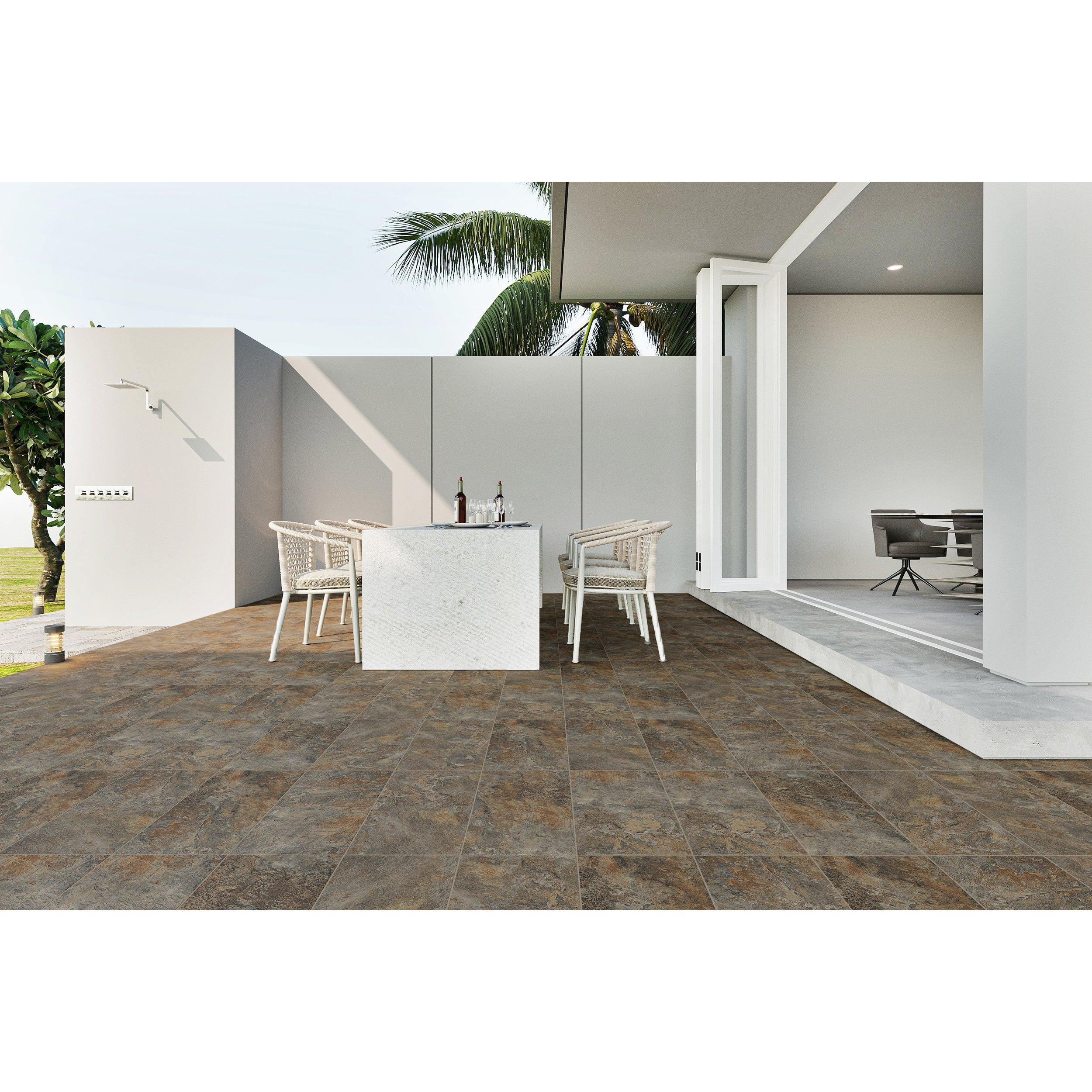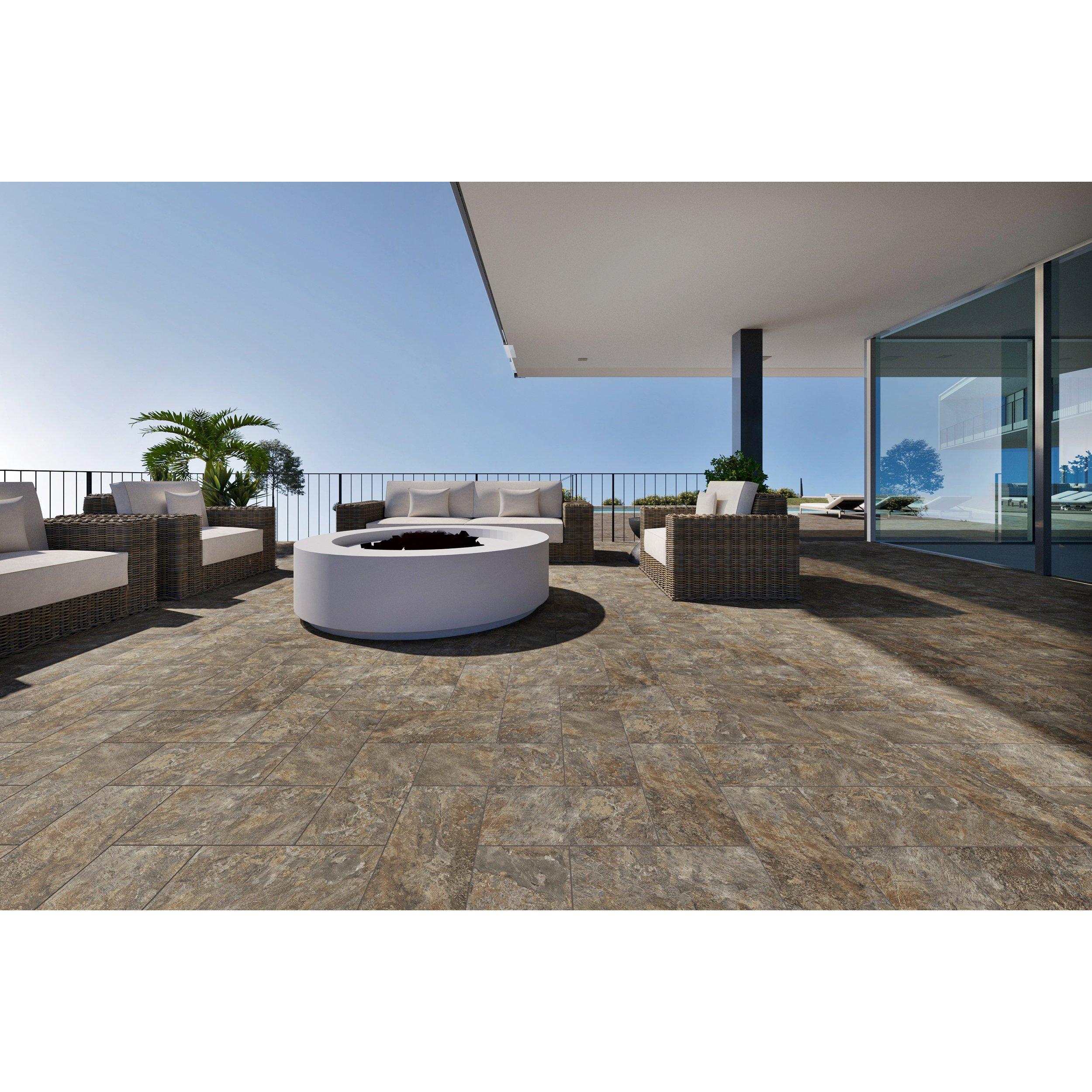 This brown matte Shadowstone Slate Porcelain Tile is 12 x 24.