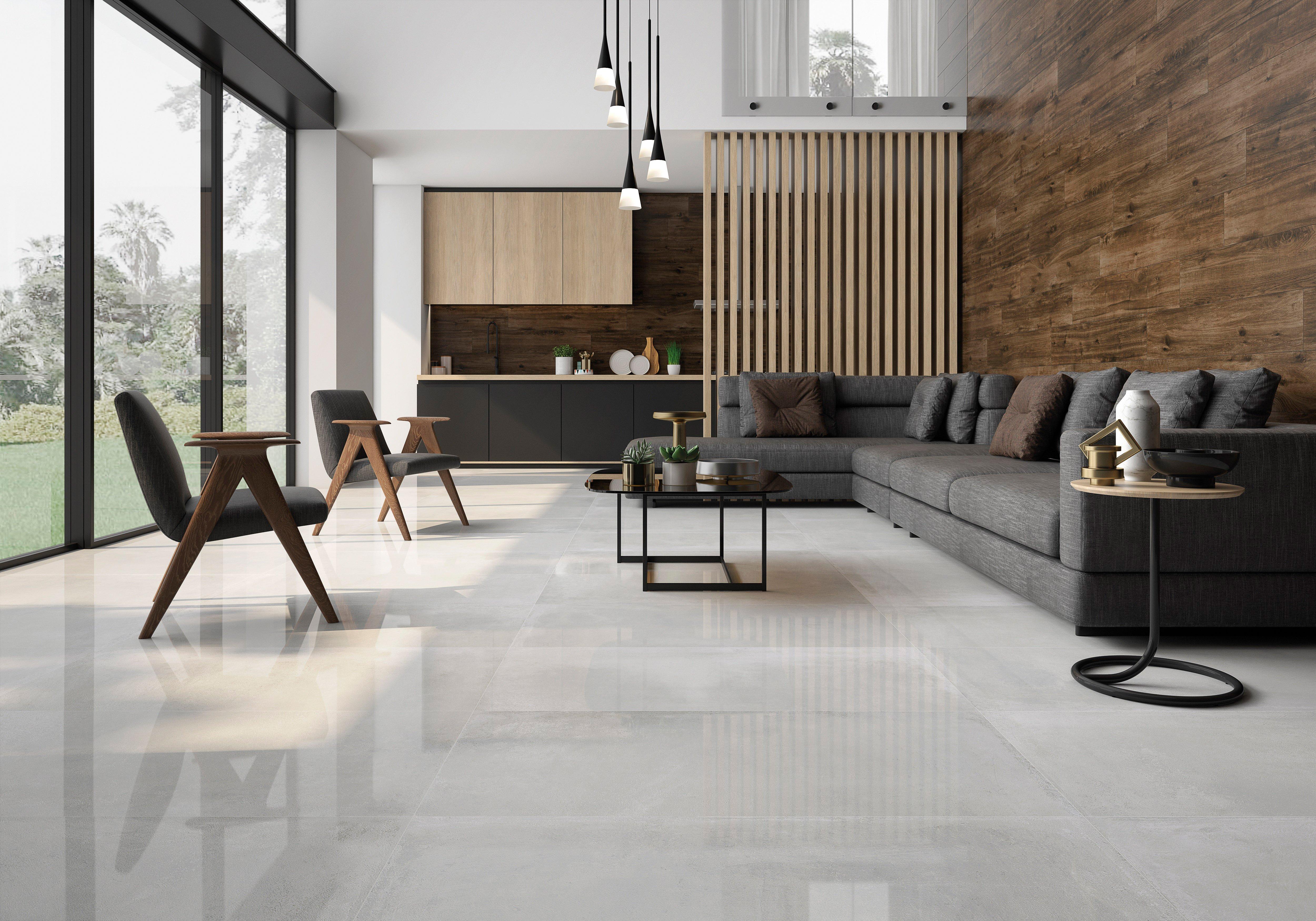 With a polished or high gloss finish, this gray Torre Gray Polished Porcelain Tile is 24 x 48.