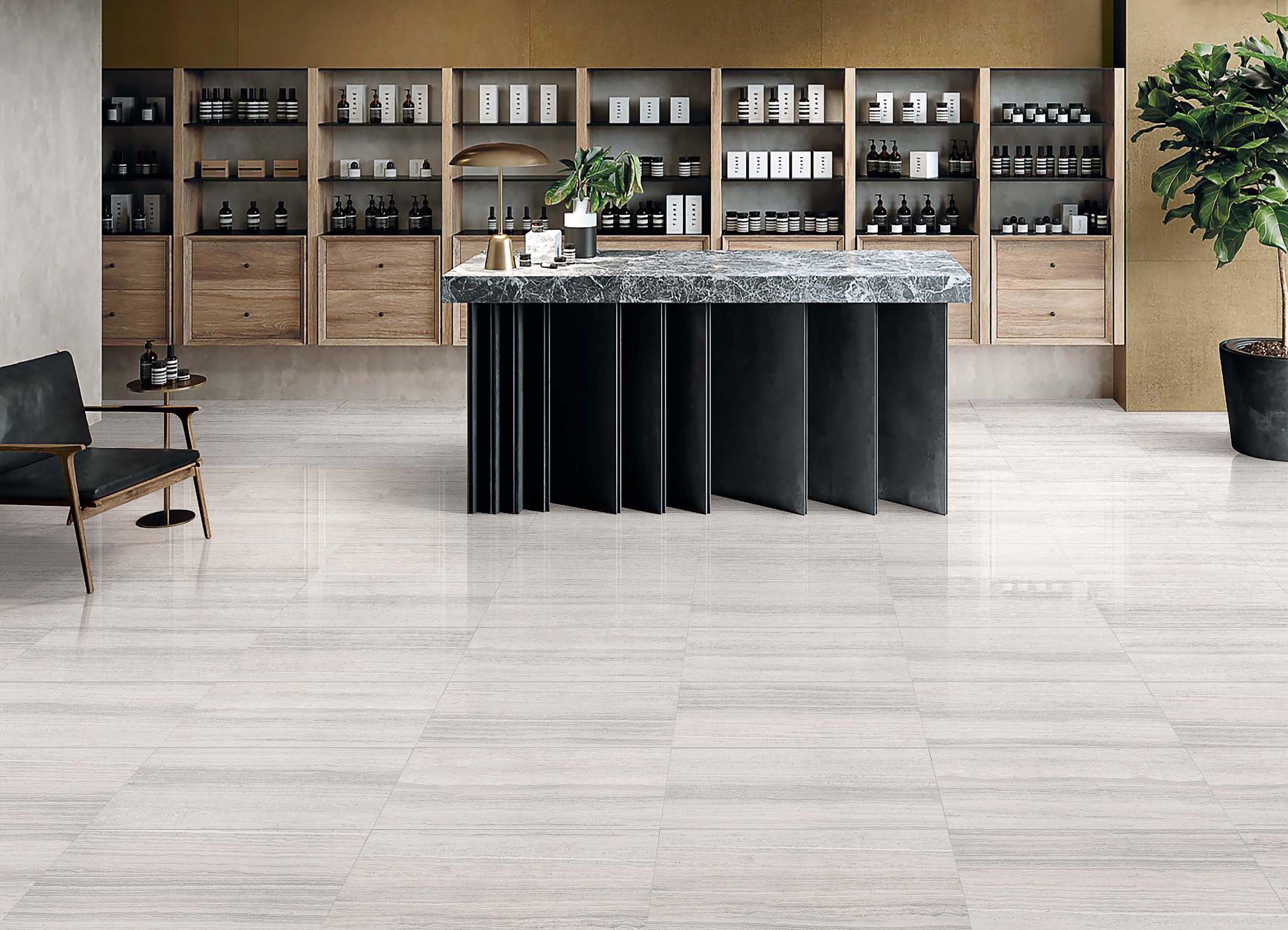 • Through-body: The pattern or color is permeated throughout the entire body of the tile, thus reducing the visibility of dents and chips.