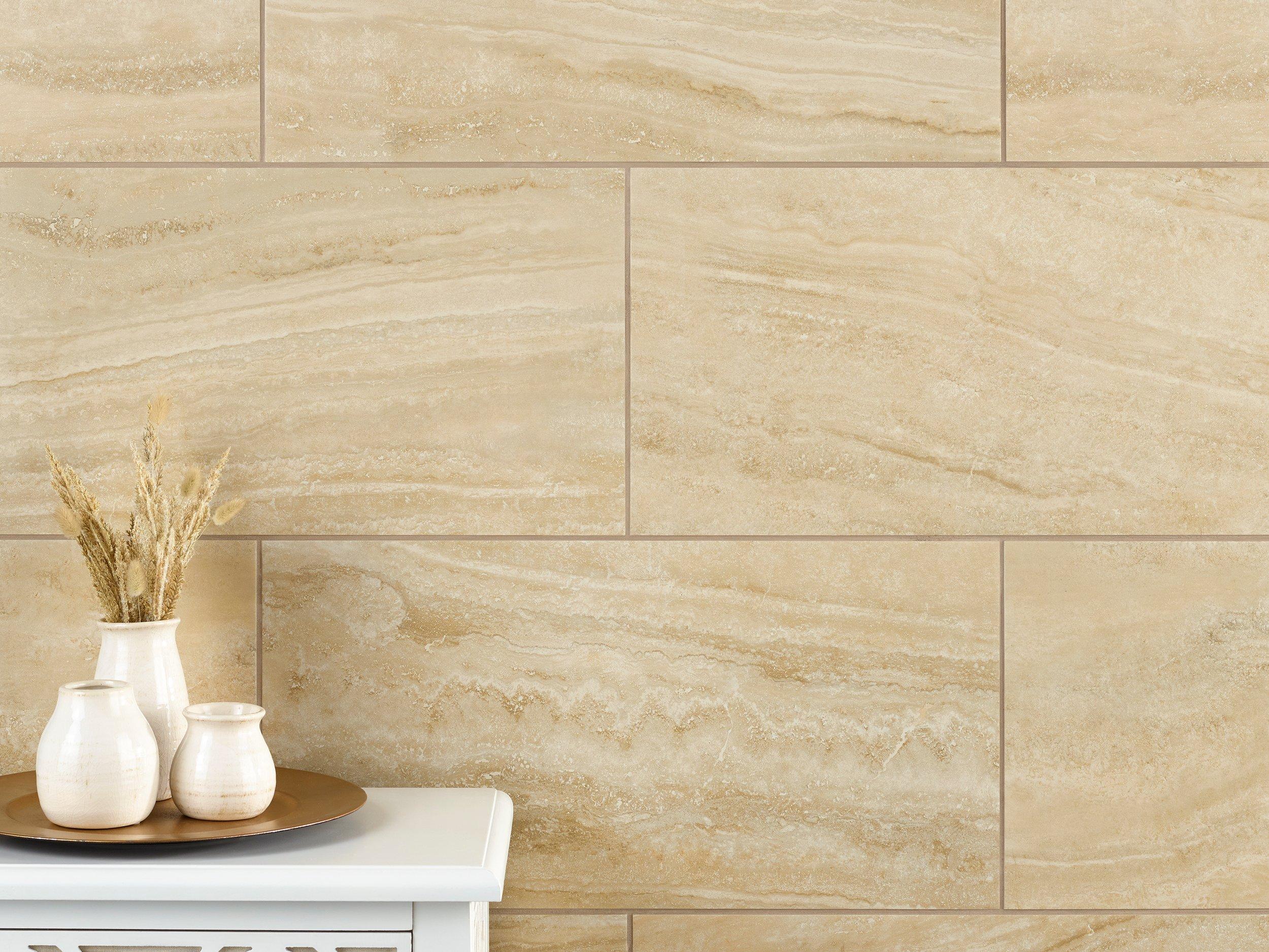 Get the look of natural stone with this beautiful Travertino Navona Crema Porcelain Tile. This 12 x 24 tile comes in beige and has a matte finish. This tile gives you the beautiful fade-resistant variations of natural stone with the added benefit of easy maintenance. It’s already resistant to staining, so there’s is no need to seal this tile. Plus, this stone-look tile is engineered to last and able to withstand heavy foot traffic.