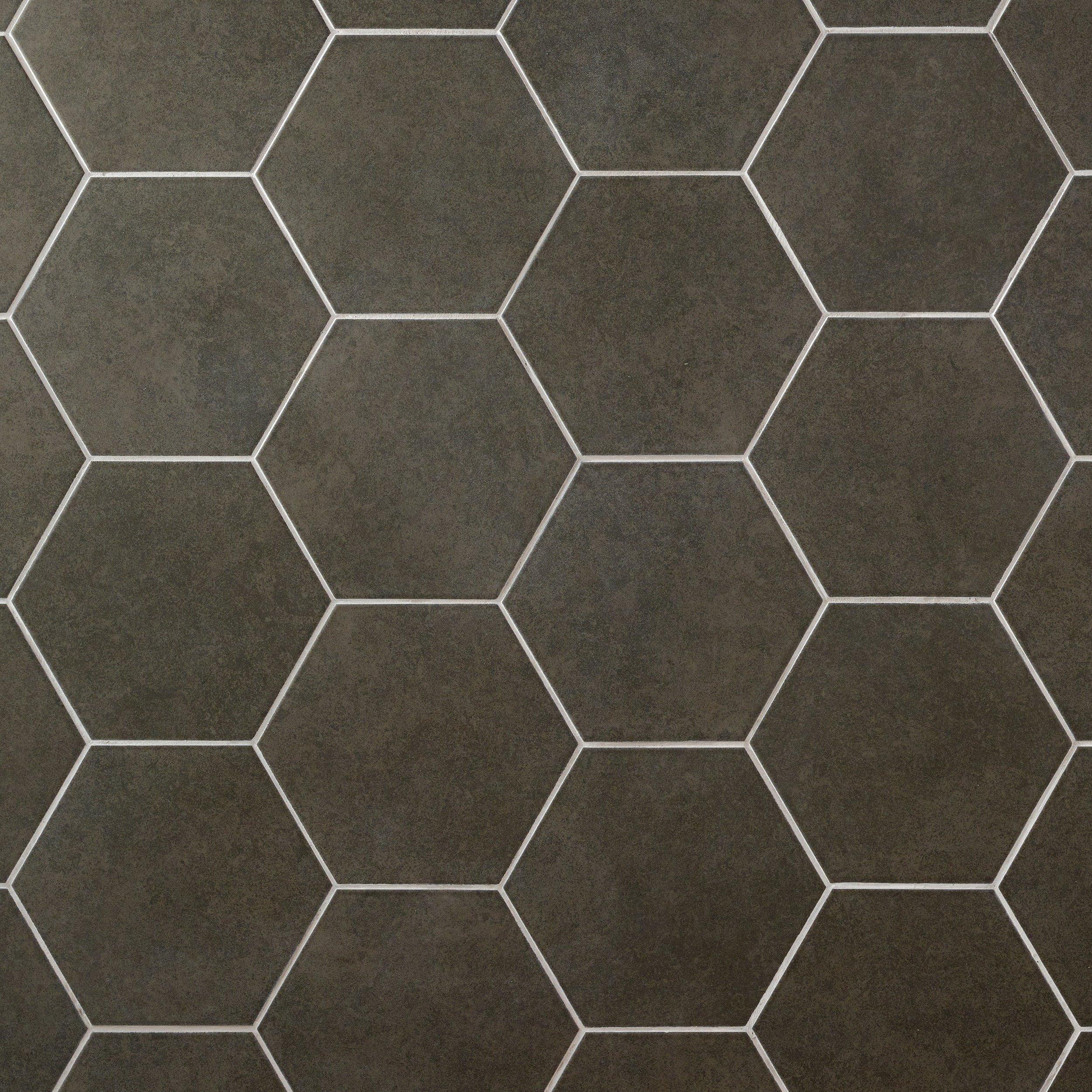 This gray matte Uptown Night Hexagon Matte Porcelain Tile is 9 x 11.