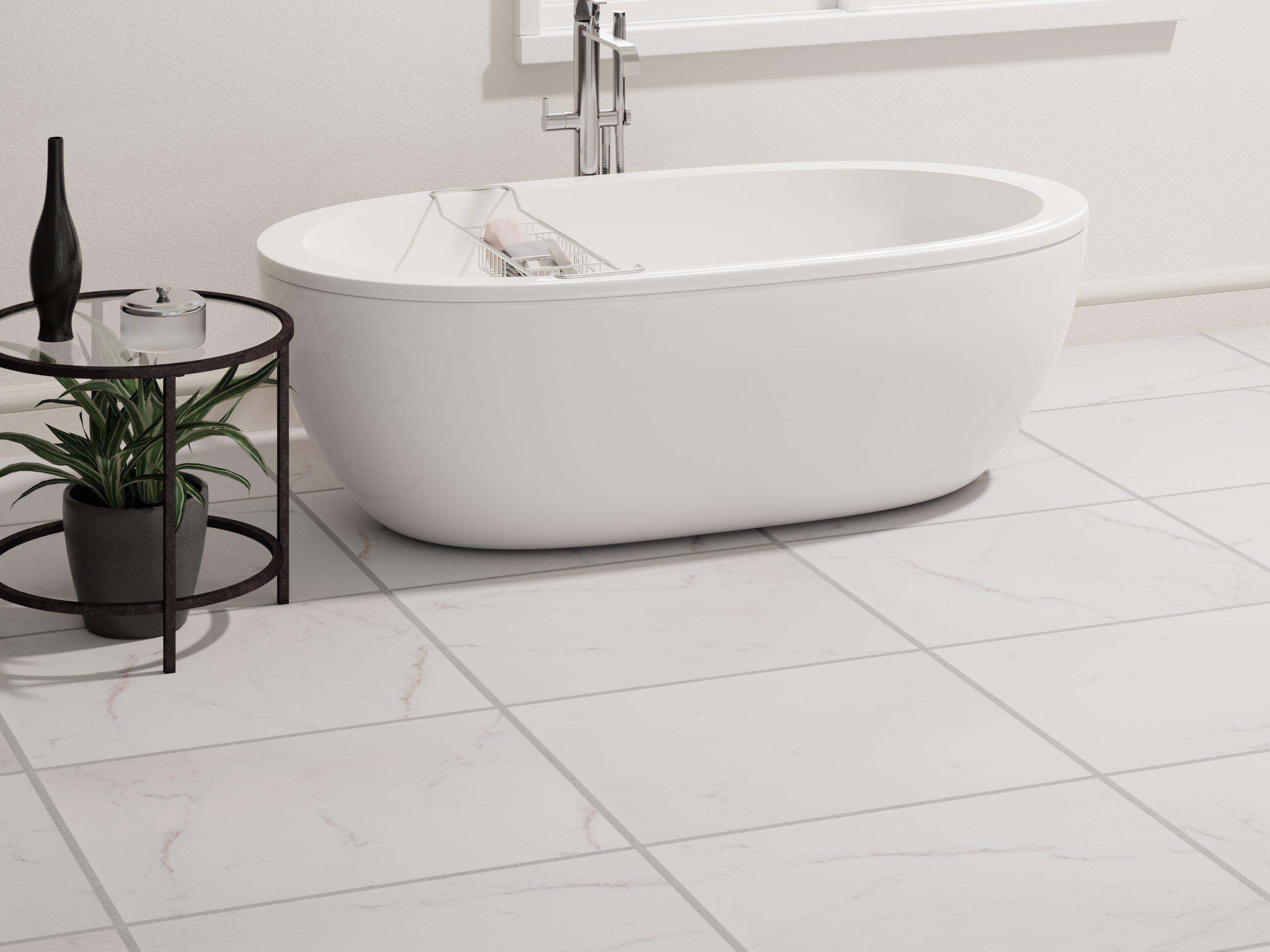 Get the look of natural stone with this beautiful Venato II Matte Porcelain Tile. This 24 x 24 tile comes in white and has a matte finish. This tile gives you the beautiful fade-resistant variations of natural stone with the added benefit of easy maintenance. It’s already resistant to staining, so there’s is no need to seal this tile. Plus, this stone-look tile is engineered to last and able to withstand heavy foot traffic.