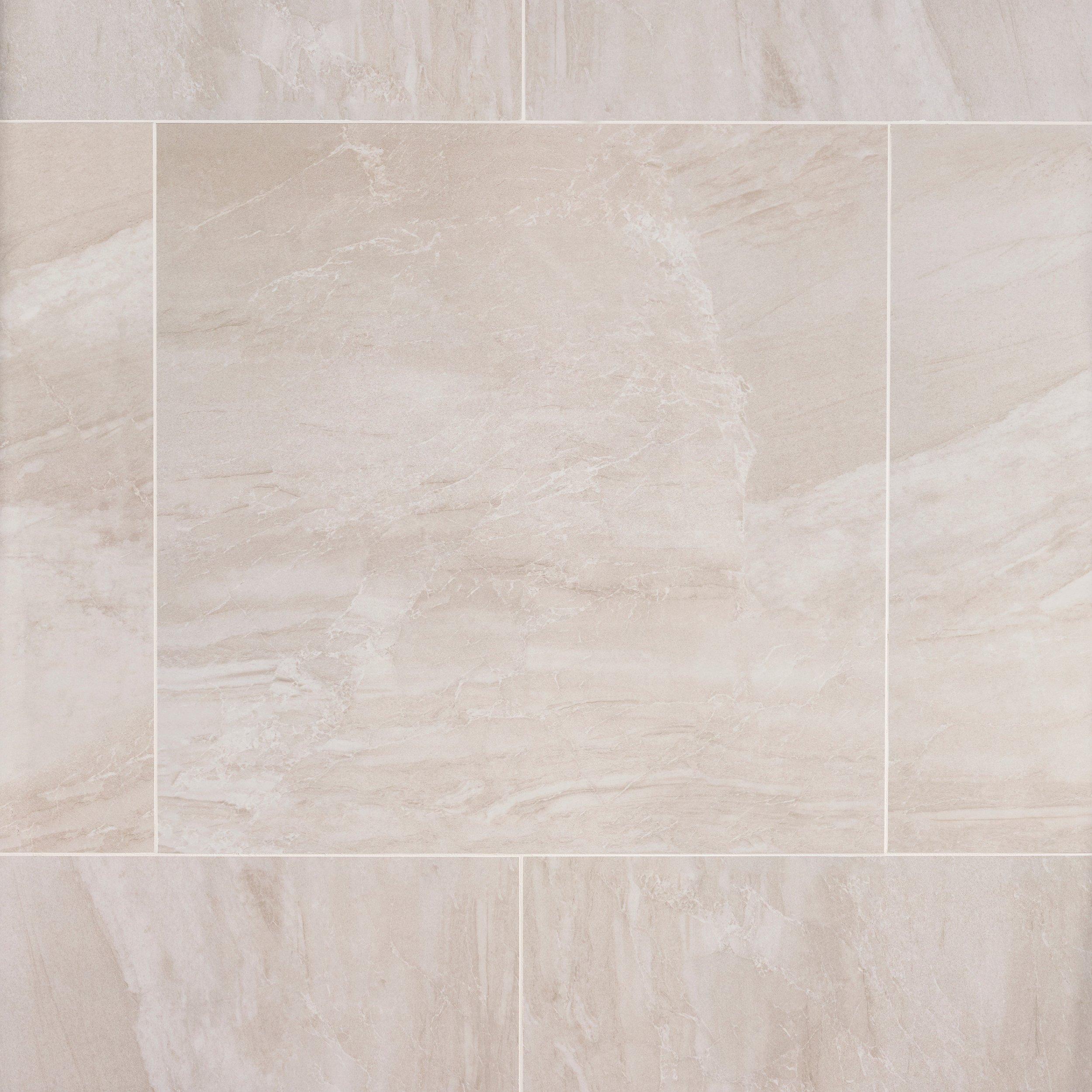 With a polished or high gloss finish, this gray Verona Greige II Polished Porcelain Tile is 24 x 24.