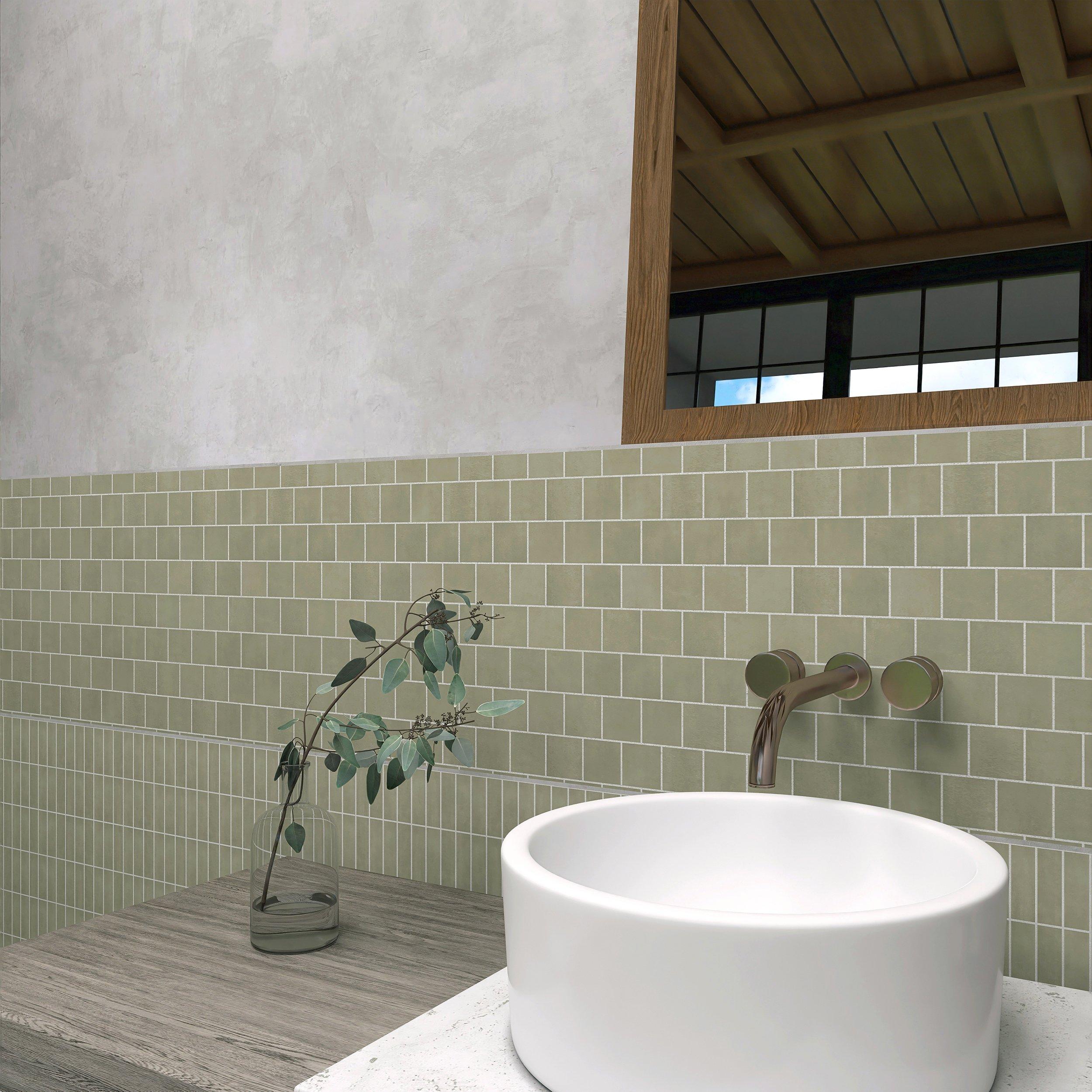 The beautiful green color of Vista Lux Sage Off Set Square Porcelain Mosaic adds a fresh and vibrant touch to any setting. This durable 13 x 12 tile is an excellent choice for enhancing the aesthetic appeal of your home.