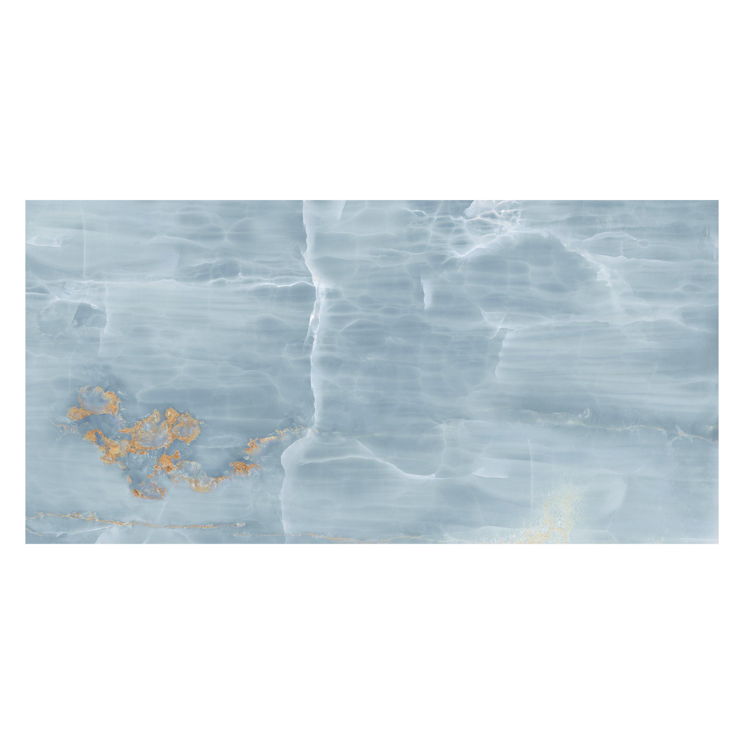 With a polished or high gloss finish, this blue Vita Bella Polished Porcelain Tile is 24 x 48.