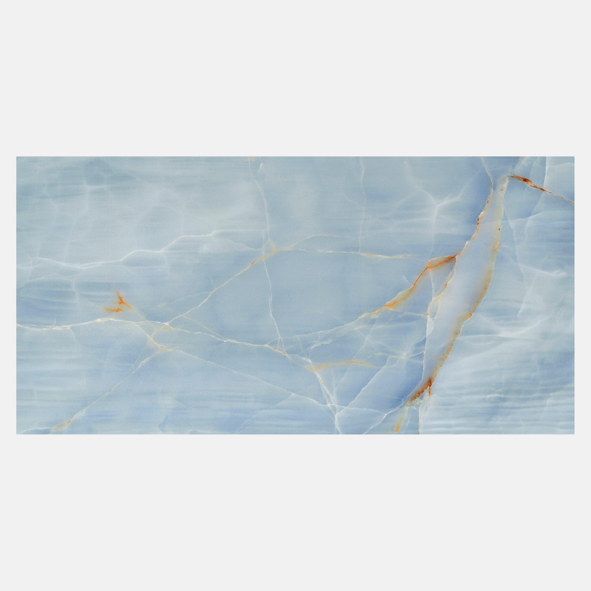 With a polished or high gloss finish, this blue Vita Bella Polished Porcelain Tile is 24 x 48.