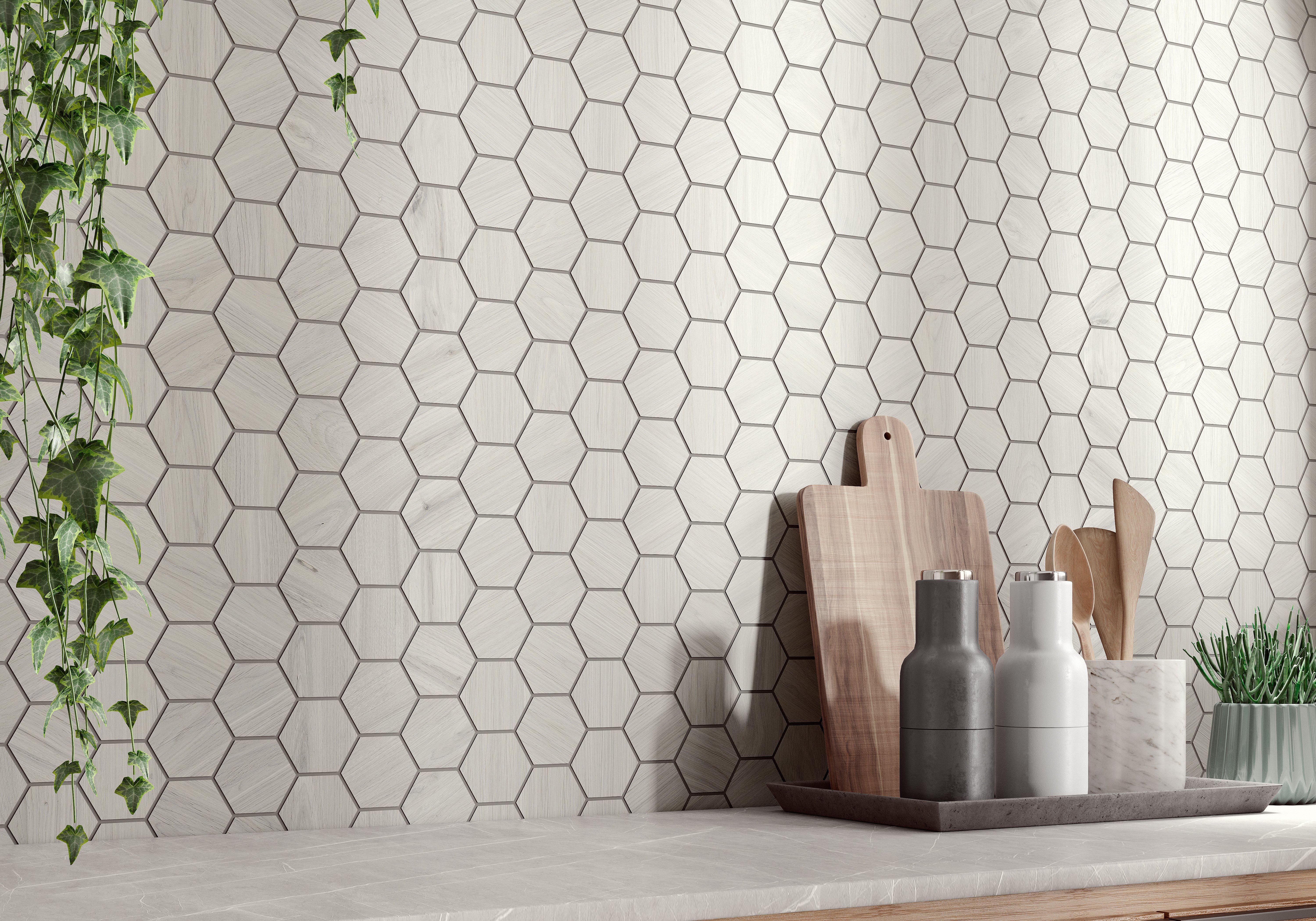 The look of wood with the worry-free nature of tile is sure to be the perfect touch for your home. The Ashford Woodville White Hexagon Porcelain Mosaic will add a unique touch to any room or project. Everything from the edges to the printed design of the tile can complete the look of your room, and you get can get the added benefit of durability, too.