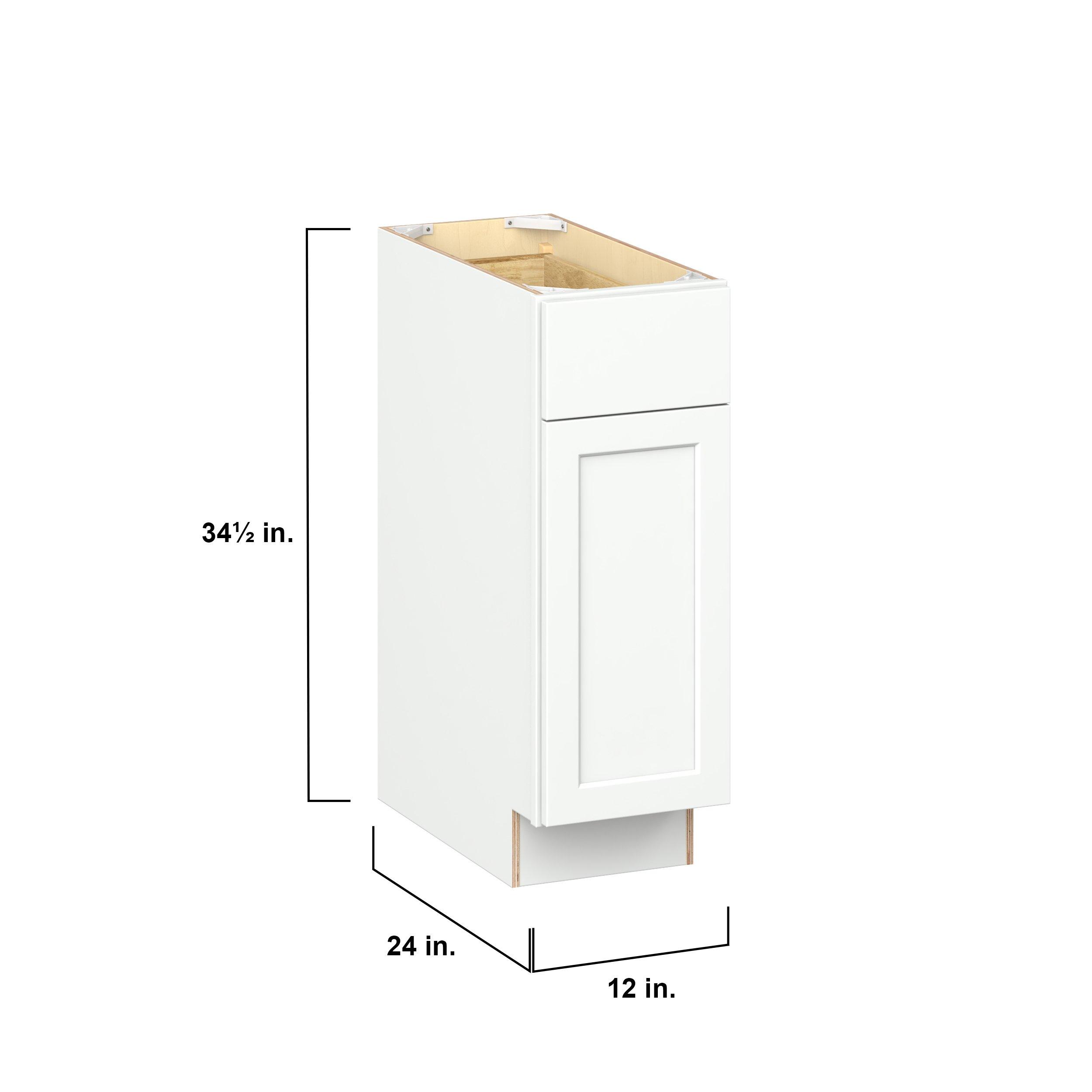 Embrace the timeless charm of the Baxley classic shaker door style. Studio Design Collection Baxley 12 in. Painted Pure White Door and Drawer Base Cabinet - Left Door Hinge features all plywood construction, offering both superior strength and sophistication to your space. Featuring 5-piece MDF doors and dovetail drawer joints, these cabinets offer durability and elegance. Baxley classic shaker door style is designed to retain its stunning appearance and withstand the test of time.