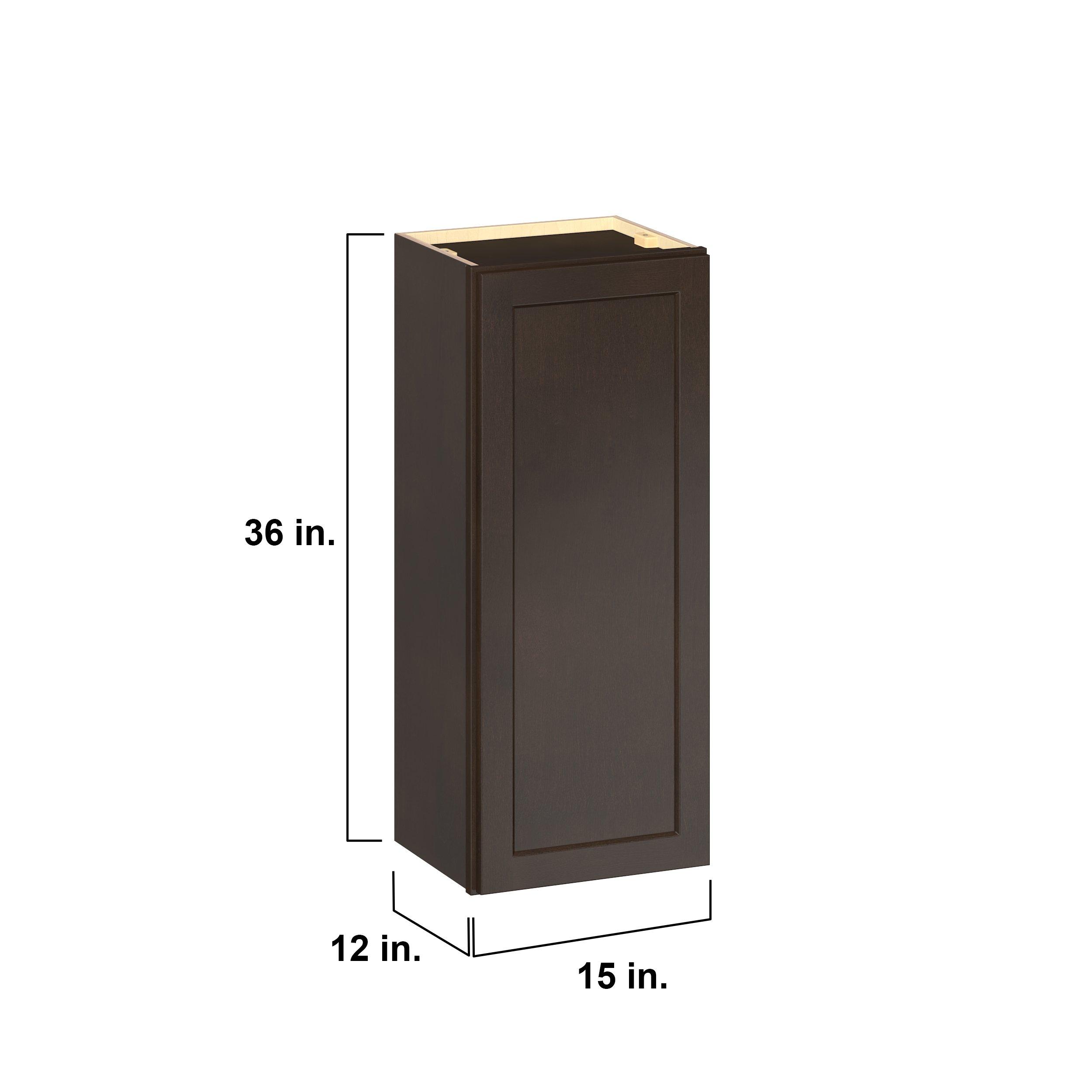 Embrace the timeless charm of the Baxley classic shaker door style. Studio Design Collection Baxley 15 in. Stained Cocoa Door Wall Cabinet features all plywood construction, offering both superior strength and sophistication to your space. Featuring 5-piece solid wood doors and dovetail drawer joints, these cabinets offer durability and elegance. Baxley classic shaker door style is designed to retain its stunning appearance and withstand the test of time.