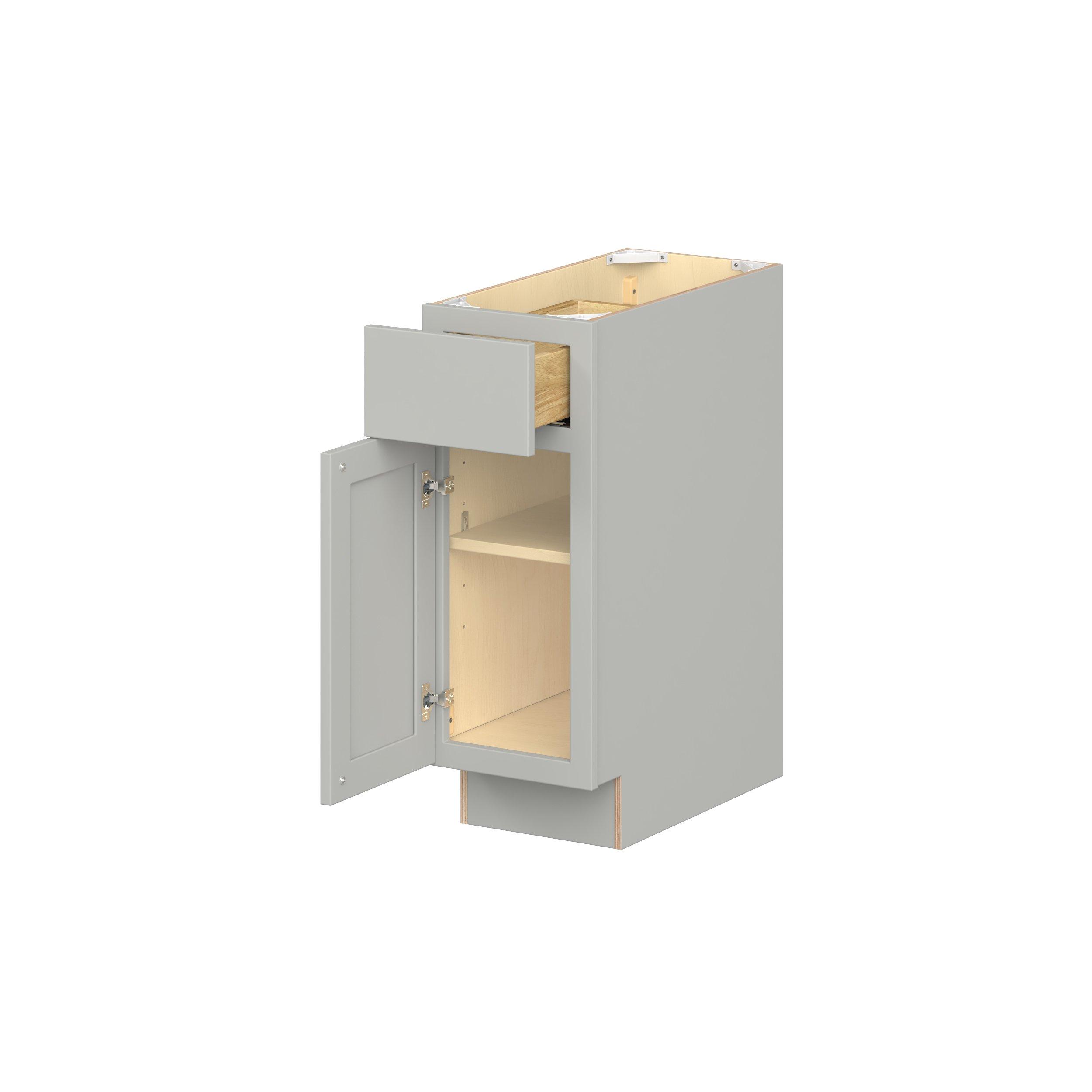 Embrace the timeless charm of the Baxley classic shaker door style. Studio Design Collection Baxley 12 in. Painted Whisper Gray Door and Drawer Base Cabinet - ADA - Left Door Hinge features all plywood construction, offering both superior strength and sophistication to your space. Featuring 5-piece MDF doors and dovetail drawer joints, these cabinets offer durability and elegance. Baxley classic shaker door style is designed to retain its stunning appearance and withstand the test of time.