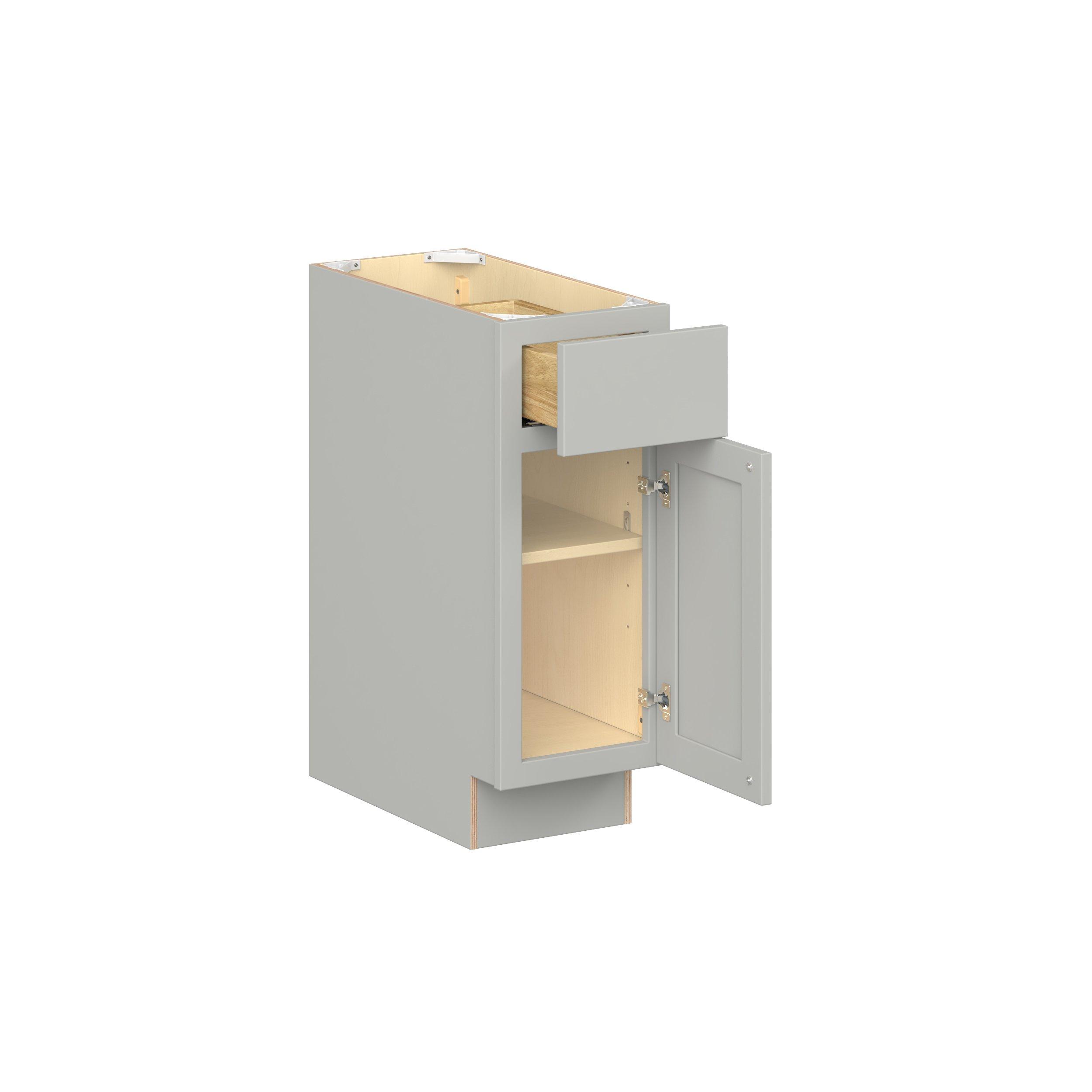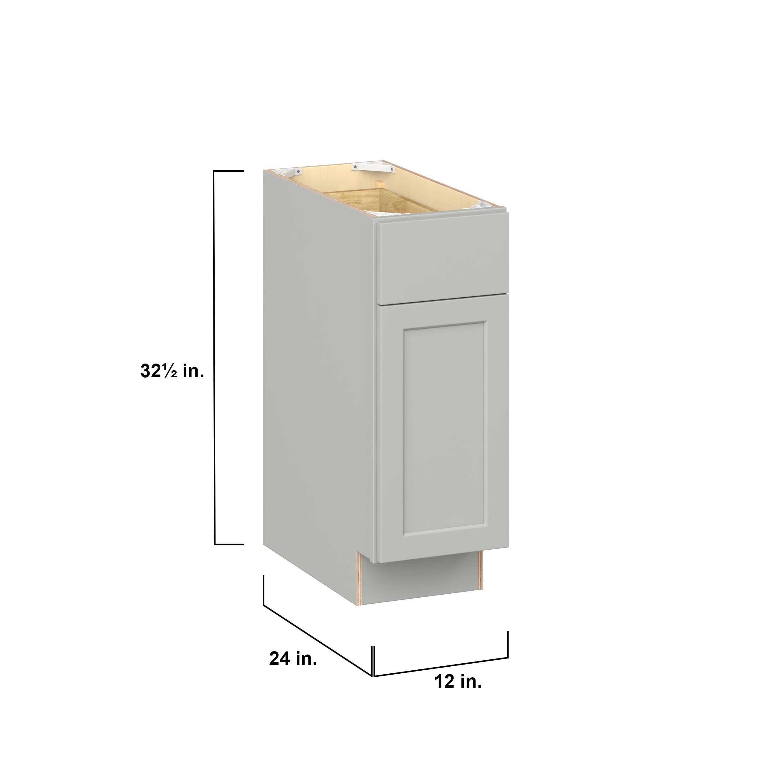 Embrace the timeless charm of the Baxley classic shaker door style. Studio Design Collection Baxley 12 in. Painted Whisper Gray Door and Drawer Base Cabinet - ADA - Right Door Hinge features all plywood construction, offering both superior strength and sophistication to your space. Featuring 5-piece MDF doors and dovetail drawer joints, these cabinets offer durability and elegance. Baxley classic shaker door style is designed to retain its stunning appearance and withstand the test of time.