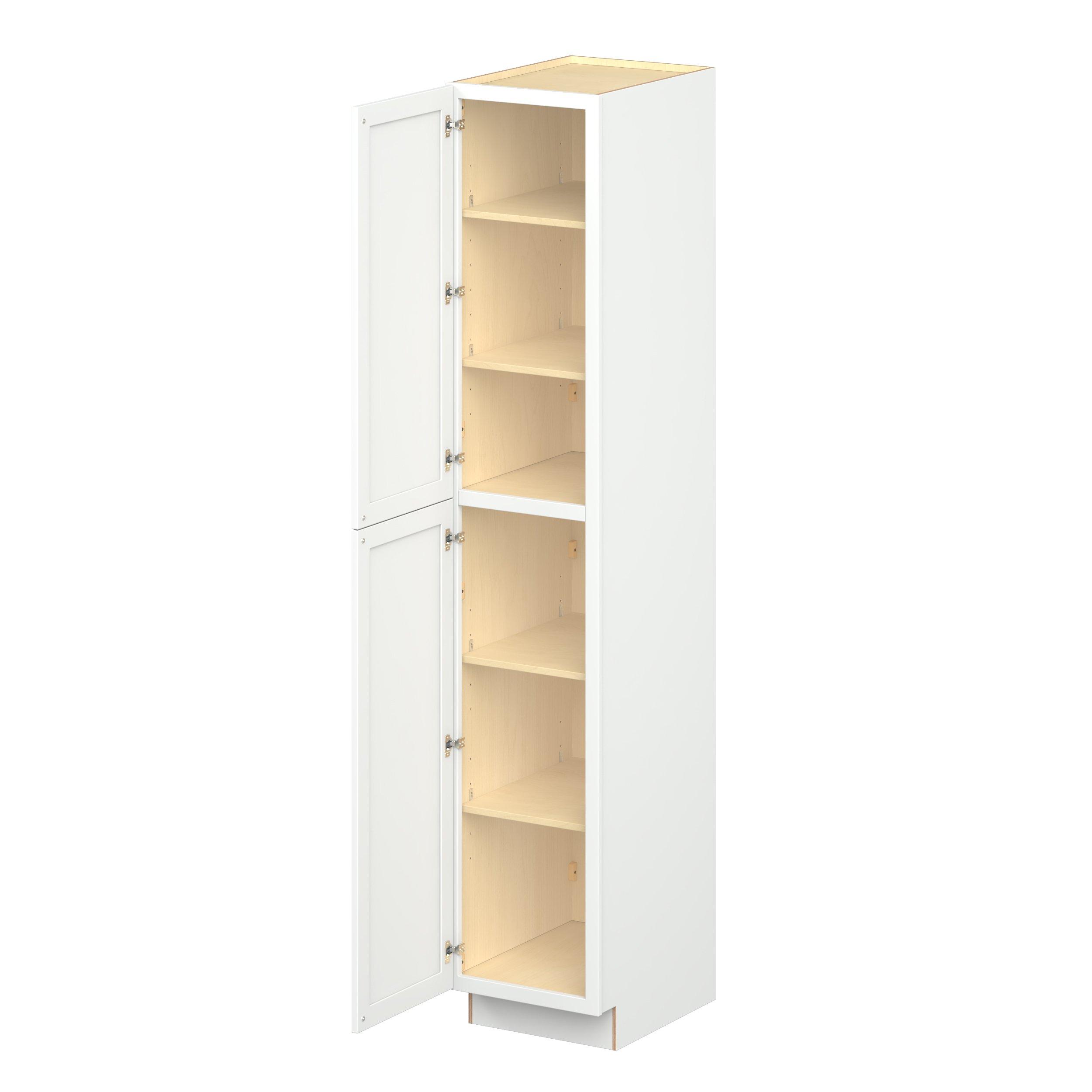Embrace the timeless charm of the Baxley classic shaker door style. Studio Design Collection Baxley 18 in. Painted Pure White Plywood Pantry Cabinet - Left Door Hinge features all plywood construction, offering both superior strength and sophistication to your space. Featuring 5-piece MDF doors and dovetail drawer joints, these cabinets offer durability and elegance. Baxley classic shaker door style is designed to retain its stunning appearance and withstand the test of time.
