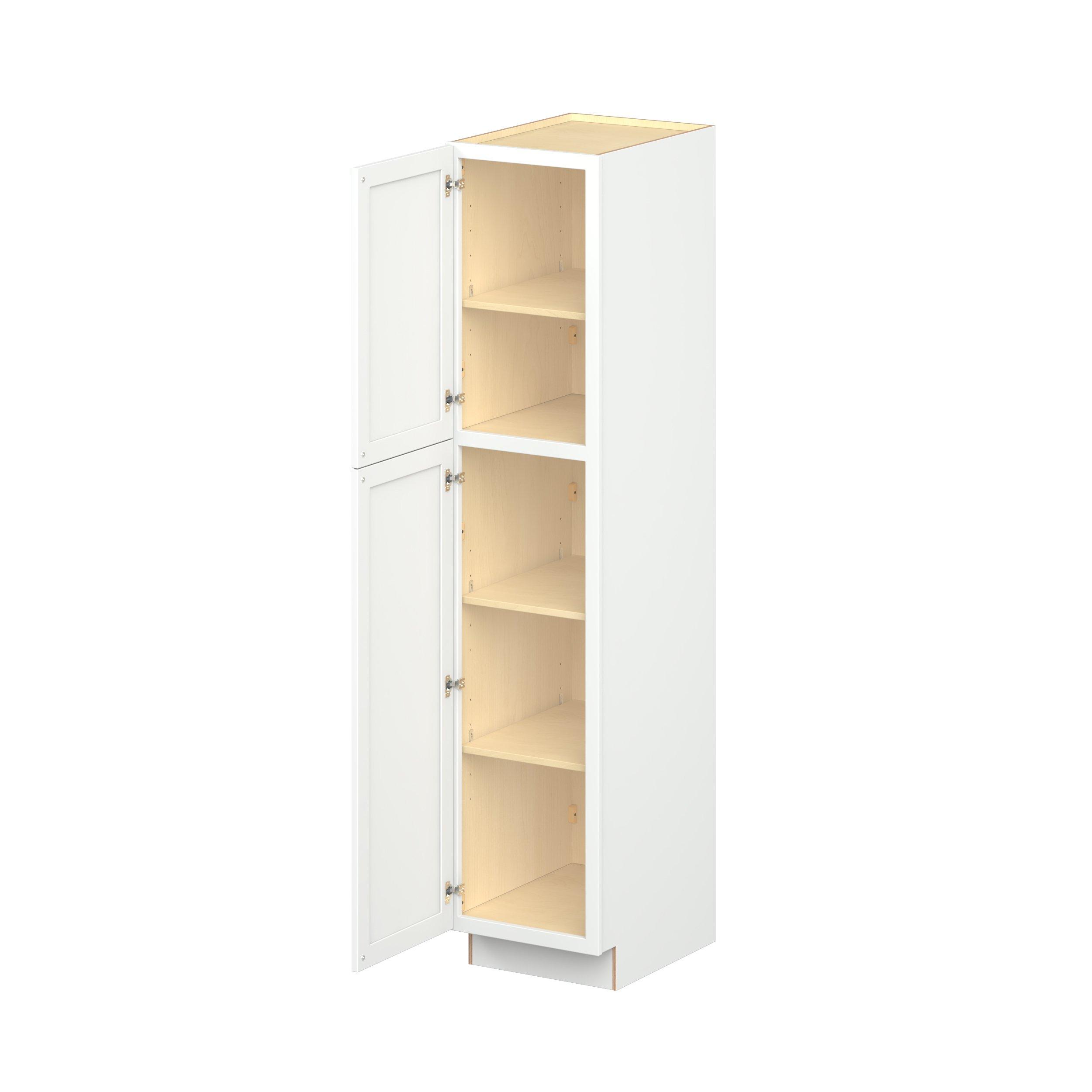 Embrace the timeless charm of the Baxley classic shaker door style. Studio Design Collection Baxley 18 in. Painted Pure White Plywood Pantry Cabinet - Left Door Hinge features all plywood construction, offering both superior strength and sophistication to your space. Featuring 5-piece MDF doors and dovetail drawer joints, these cabinets offer durability and elegance. Baxley classic shaker door style is designed to retain its stunning appearance and withstand the test of time.
