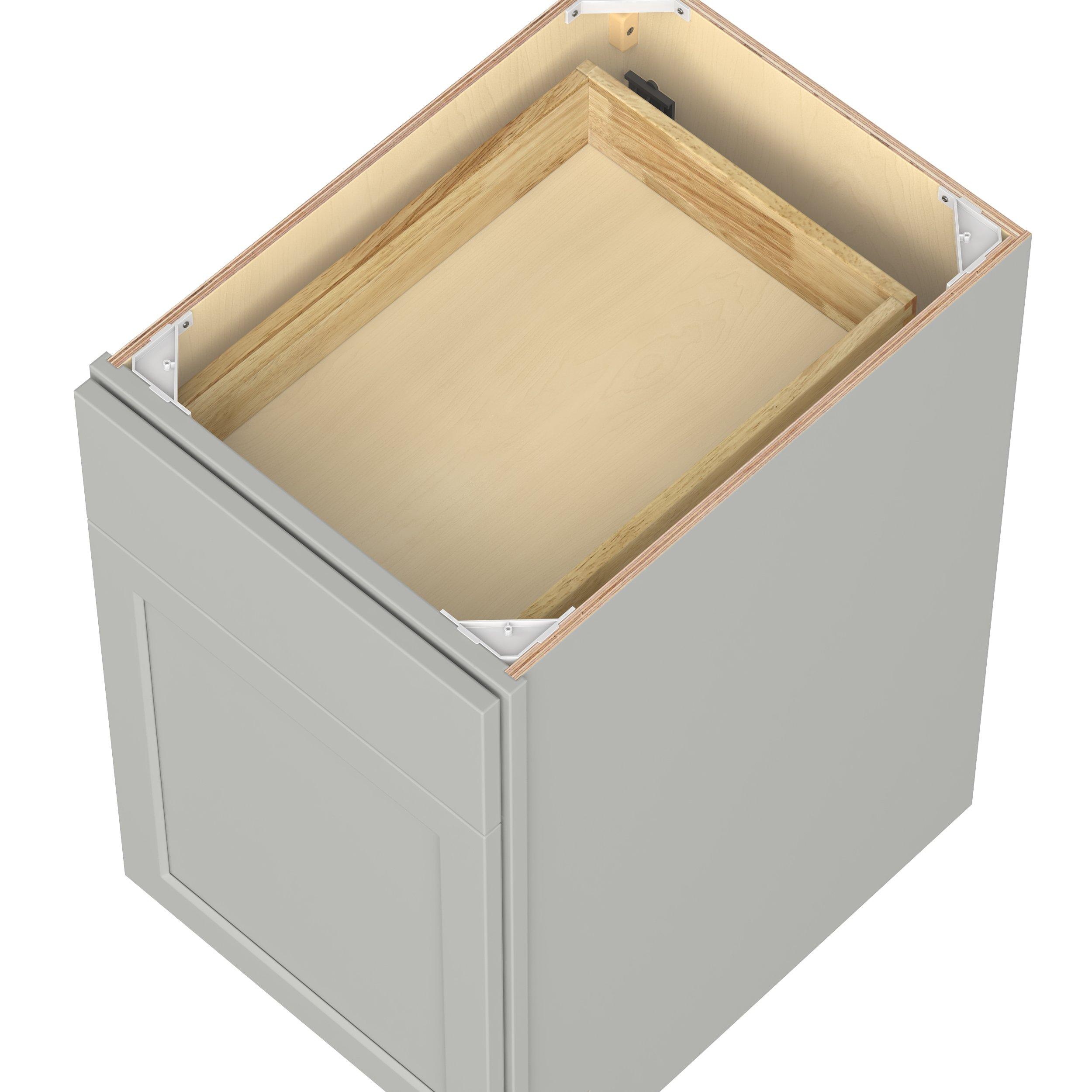 Embrace the timeless charm of the Baxley classic shaker door style. Studio Design Collection Baxley 18 in. Painted Whisper Gray Door and Drawer Base Cabinet - ADA - Right Door Hinge features all plywood construction, offering both superior strength and sophistication to your space. Featuring 5-piece MDF doors and dovetail drawer joints, these cabinets offer durability and elegance. Baxley classic shaker door style is designed to retain its stunning appearance and withstand the test of time.