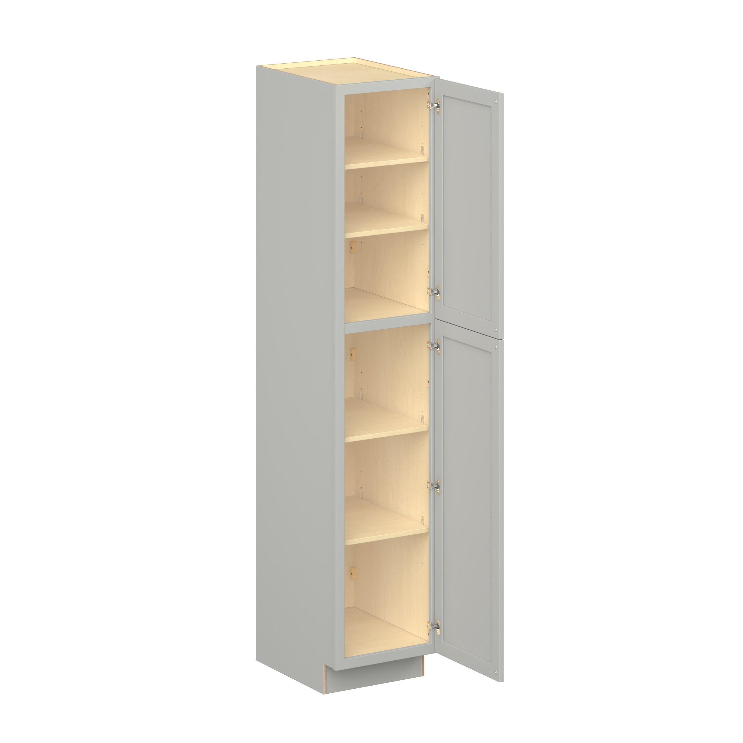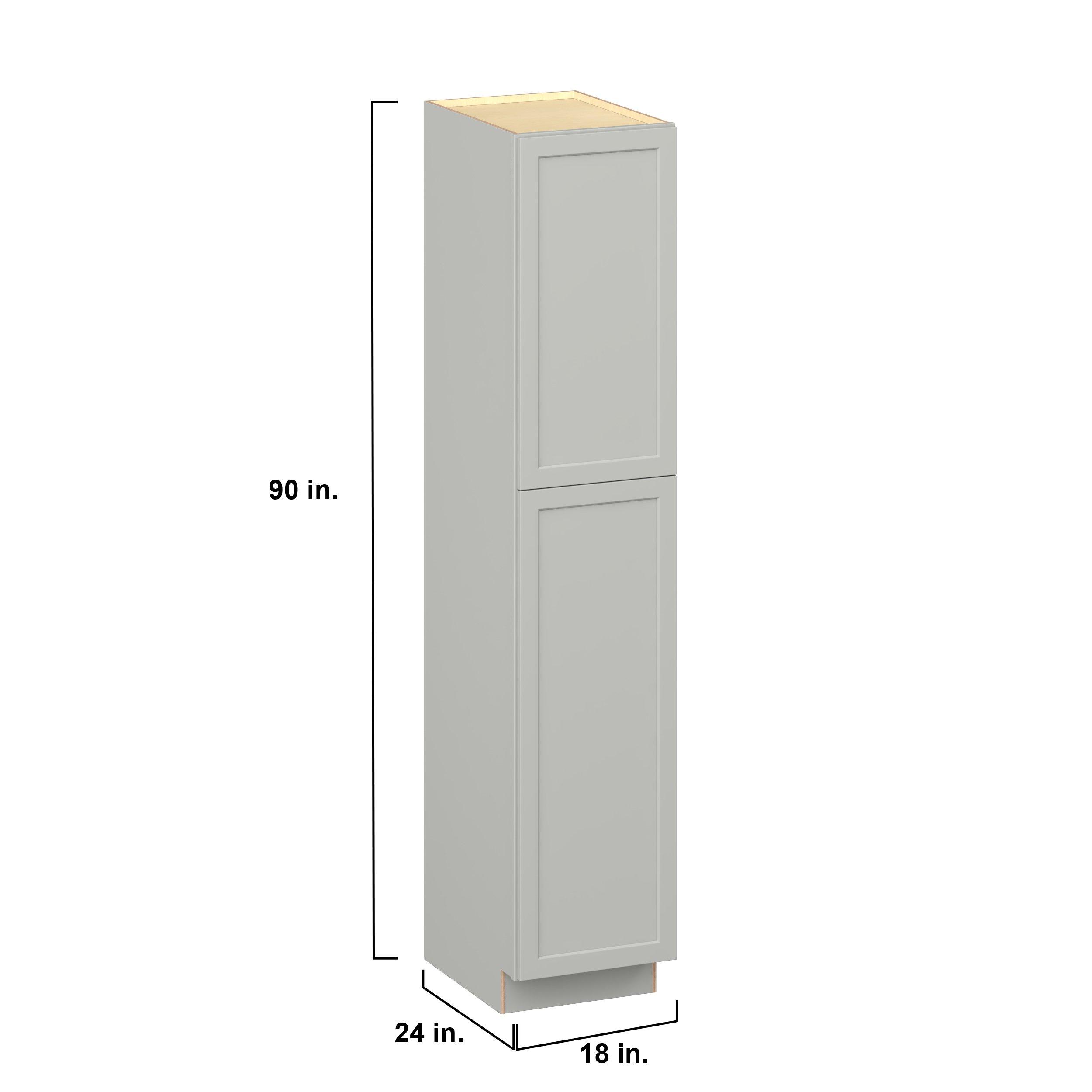 Embrace the timeless charm of the Baxley classic shaker door style. Studio Design Collection Baxley 18 in. Painted Whisper Gray Plywood Pantry Cabinet - Right Door Hinge features all plywood construction, offering both superior strength and sophistication to your space. Featuring 5-piece MDF doors and dovetail drawer joints, these cabinets offer durability and elegance. Baxley classic shaker door style is designed to retain its stunning appearance and withstand the test of time.