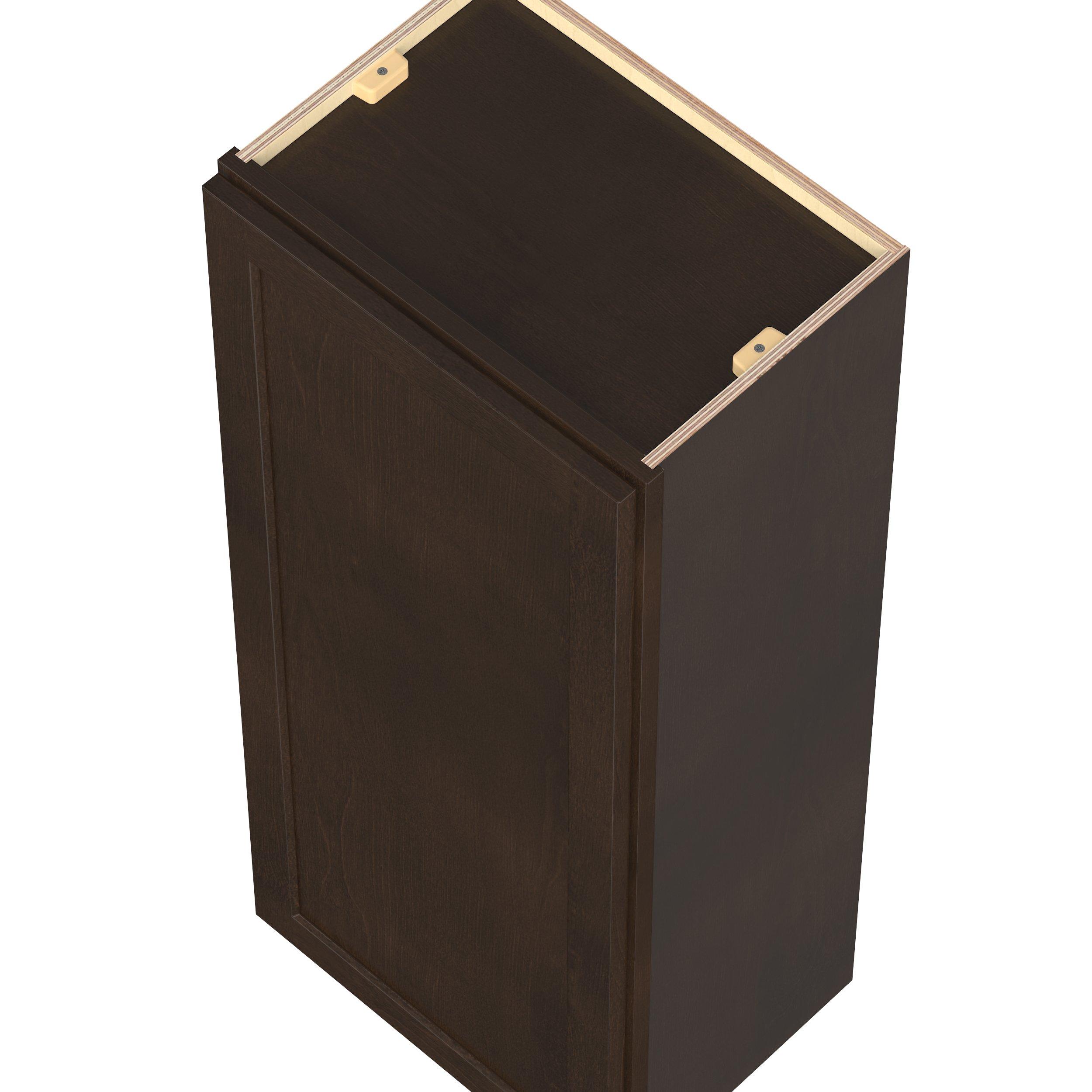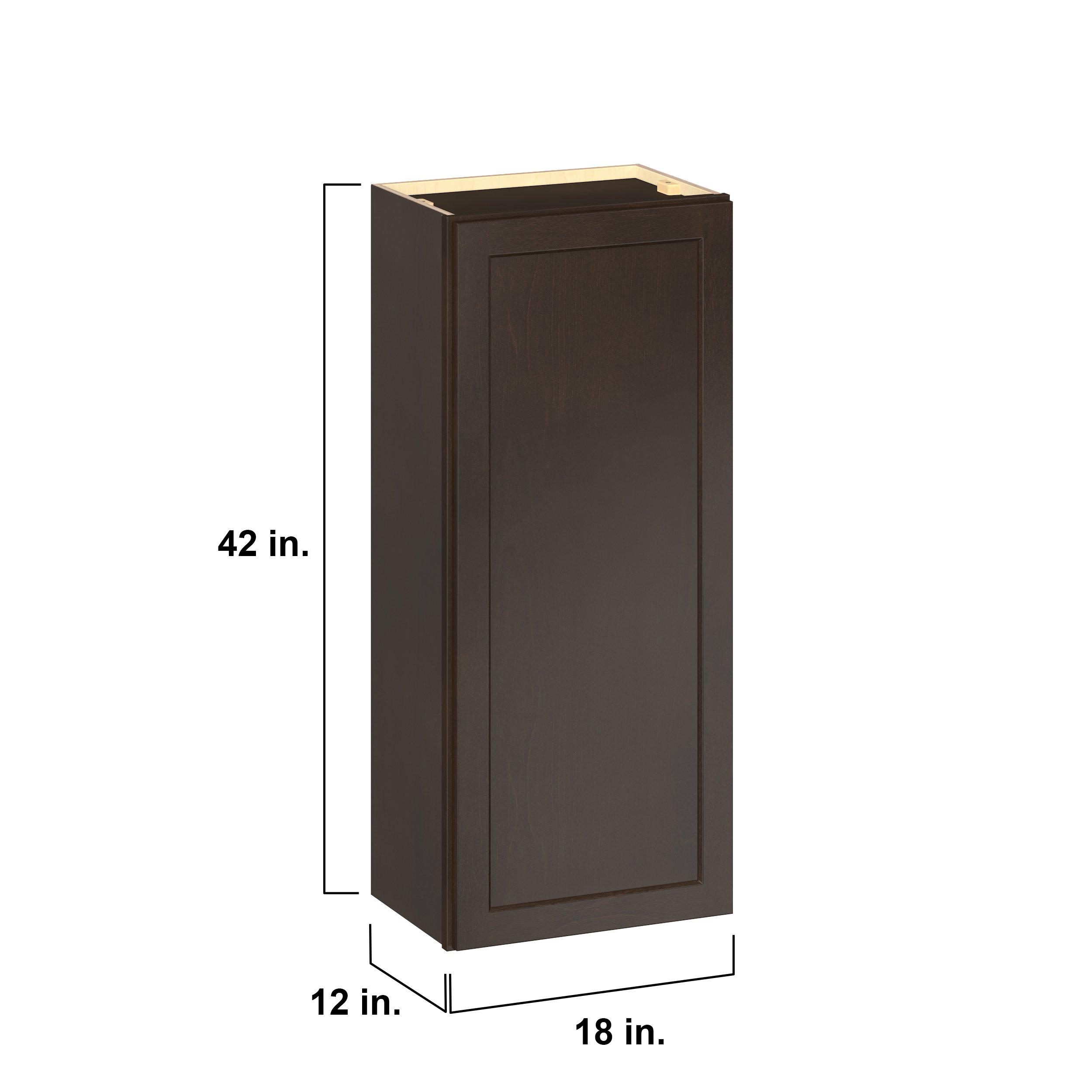 Embrace the timeless charm of the Baxley classic shaker door style. Studio Design Collection Baxley 18 in. Stained Cocoa Door Wall Cabinet features all plywood construction, offering both superior strength and sophistication to your space. Featuring 5-piece solid wood doors and dovetail drawer joints, these cabinets offer durability and elegance. Baxley classic shaker door style is designed to retain its stunning appearance and withstand the test of time.