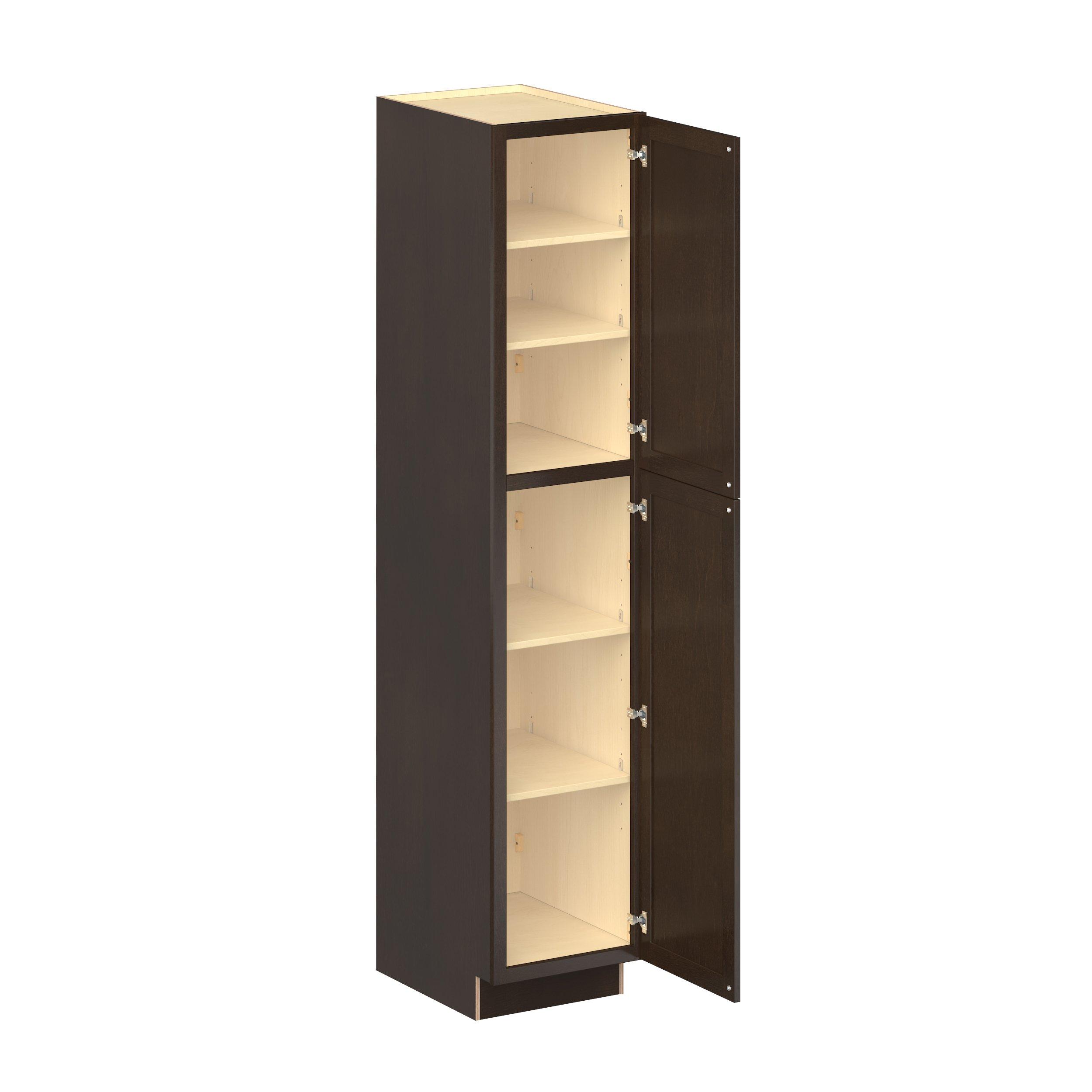 Embrace the timeless charm of the Baxley classic shaker door style. Studio Design Collection Baxley 18 in. Stained Cocoa Plywood Pantry Cabinet - Right Door Hinge features all plywood construction, offering both superior strength and sophistication to your space. Featuring 5-piece solid wood doors and dovetail drawer joints, these cabinets offer durability and elegance. Baxley classic shaker door style is designed to retain its stunning appearance and withstand the test of time.
