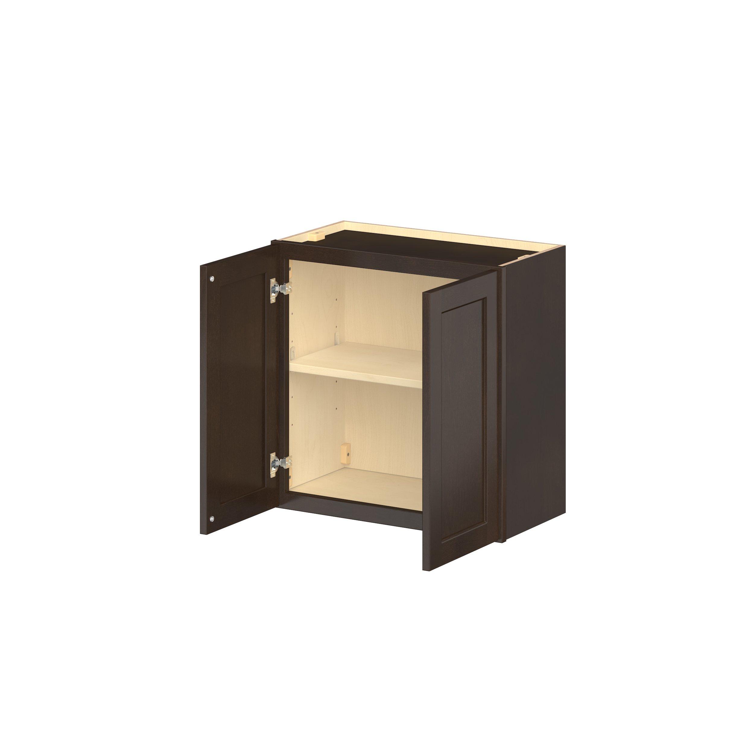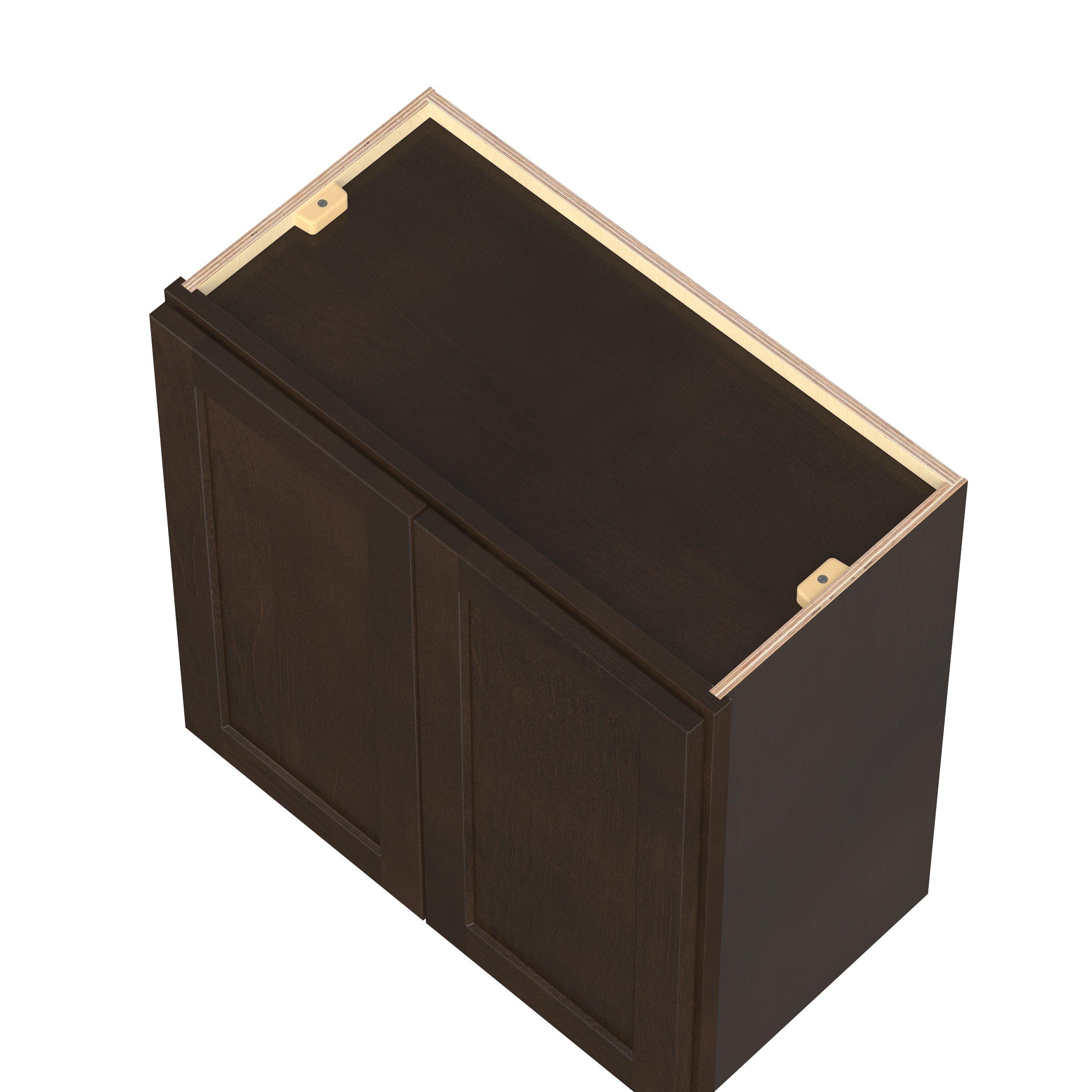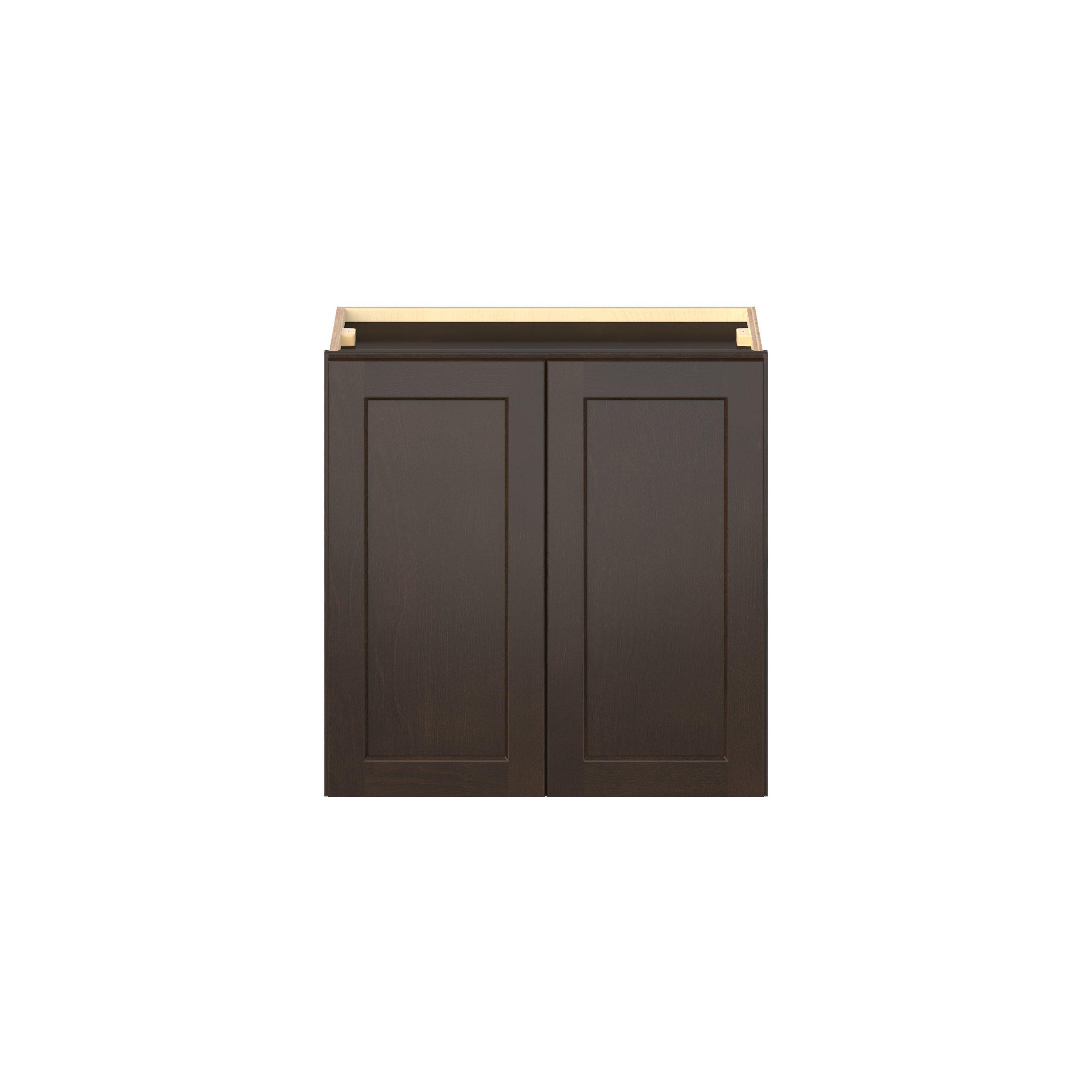 Embrace the timeless charm of the Baxley classic shaker door style. Studio Design Collection Baxley 24 in. Stained Cocoa Bridge Wall Cabinet features all plywood construction, offering both superior strength and sophistication to your space. Featuring 5-piece solid wood doors and dovetail drawer joints, these cabinets offer durability and elegance. Baxley classic shaker door style is designed to retain its stunning appearance and withstand the test of time.