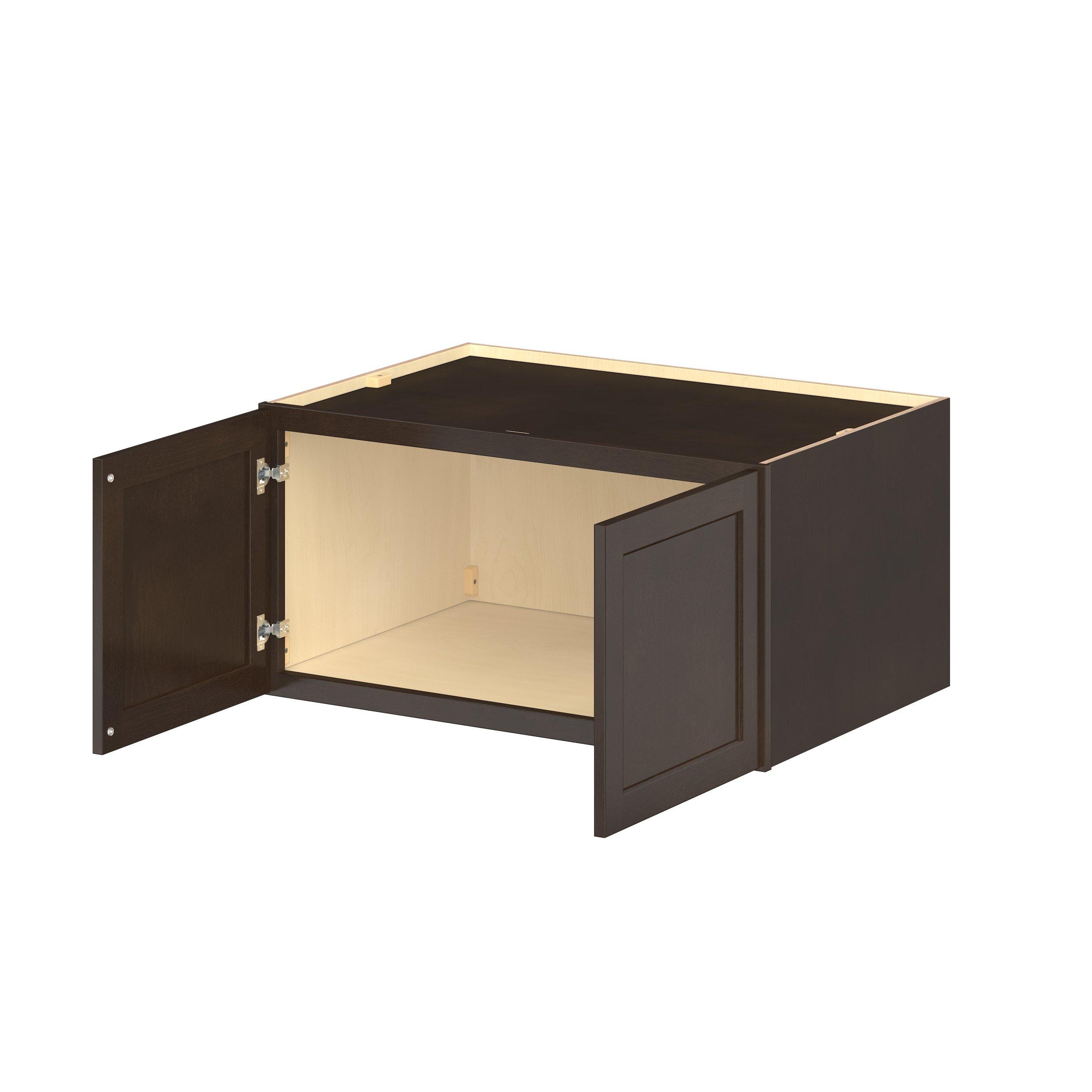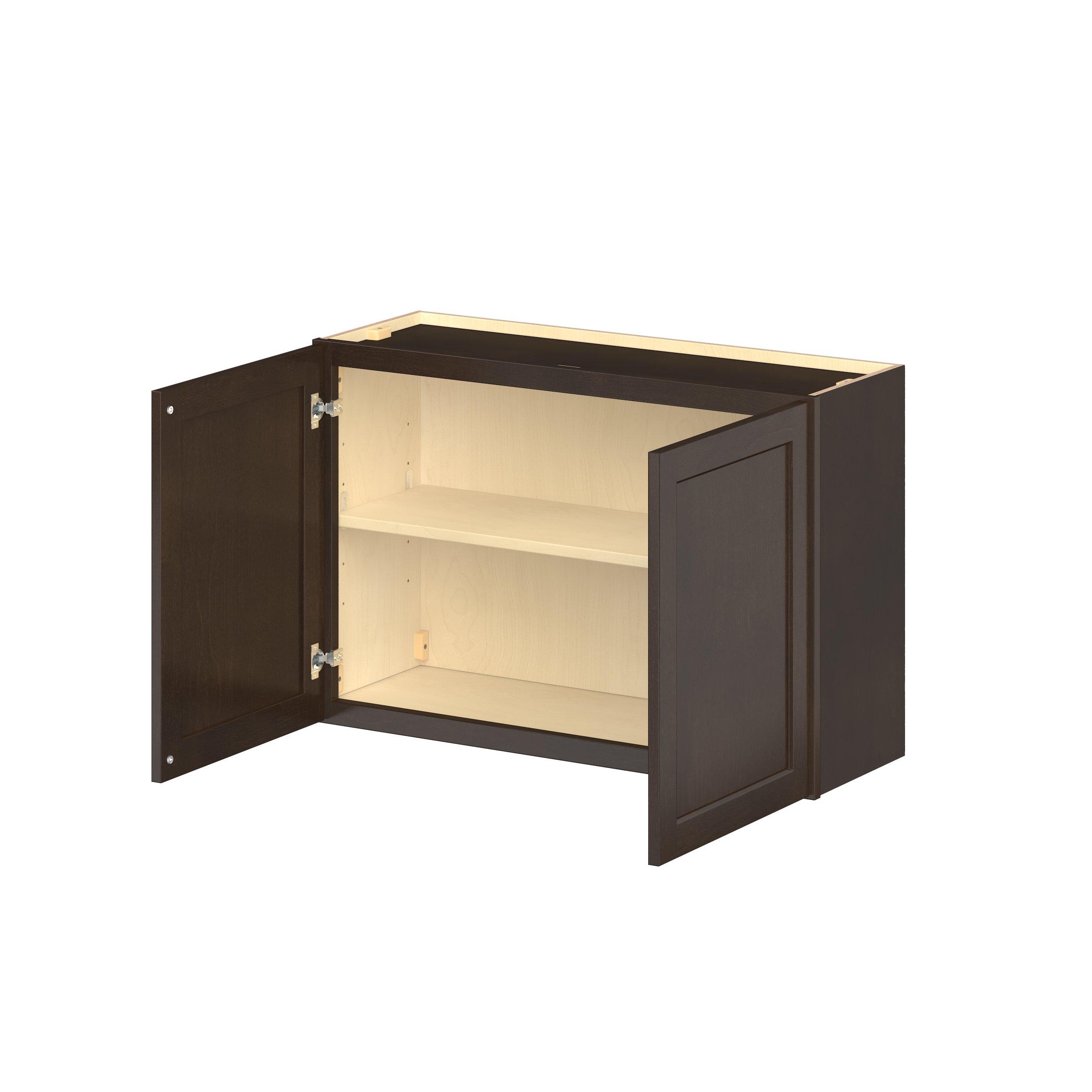 Embrace the timeless charm of the Baxley classic shaker door style. Studio Design Collection Baxley 36 in. Stained Cocoa Bridge Wall Cabinet features all plywood construction, offering both superior strength and sophistication to your space. Featuring 5-piece solid wood doors and dovetail drawer joints, these cabinets offer durability and elegance. Baxley classic shaker door style is designed to retain its stunning appearance and withstand the test of time.