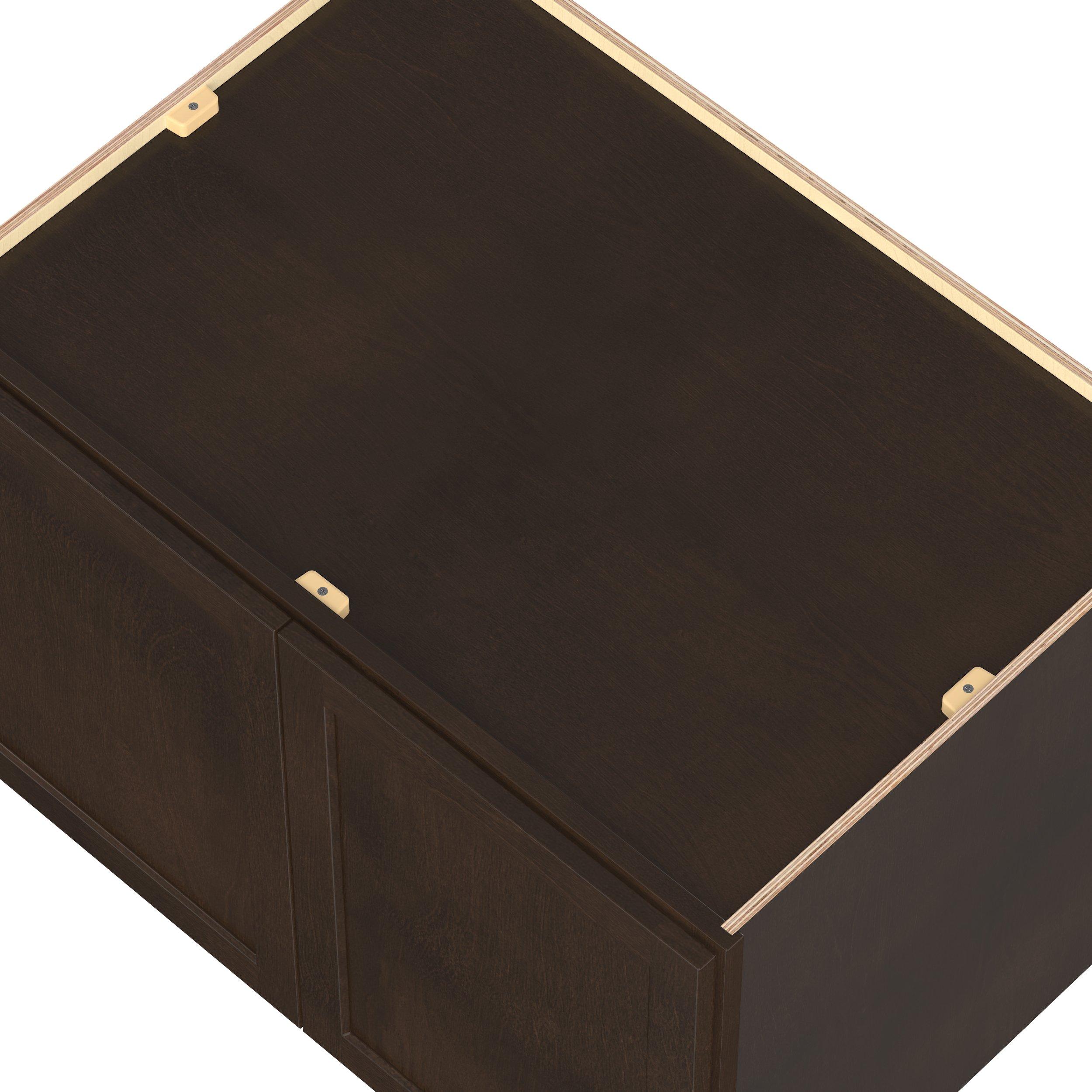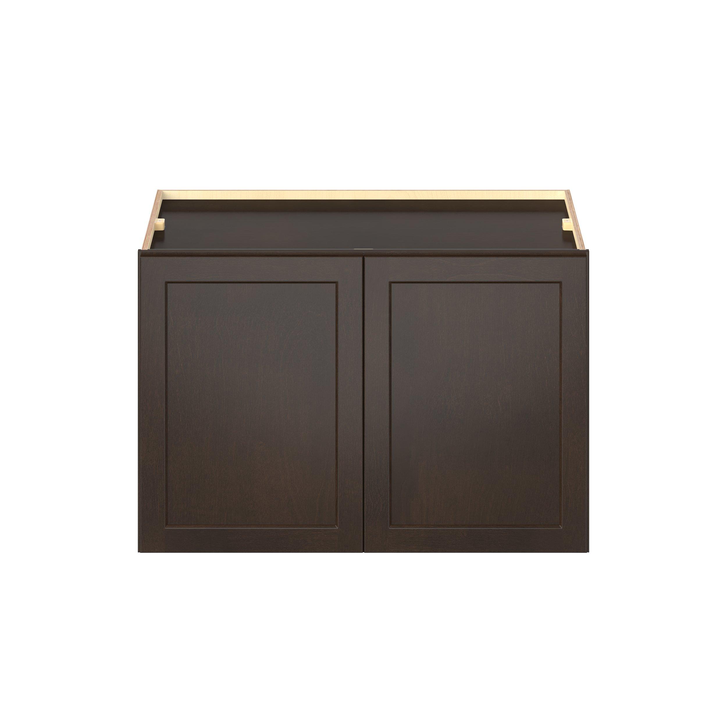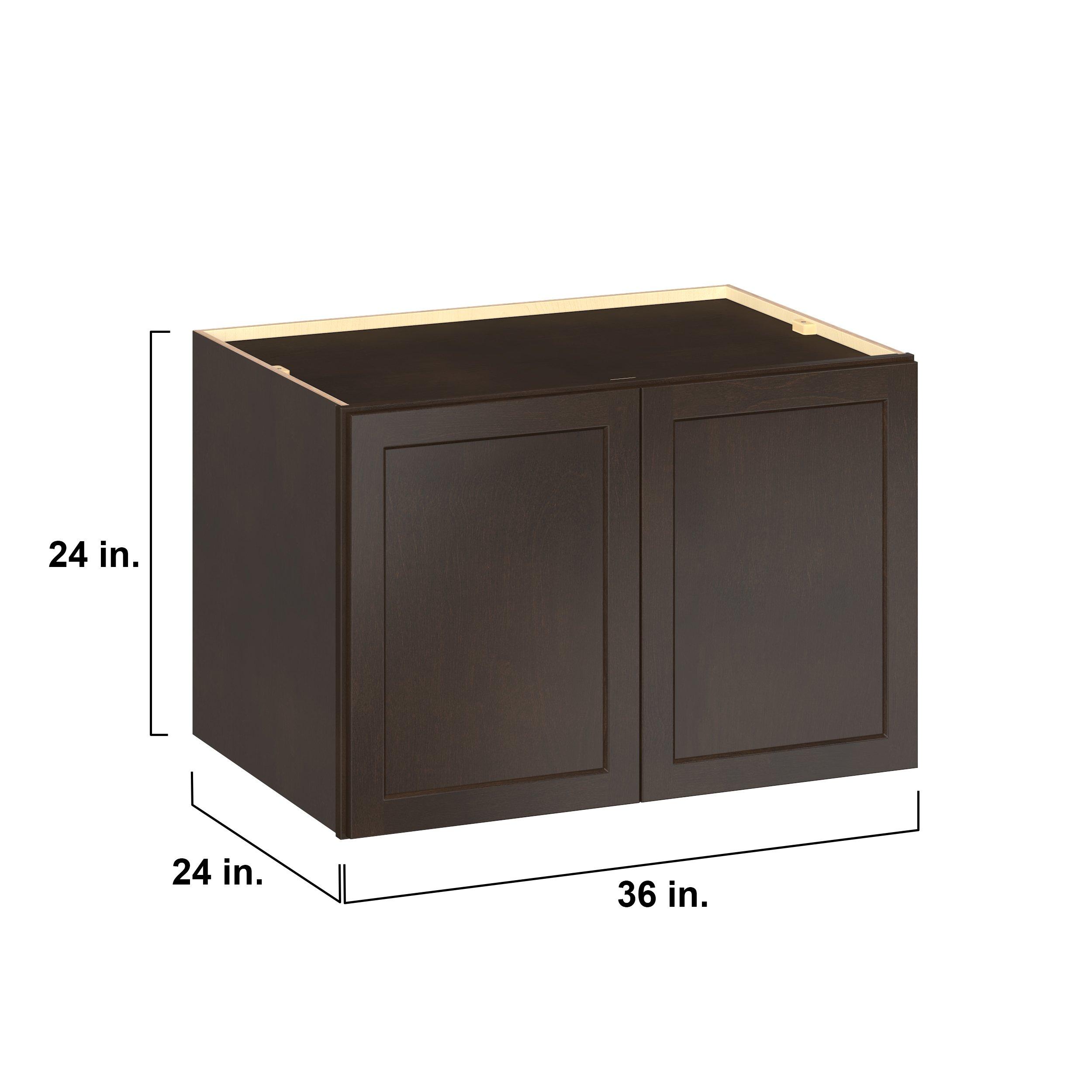 Embrace the timeless charm of the Baxley classic shaker door style. Studio Design Collection Baxley 36 in. Stained Cocoa Bridge Wall Cabinet features all plywood construction, offering both superior strength and sophistication to your space. Featuring 5-piece solid wood doors and dovetail drawer joints, these cabinets offer durability and elegance. Baxley classic shaker door style is designed to retain its stunning appearance and withstand the test of time.