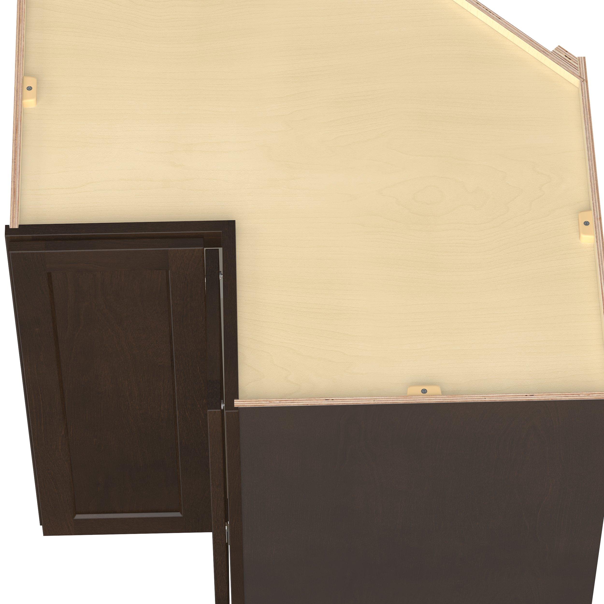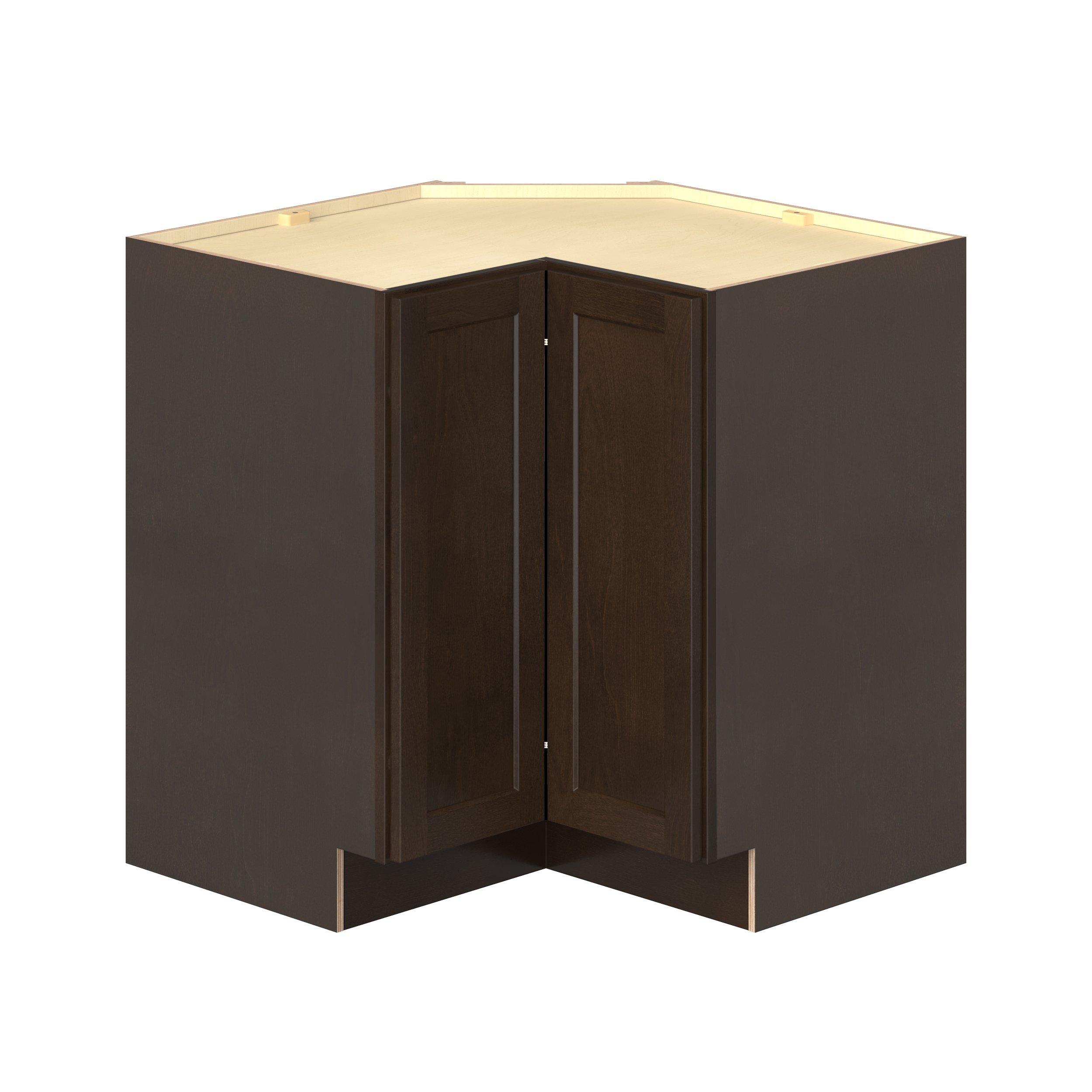 Embrace the timeless charm of the Baxley classic shaker door style. Studio Design Collection Baxley 33 in. Stained Cocoa Lazy Susan Corner Base Cabinet features all plywood construction, offering both superior strength and sophistication to your space. Featuring 5-piece solid wood doors and dovetail drawer joints, these cabinets offer durability and elegance. Baxley classic shaker door style is designed to retain its stunning appearance and withstand the test of time.