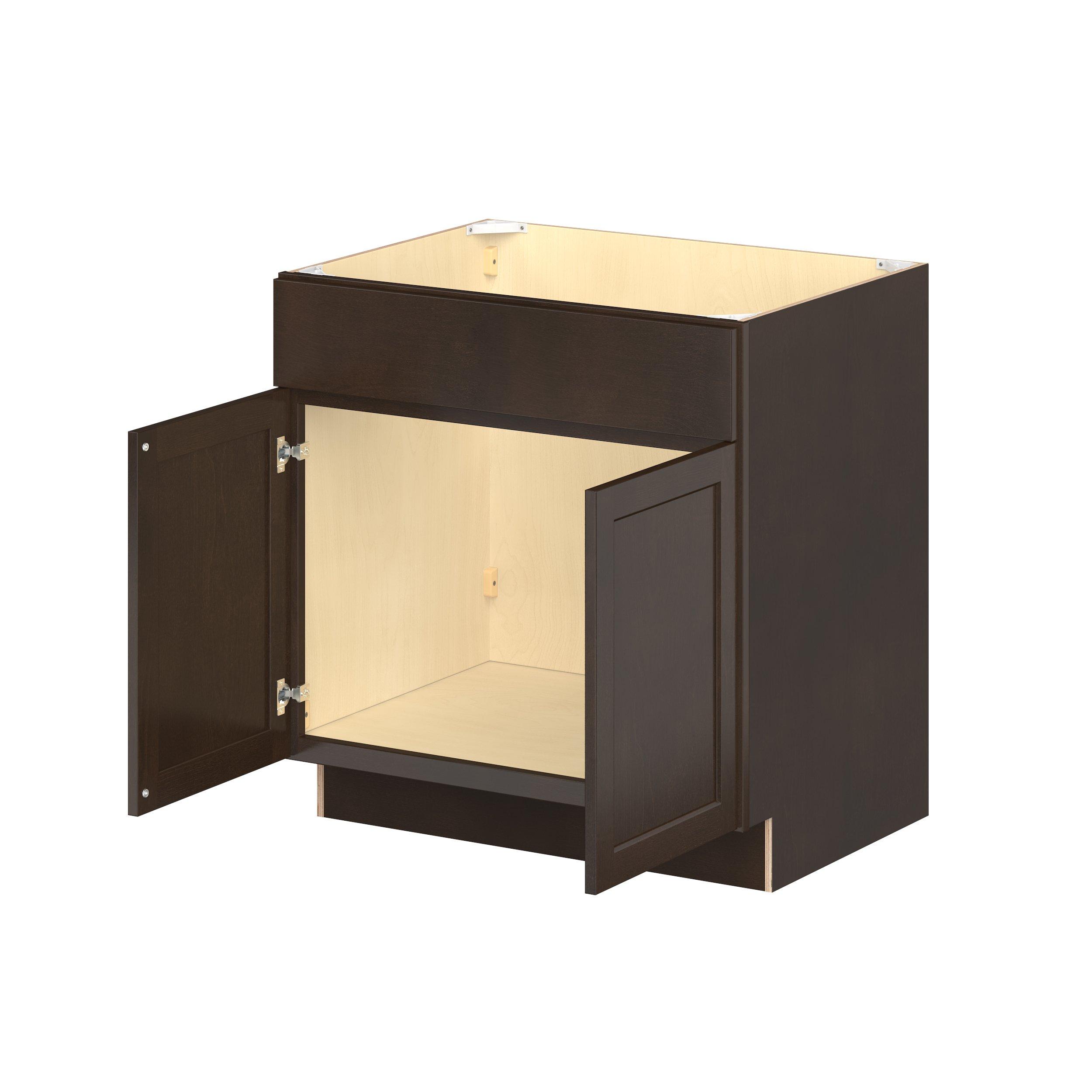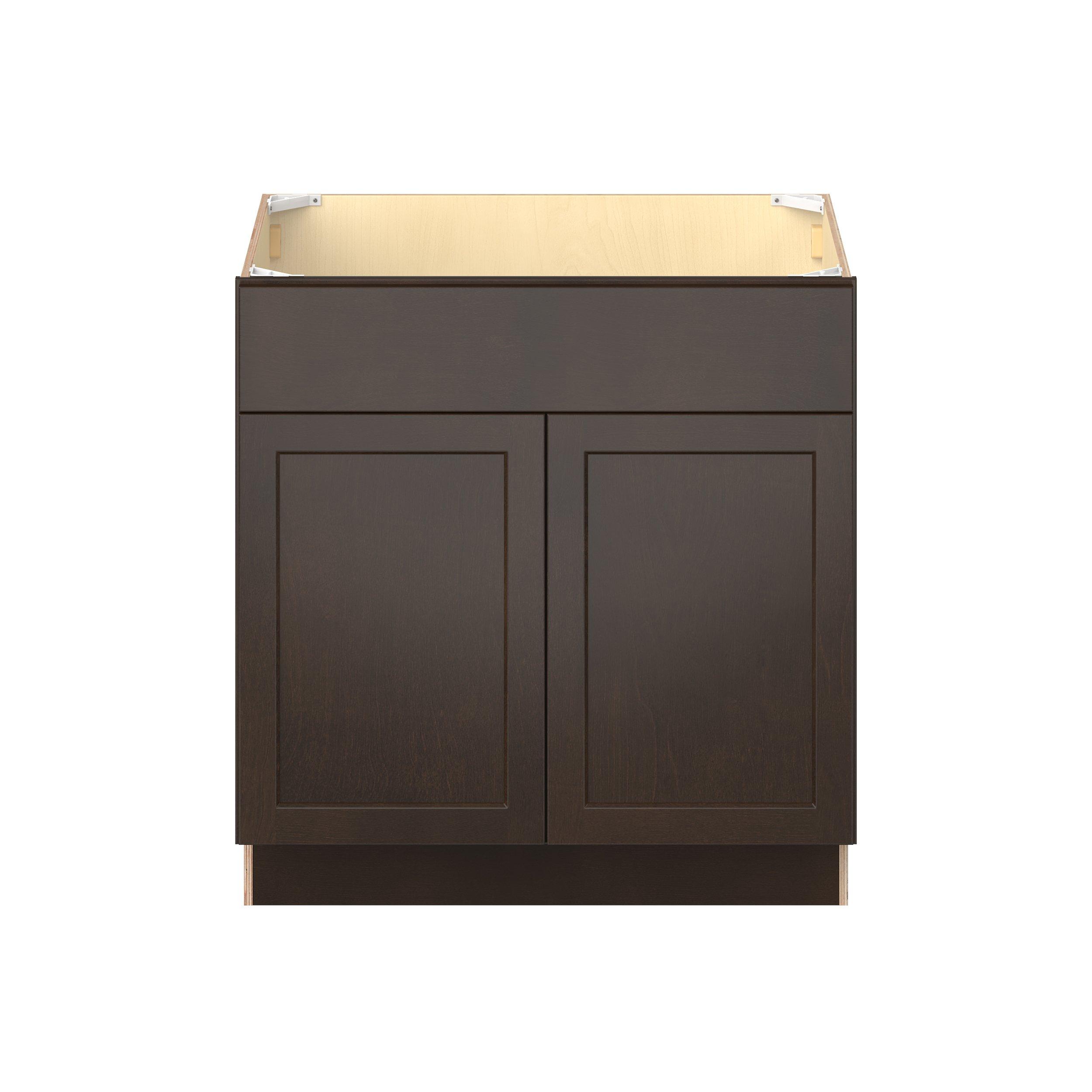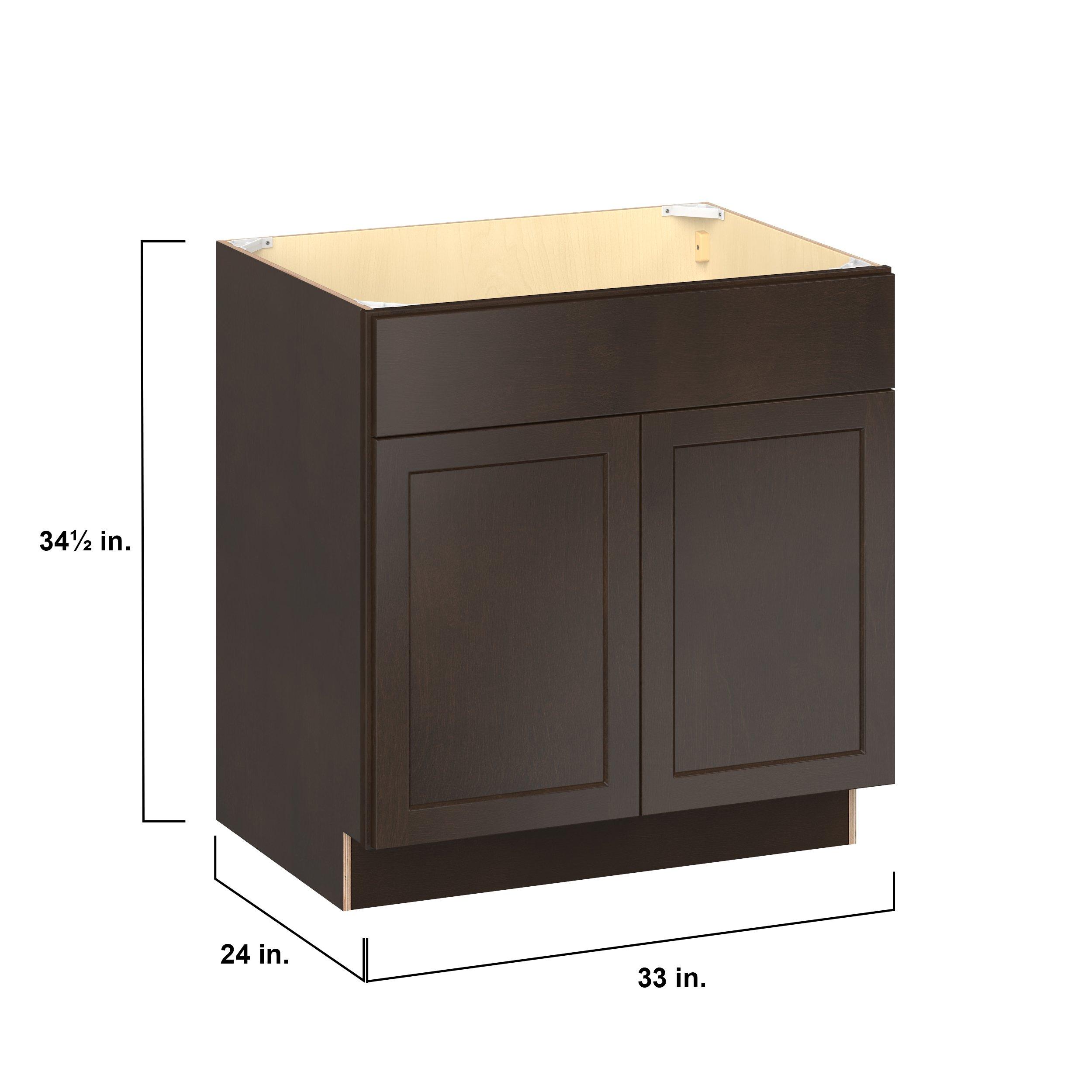 Embrace the timeless charm of the Baxley classic shaker door style. Studio Design Collection Baxley 33 in. Stained Cocoa Sink Base Cabinet with False Front features all plywood construction, offering both superior strength and sophistication to your space. Featuring 5-piece solid wood doors and dovetail drawer joints, these cabinets offer durability and elegance. Baxley classic shaker door style is designed to retain its stunning appearance and withstand the test of time.