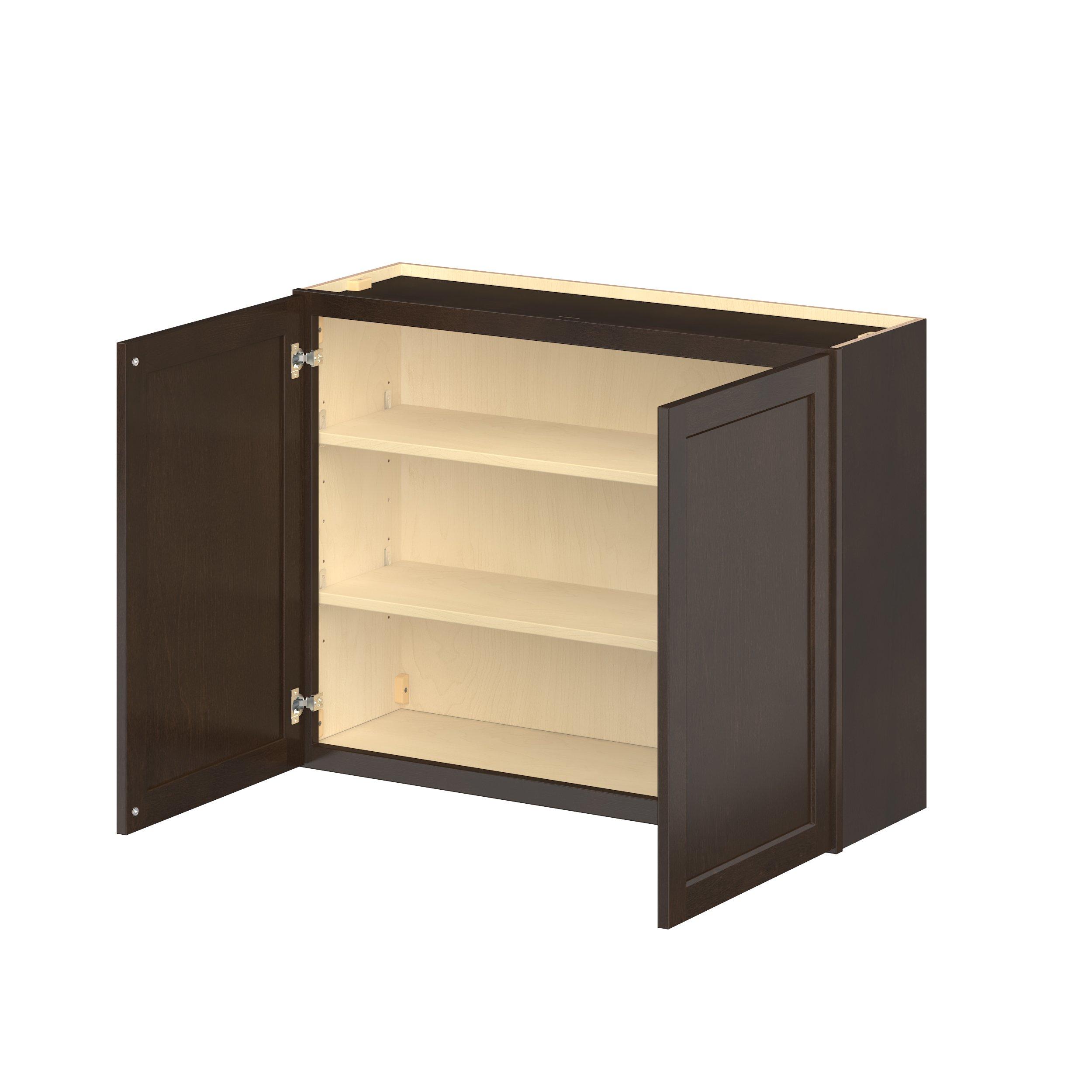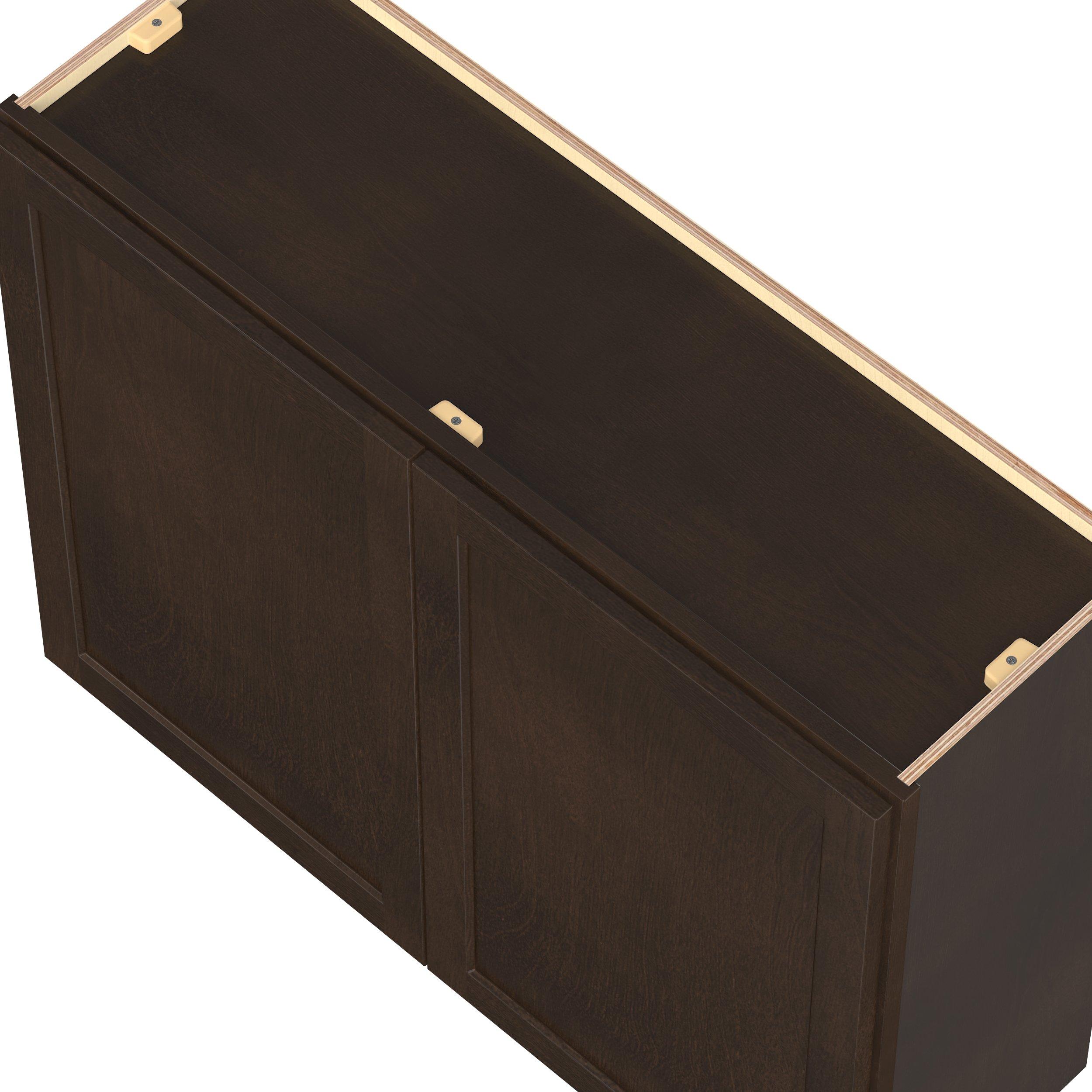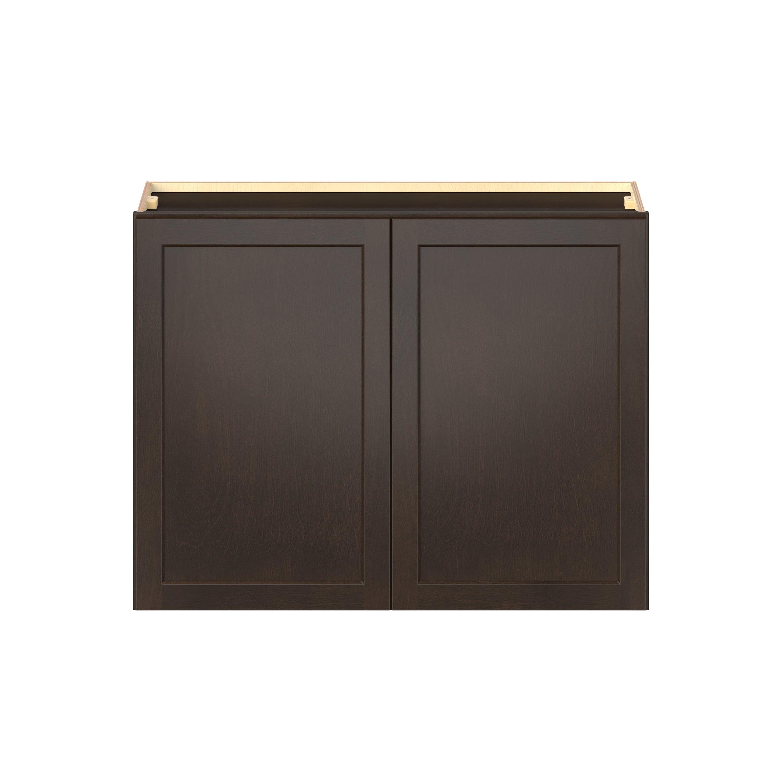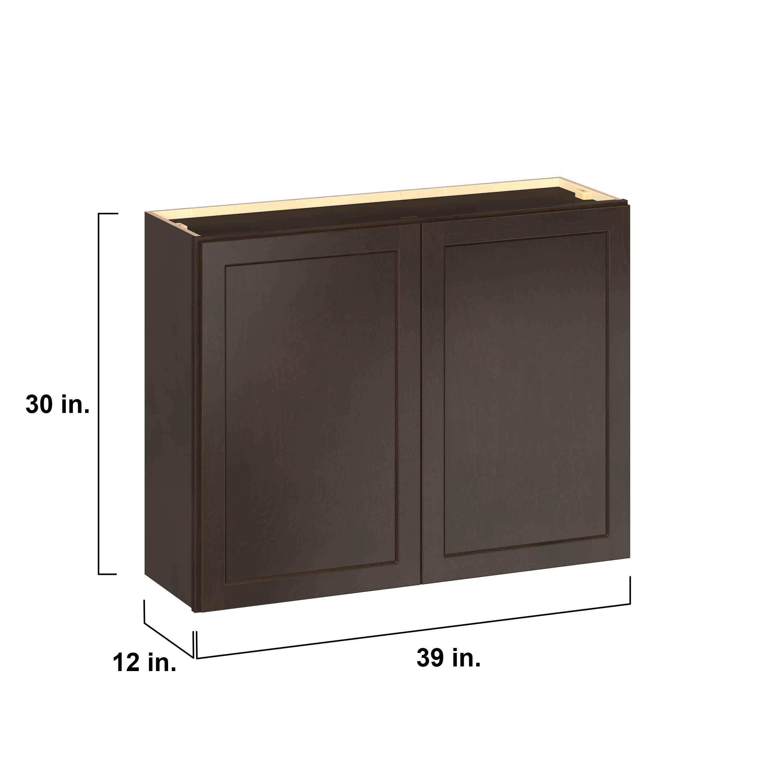 Embrace the timeless charm of the Baxley classic shaker door style. Studio Design Collection Baxley 39 in. Stained Cocoa Door Wall Cabinet features all plywood construction, offering both superior strength and sophistication to your space. Featuring 5-piece solid wood doors and dovetail drawer joints, these cabinets offer durability and elegance. Baxley classic shaker door style is designed to retain its stunning appearance and withstand the test of time.