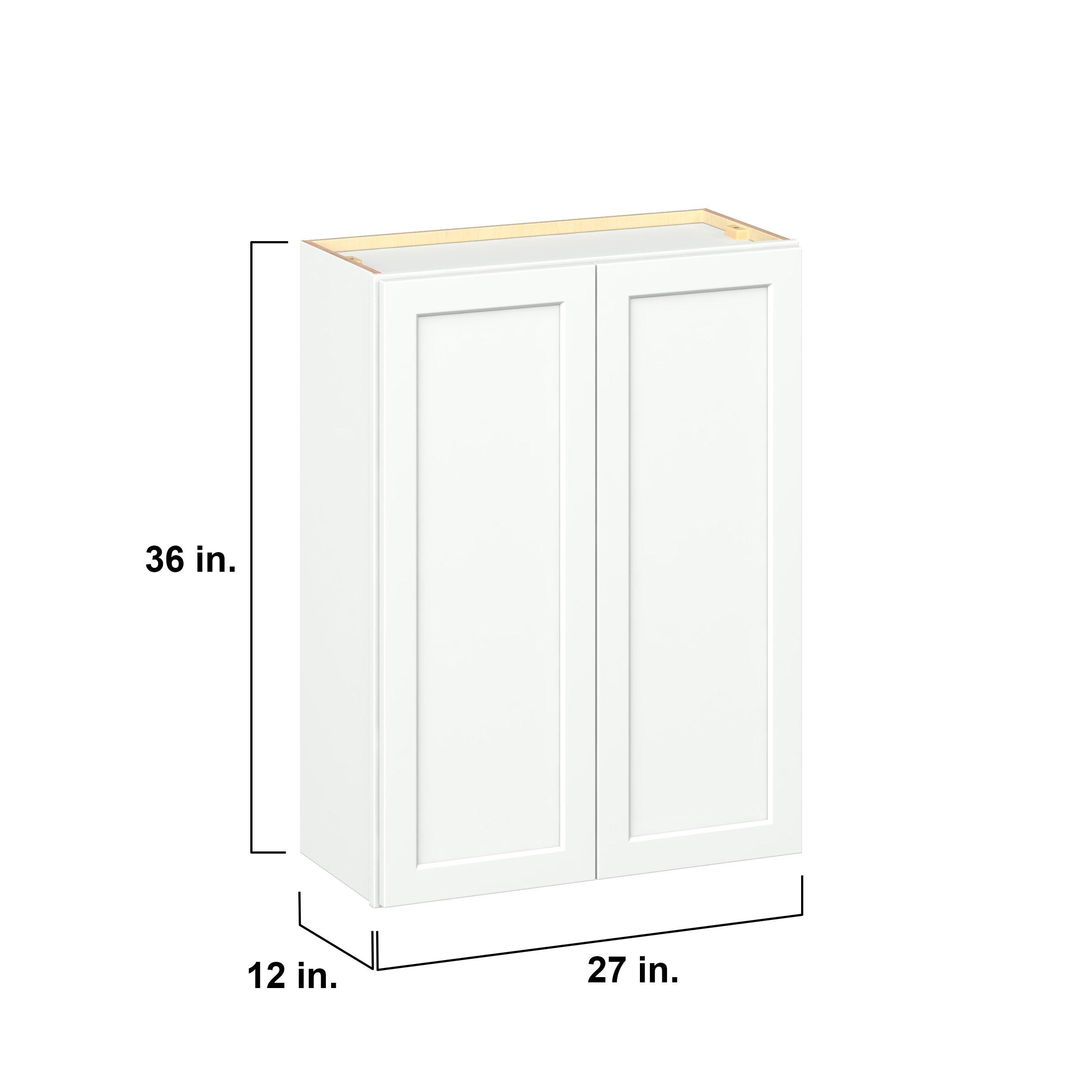 Embrace the timeless charm of the Baxley classic shaker door style. Studio Design Collection Baxley 27 in. Painted Pure White Door Wall Cabinet features all plywood construction, offering both superior strength and sophistication to your space. Featuring 5-piece MDF doors and dovetail drawer joints, these cabinets offer durability and elegance. Baxley classic shaker door style is designed to retain its stunning appearance and withstand the test of time.