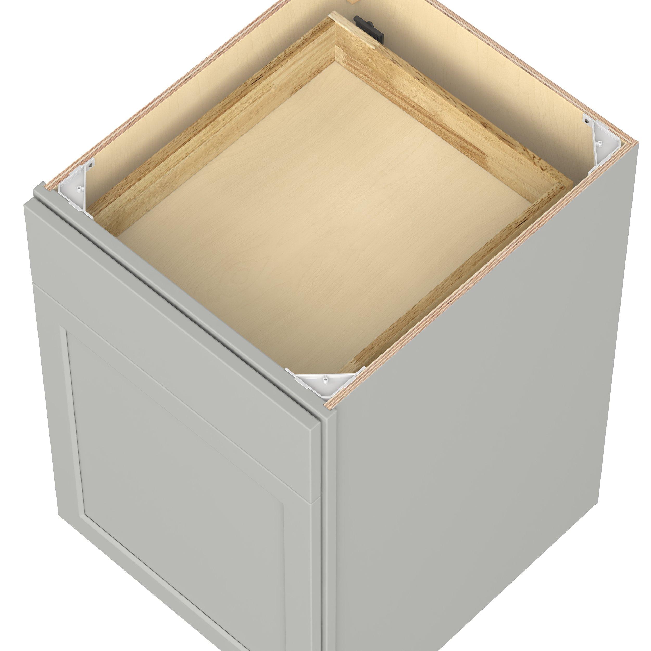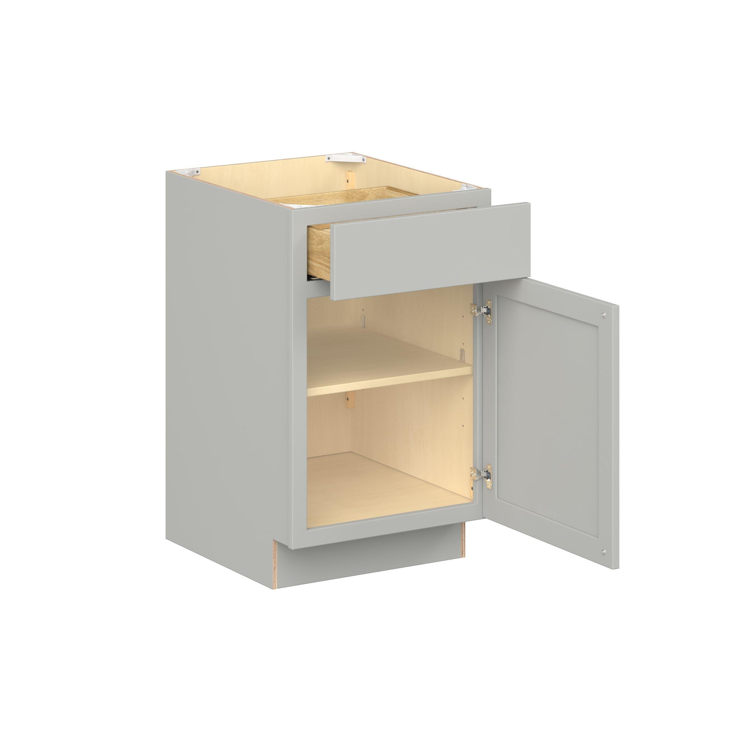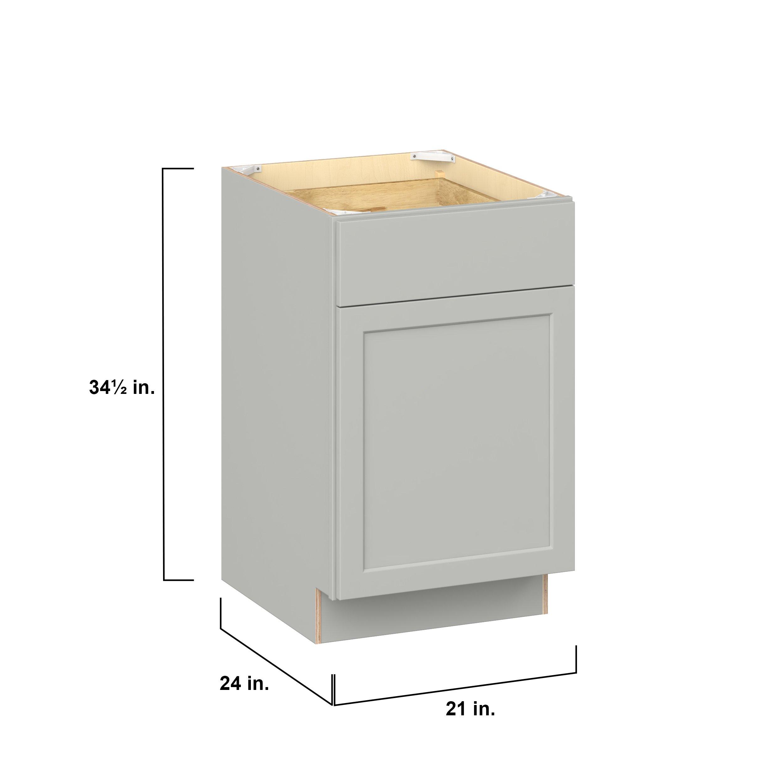 Embrace the timeless charm of the Baxley classic shaker door style. Studio Design Collection Baxley 21 in. Painted Whisper Gray Door and Drawer Base Cabinet - Right Door Hinge features all plywood construction, offering both superior strength and sophistication to your space. Featuring 5-piece MDF doors and dovetail drawer joints, these cabinets offer durability and elegance. Baxley classic shaker door style is designed to retain its stunning appearance and withstand the test of time.
