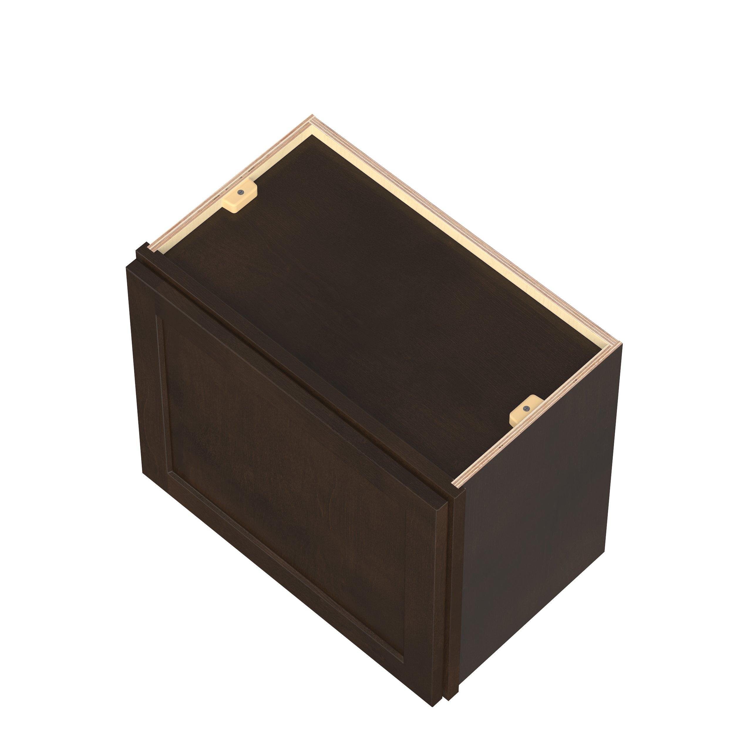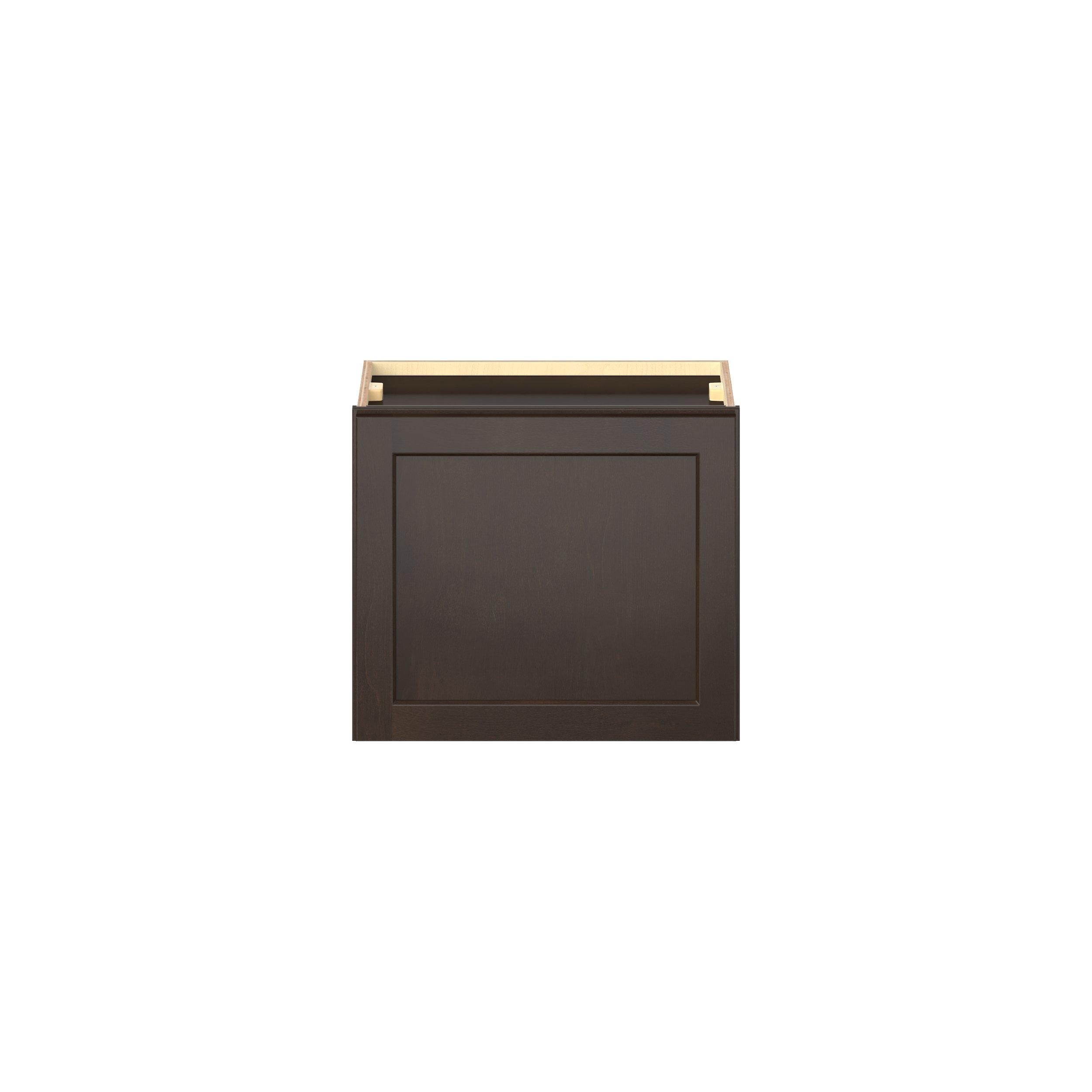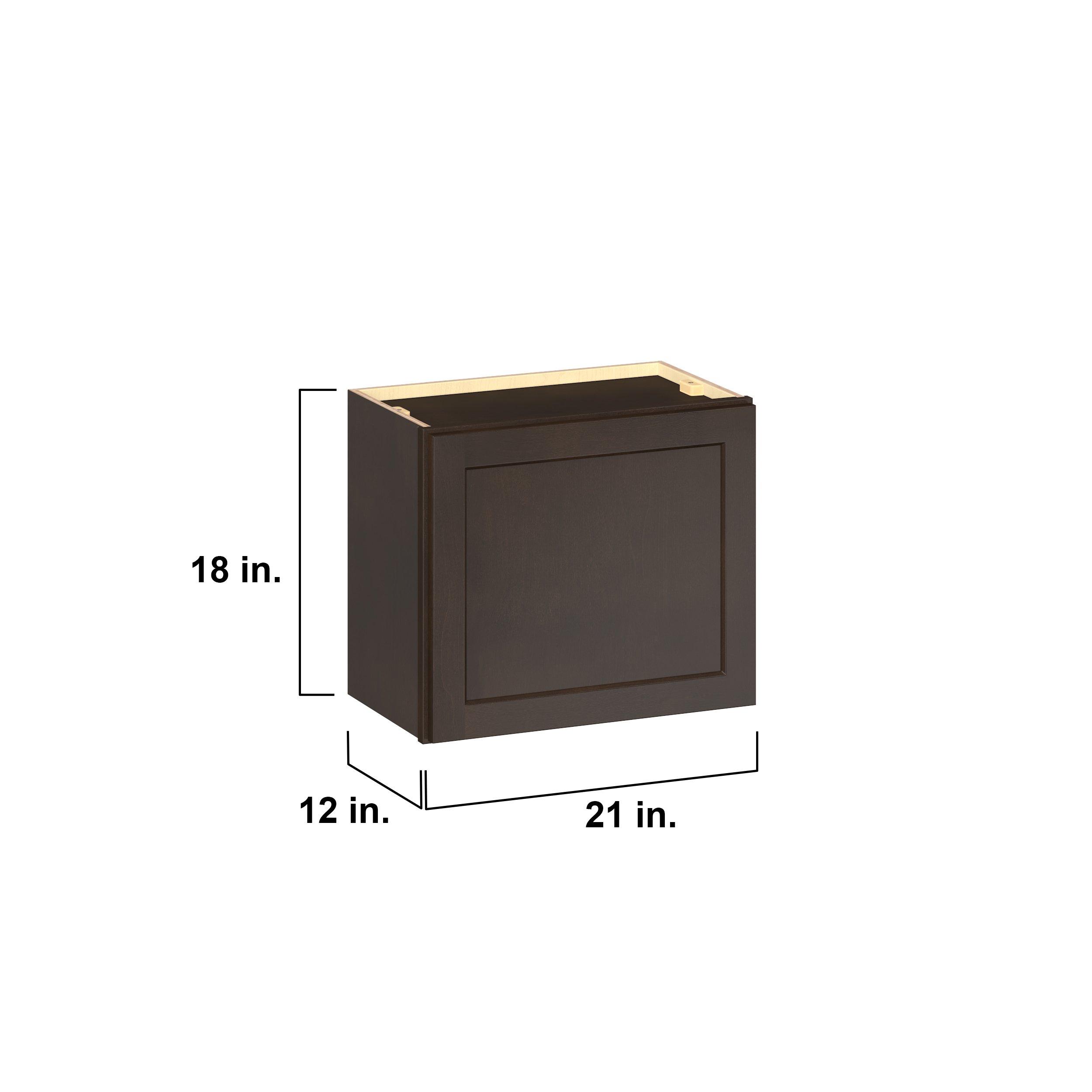 Embrace the timeless charm of the Baxley classic shaker door style. Studio Design Collection Baxley 21 in. Stained Cocoa Bridge Wall Cabinet features all plywood construction, offering both superior strength and sophistication to your space. Featuring 5-piece solid wood doors and dovetail drawer joints, these cabinets offer durability and elegance. Baxley classic shaker door style is designed to retain its stunning appearance and withstand the test of time.