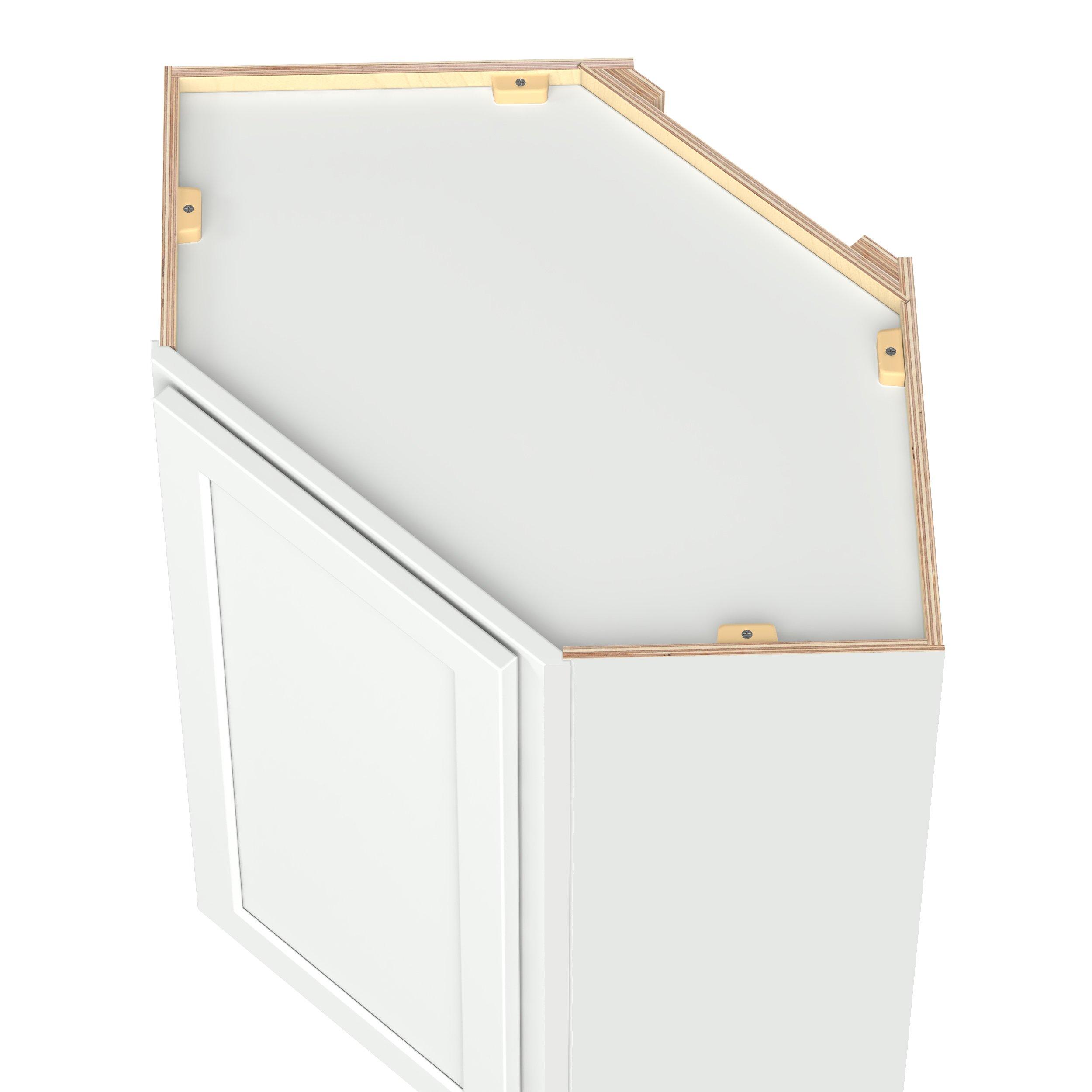 Embrace the timeless charm of the Baxley classic shaker door style. Studio Design Collection Baxley 24 in. Painted Pure White Wall Angle Corner Cabinet features all plywood construction, offering both superior strength and sophistication to your space. Featuring 5-piece MDF doors and dovetail drawer joints, these cabinets offer durability and elegance. Baxley classic shaker door style is designed to retain its stunning appearance and withstand the test of time.