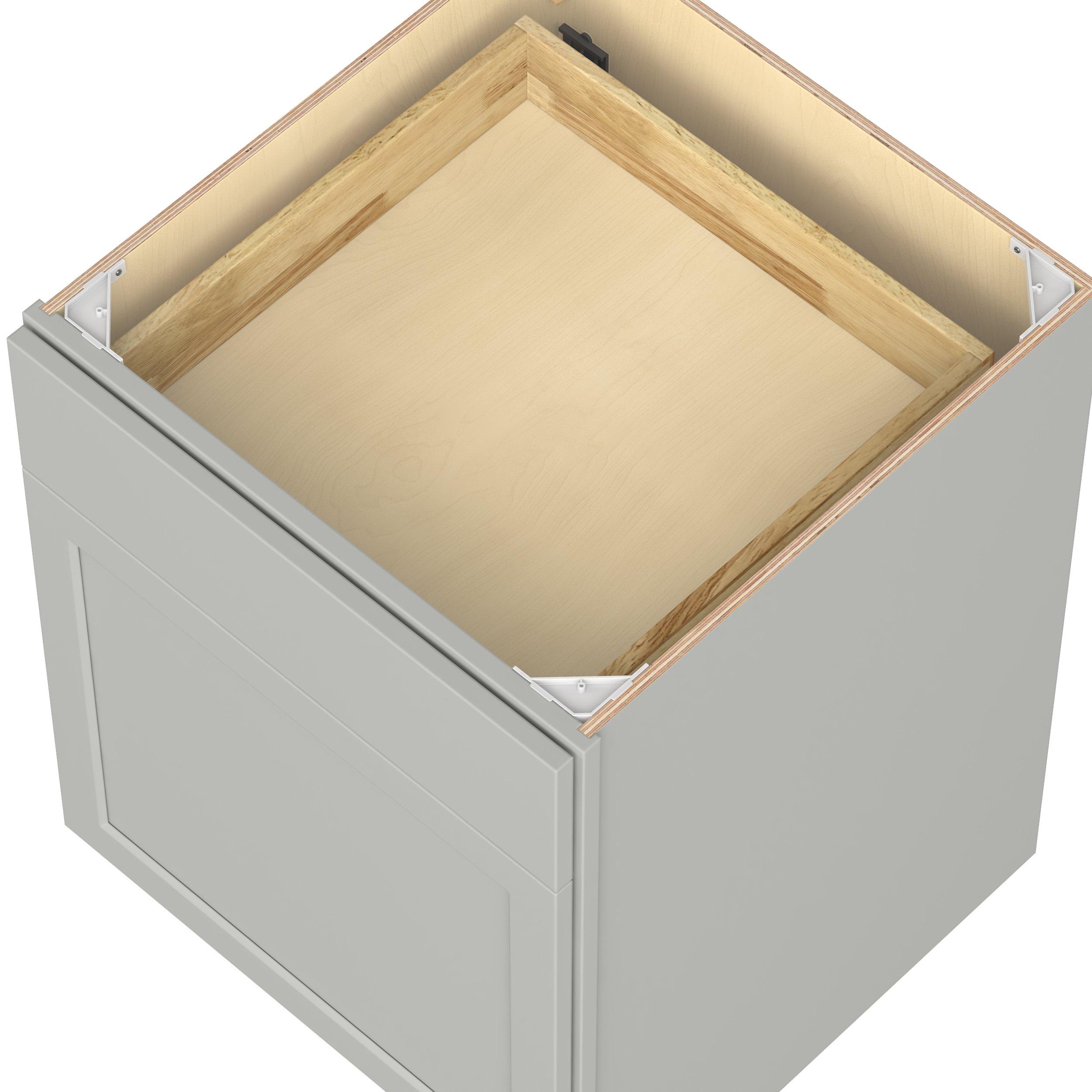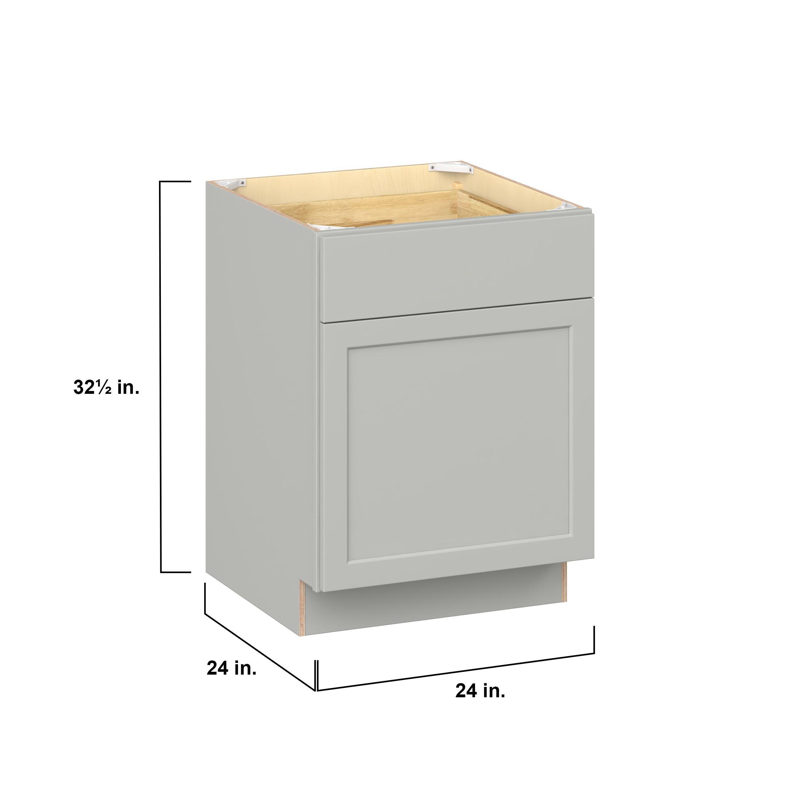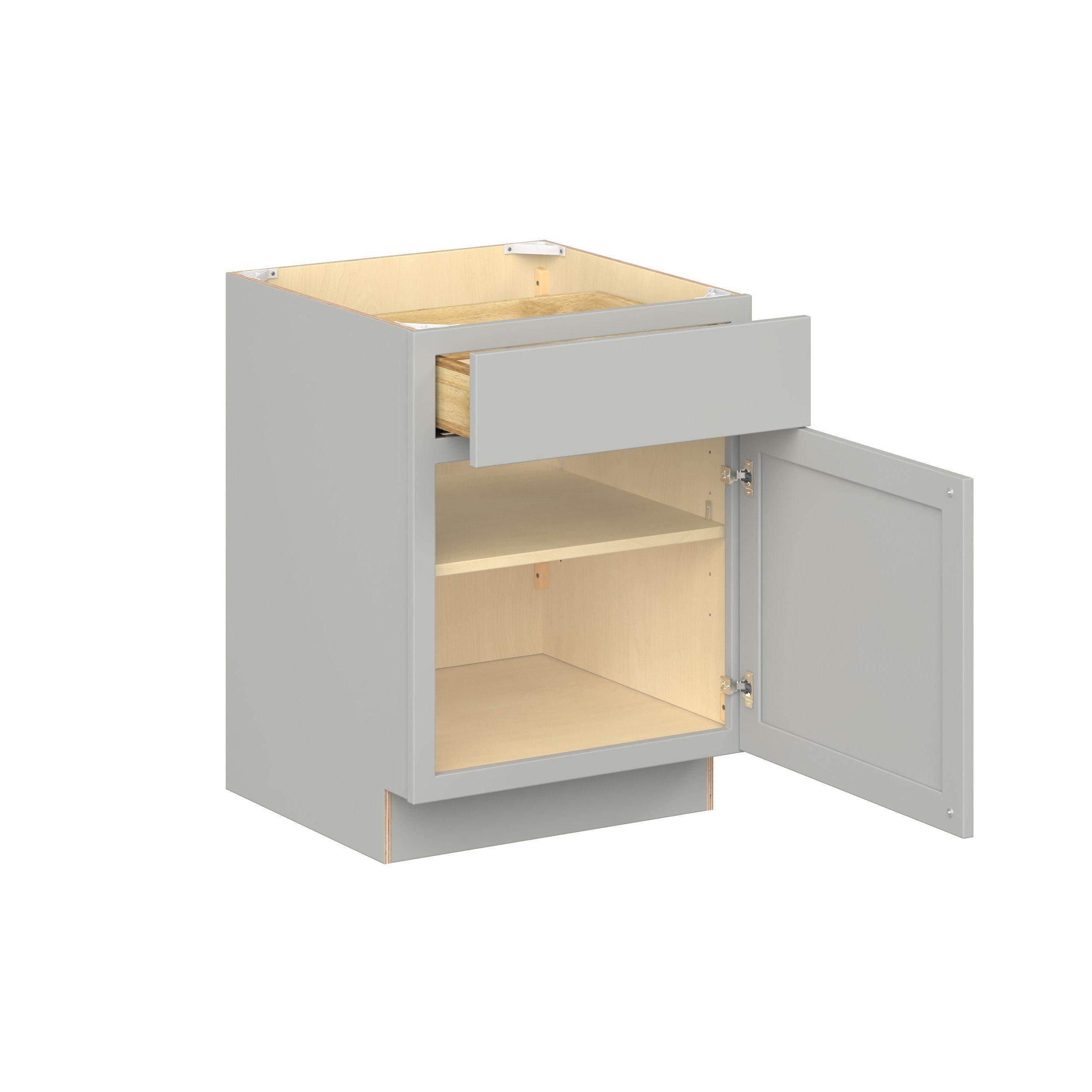 Embrace the timeless charm of the Baxley classic shaker door style. Studio Design Collection Baxley 24 in. Painted Whisper Gray Door and Drawer Base Cabinet - ADA - Right Door Hinge features all plywood construction, offering both superior strength and sophistication to your space. Featuring 5-piece MDF doors and dovetail drawer joints, these cabinets offer durability and elegance. Baxley classic shaker door style is designed to retain its stunning appearance and withstand the test of time.