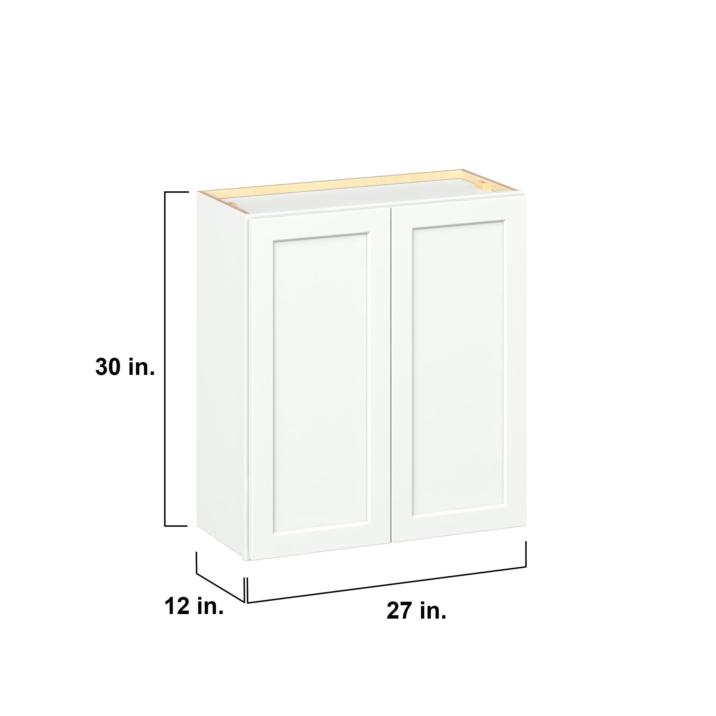 Embrace the timeless charm of the Baxley classic shaker door style. Studio Design Collection Baxley 27 in. Painted Pure White Door Wall Cabinet features all plywood construction, offering both superior strength and sophistication to your space. Featuring 5-piece MDF doors and dovetail drawer joints, these cabinets offer durability and elegance. Baxley classic shaker door style is designed to retain its stunning appearance and withstand the test of time.