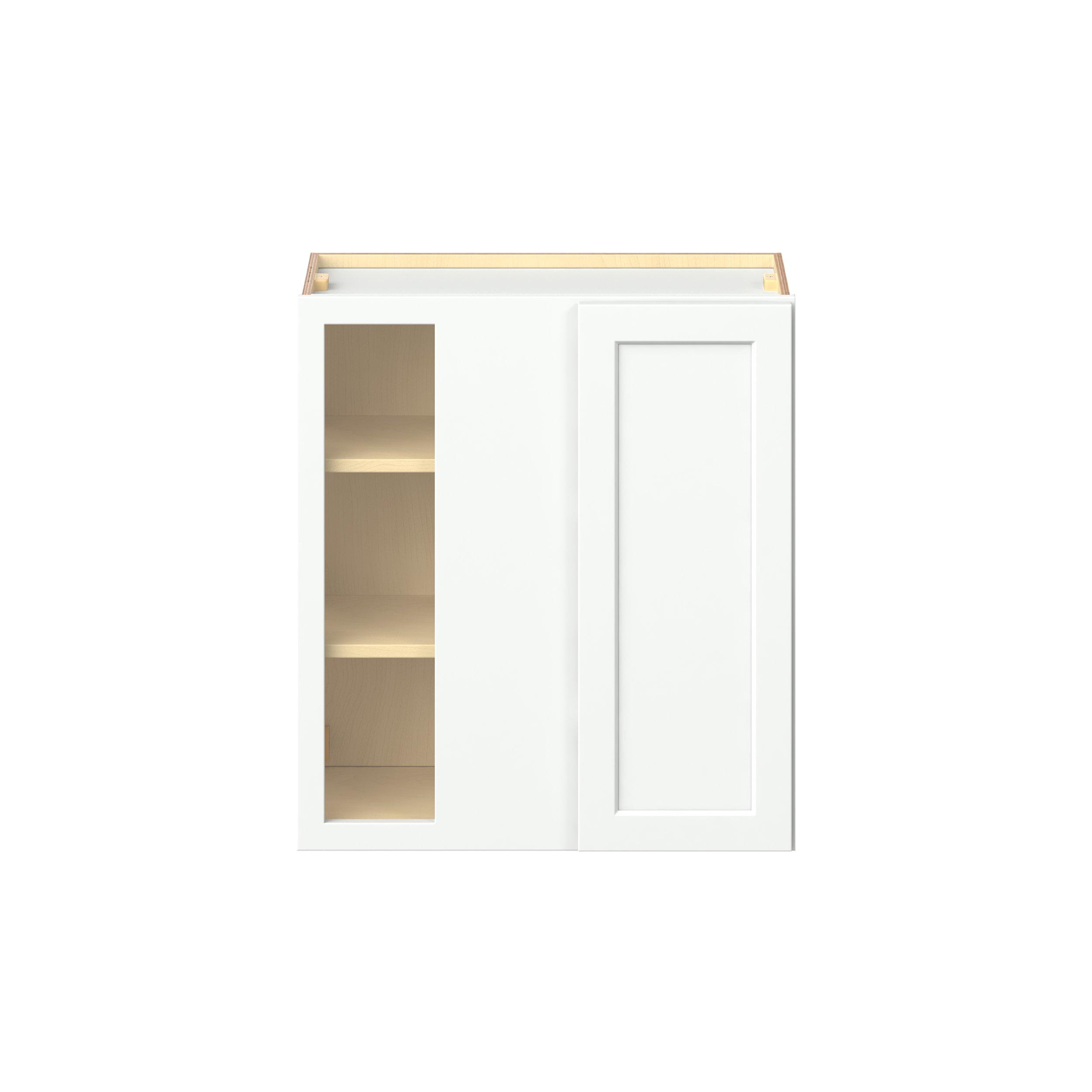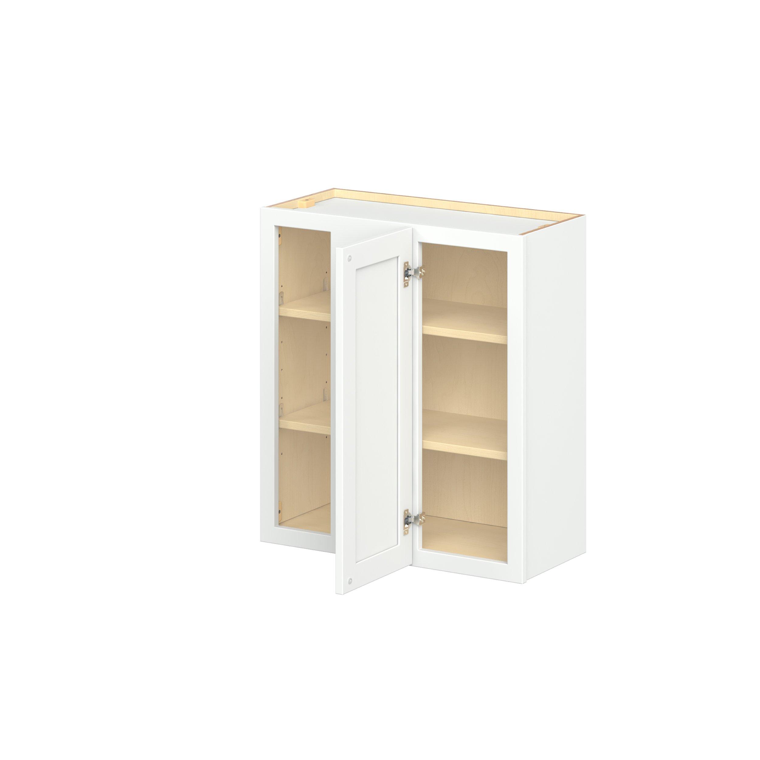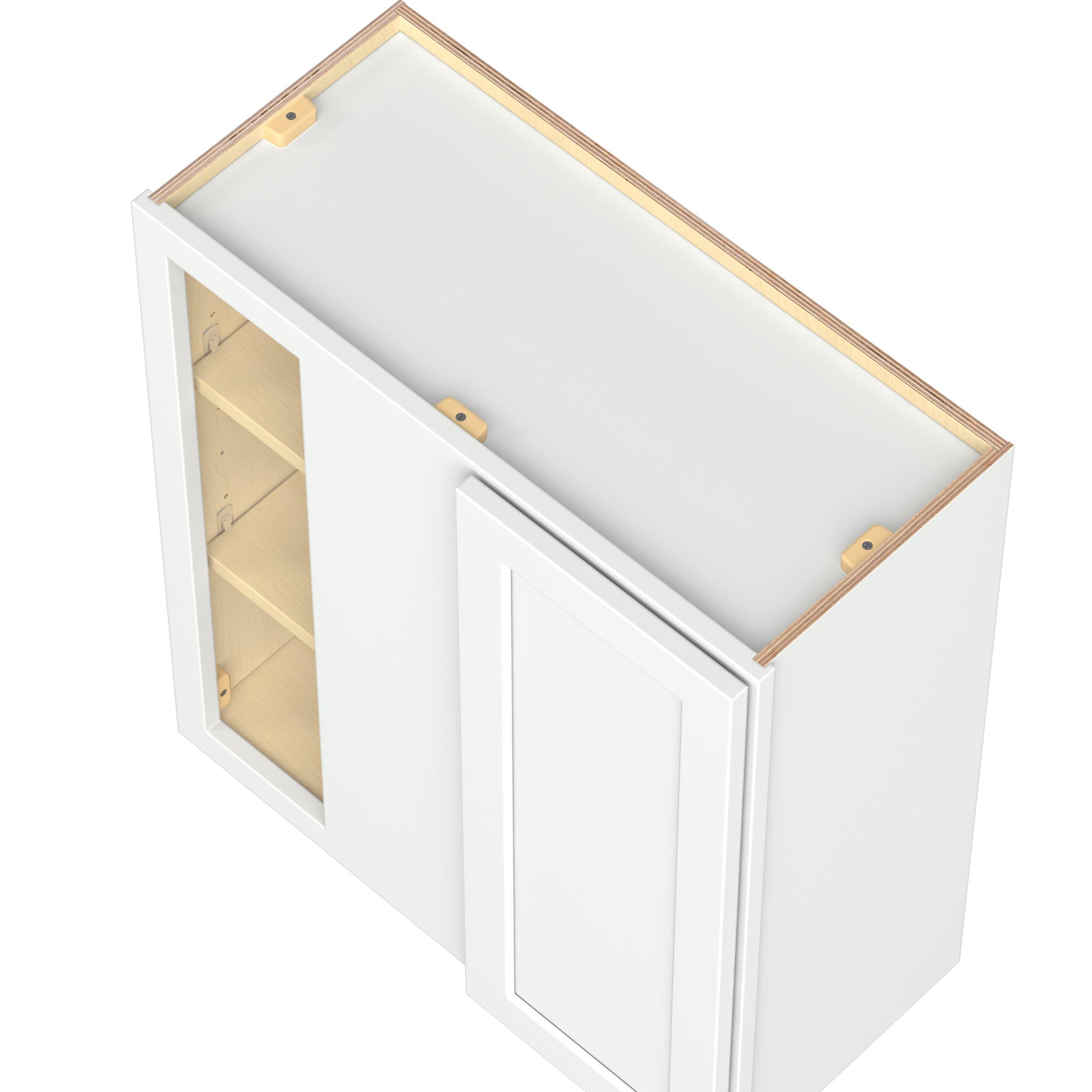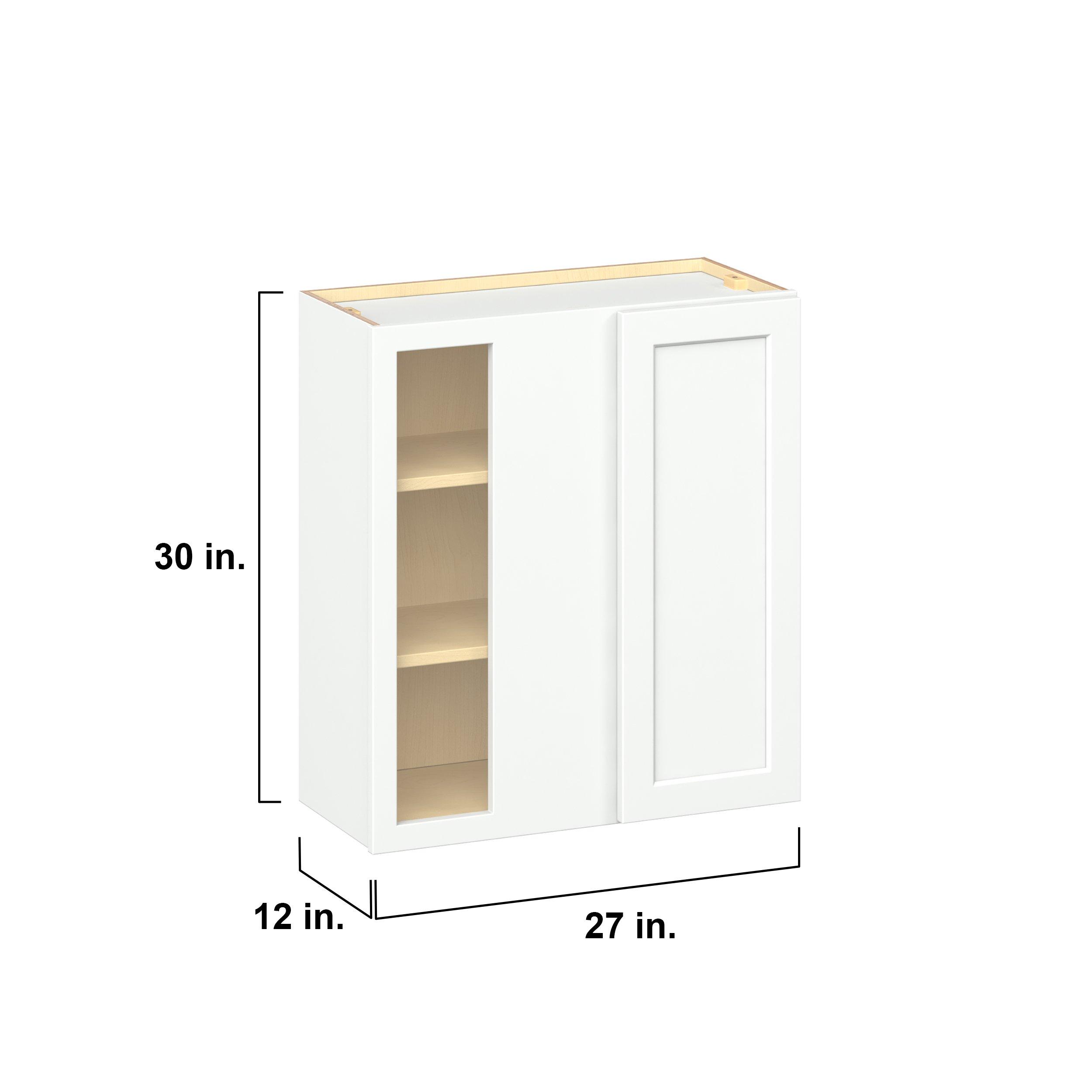 Embrace the timeless charm of the Baxley classic shaker door style. Studio Design Collection Baxley 27 in. Painted Pure White Left Blind Corner Wall Cabinet features all plywood construction, offering both superior strength and sophistication to your space. Featuring 5-piece MDF doors and dovetail drawer joints, these cabinets offer durability and elegance. Baxley classic shaker door style is designed to retain its stunning appearance and withstand the test of time.