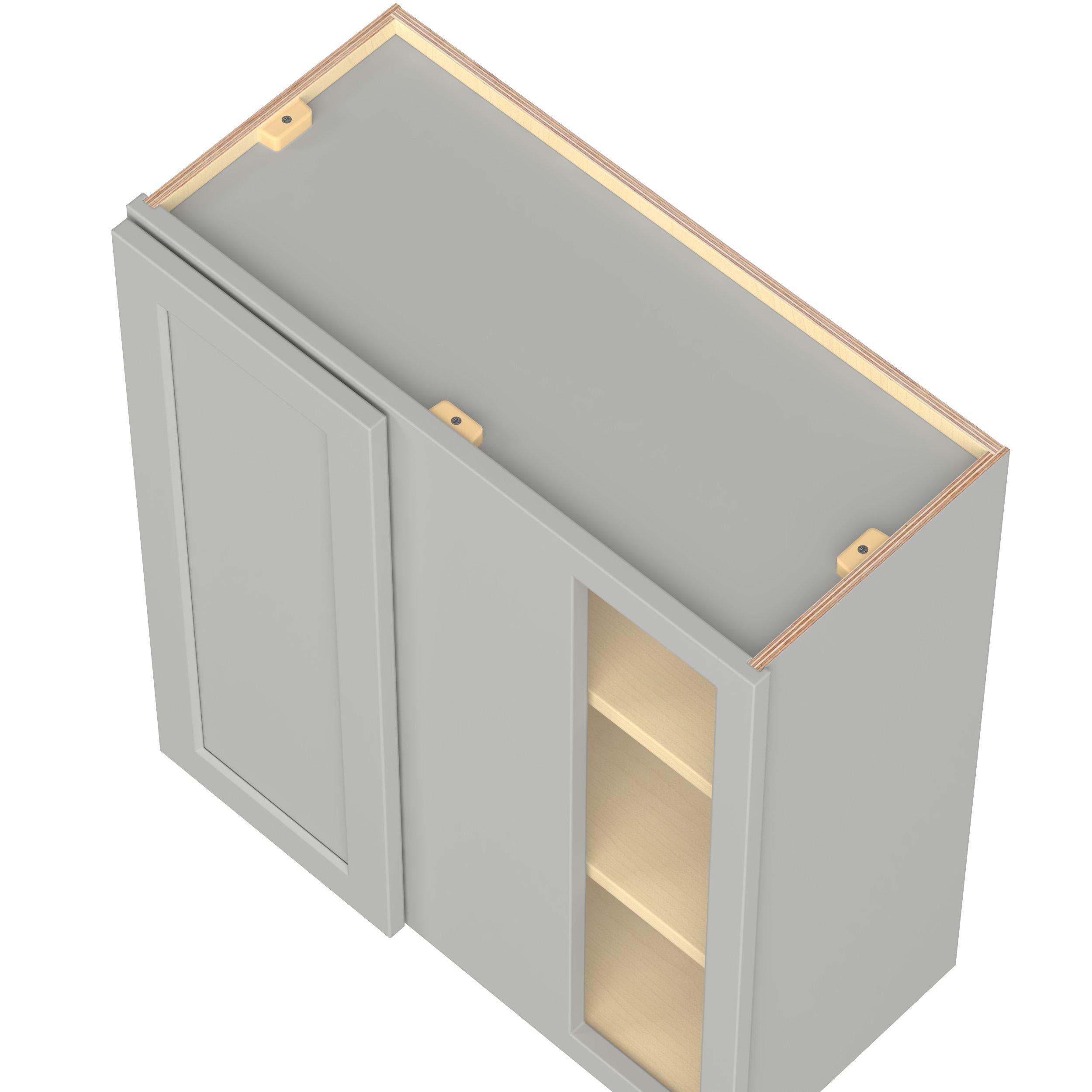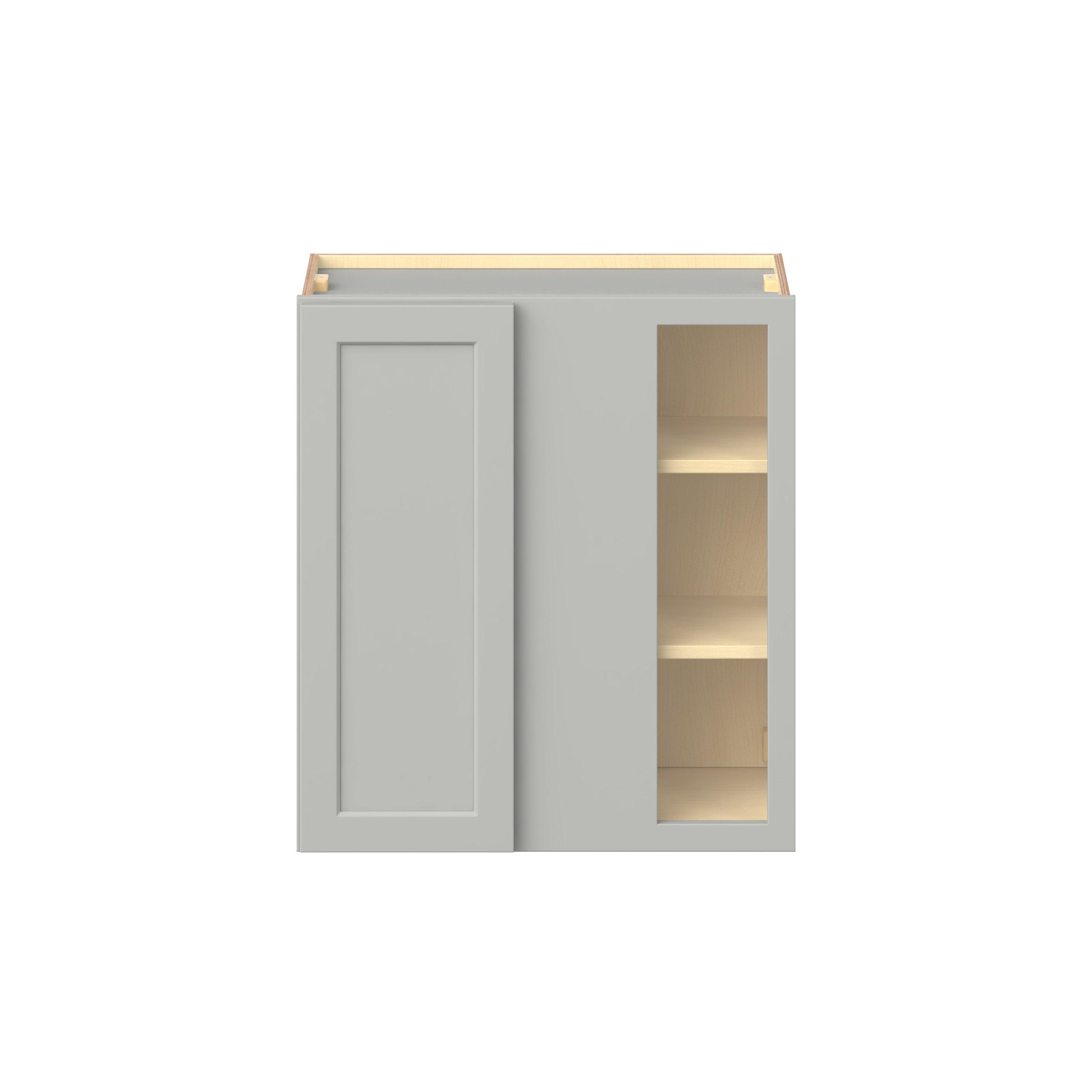 Embrace the timeless charm of the Baxley classic shaker door style. Studio Design Collection Baxley 27 in. Painted Whisper Gray Right Blind Corner Wall Cabinet features all plywood construction, offering both superior strength and sophistication to your space. Featuring 5-piece MDF doors and dovetail drawer joints, these cabinets offer durability and elegance. Baxley classic shaker door style is designed to retain its stunning appearance and withstand the test of time.