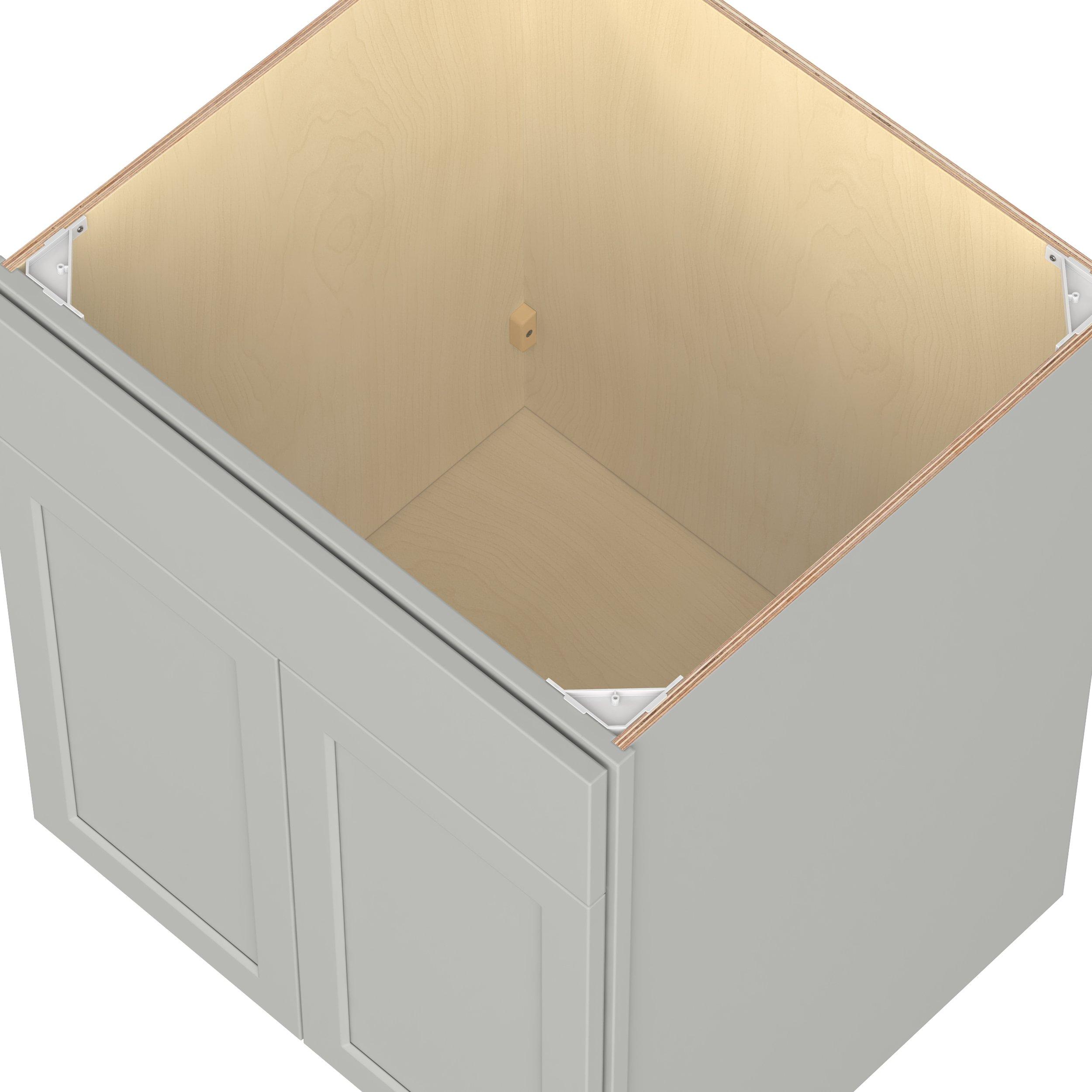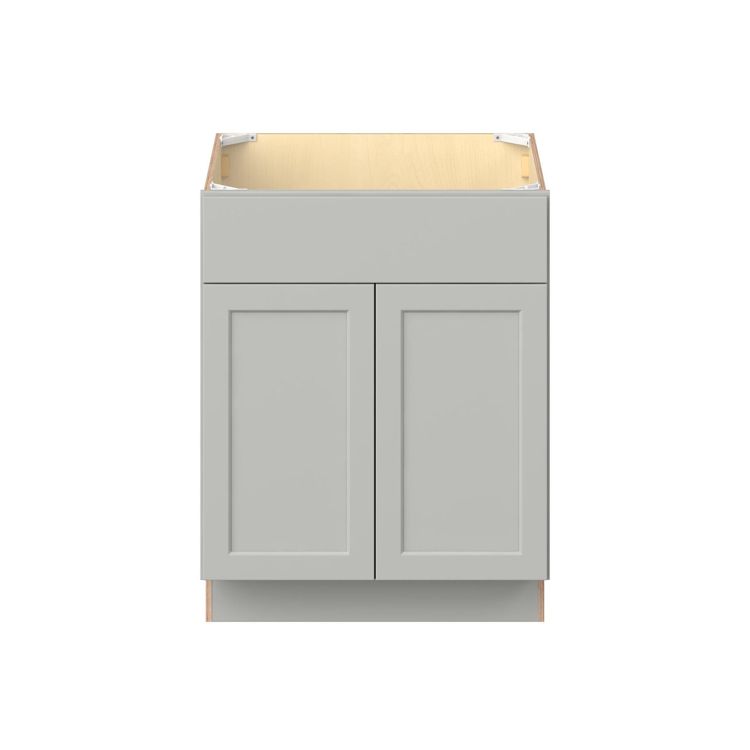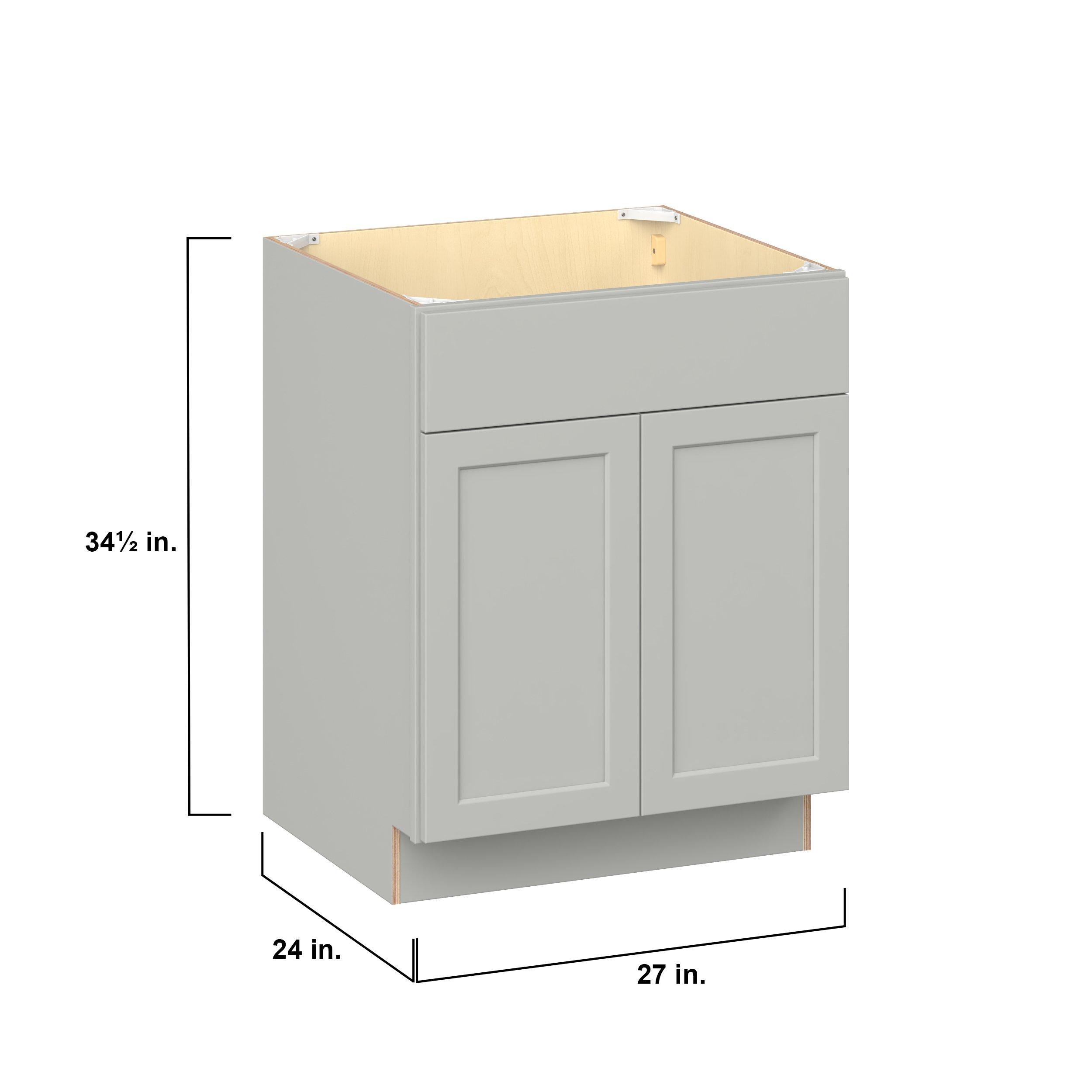 Embrace the timeless charm of the Baxley classic shaker door style. Studio Design Collection Baxley 27 in. Painted Whisper Gray Sink Base Cabinet with False Front features all plywood construction, offering both superior strength and sophistication to your space. Featuring 5-piece MDF doors and dovetail drawer joints, these cabinets offer durability and elegance. Baxley classic shaker door style is designed to retain its stunning appearance and withstand the test of time.