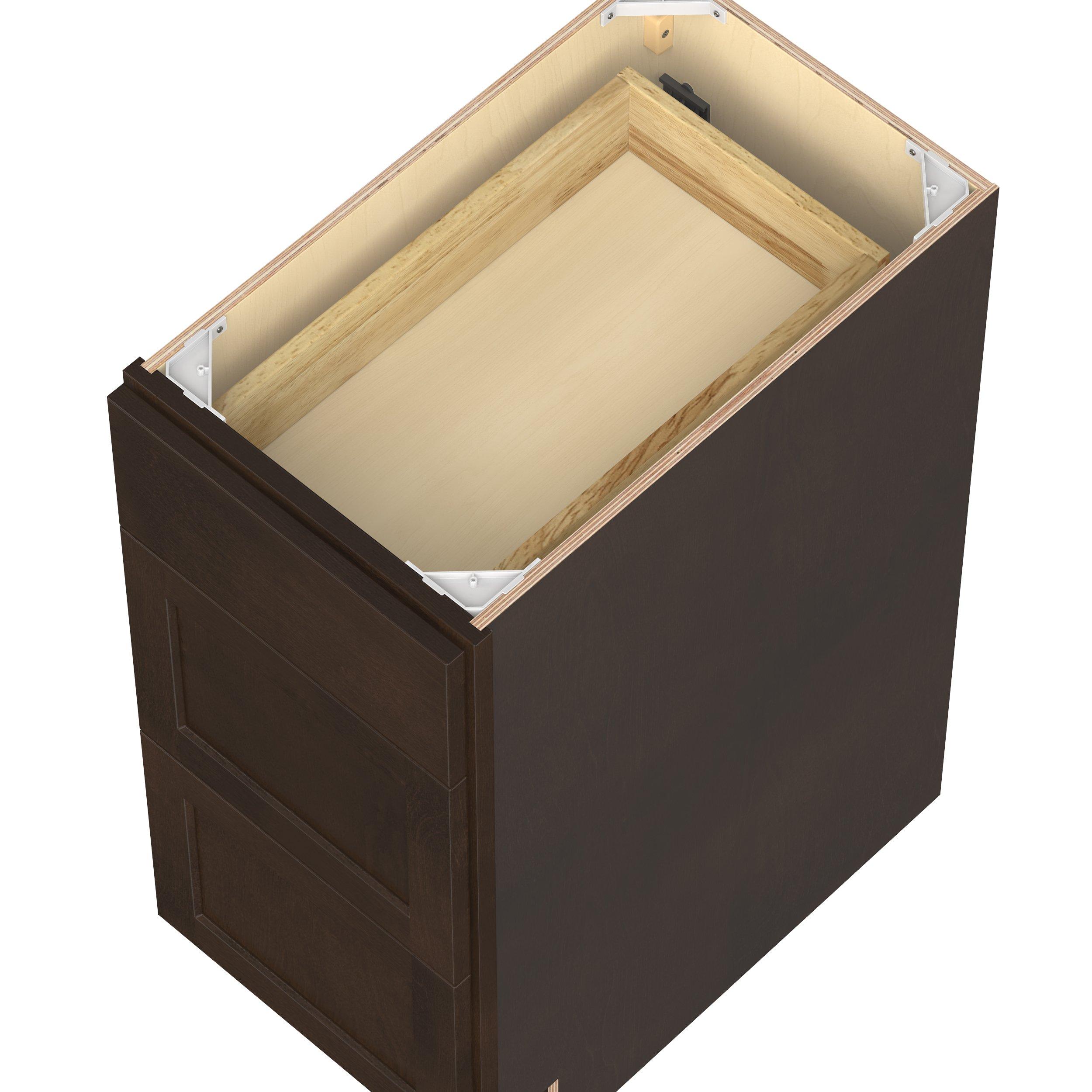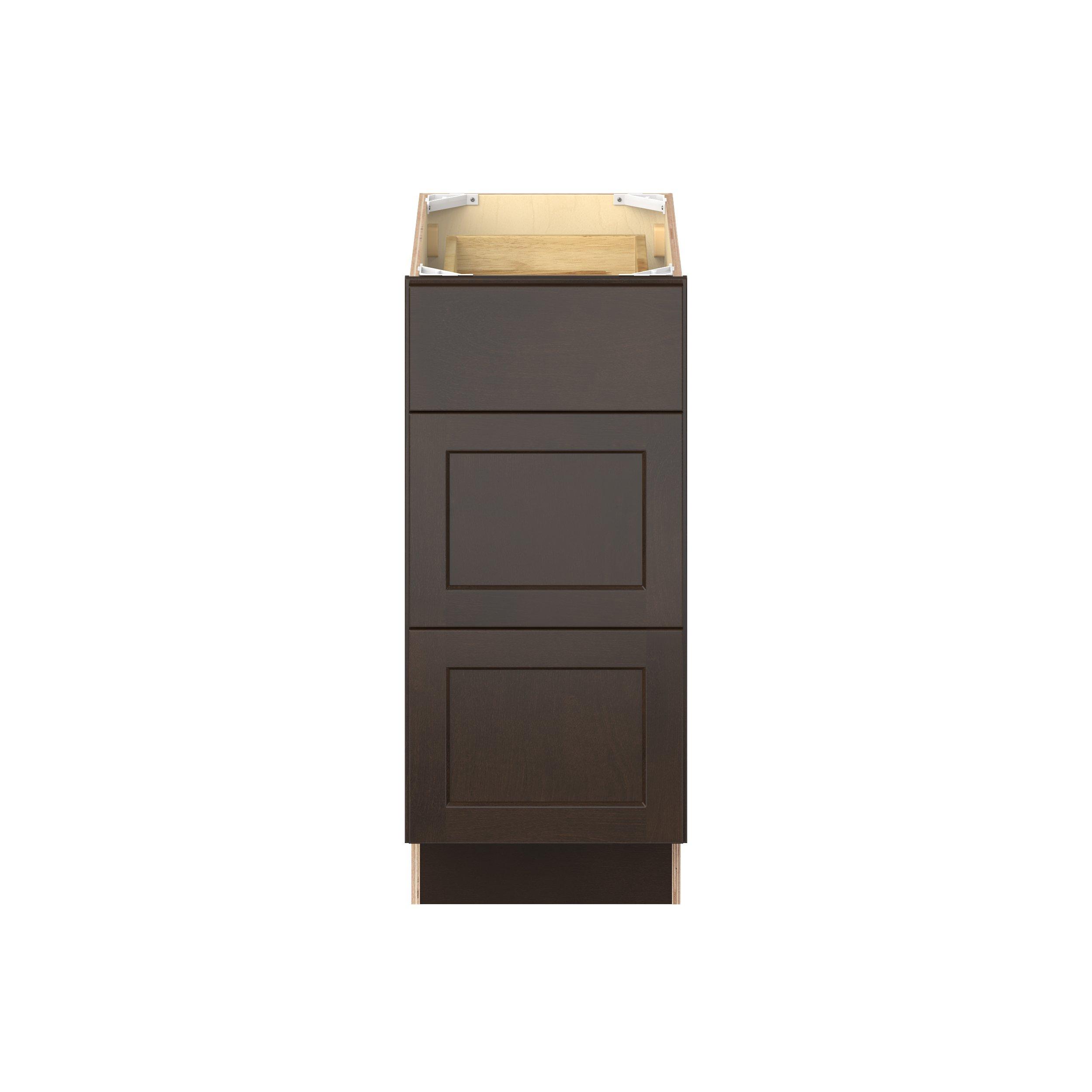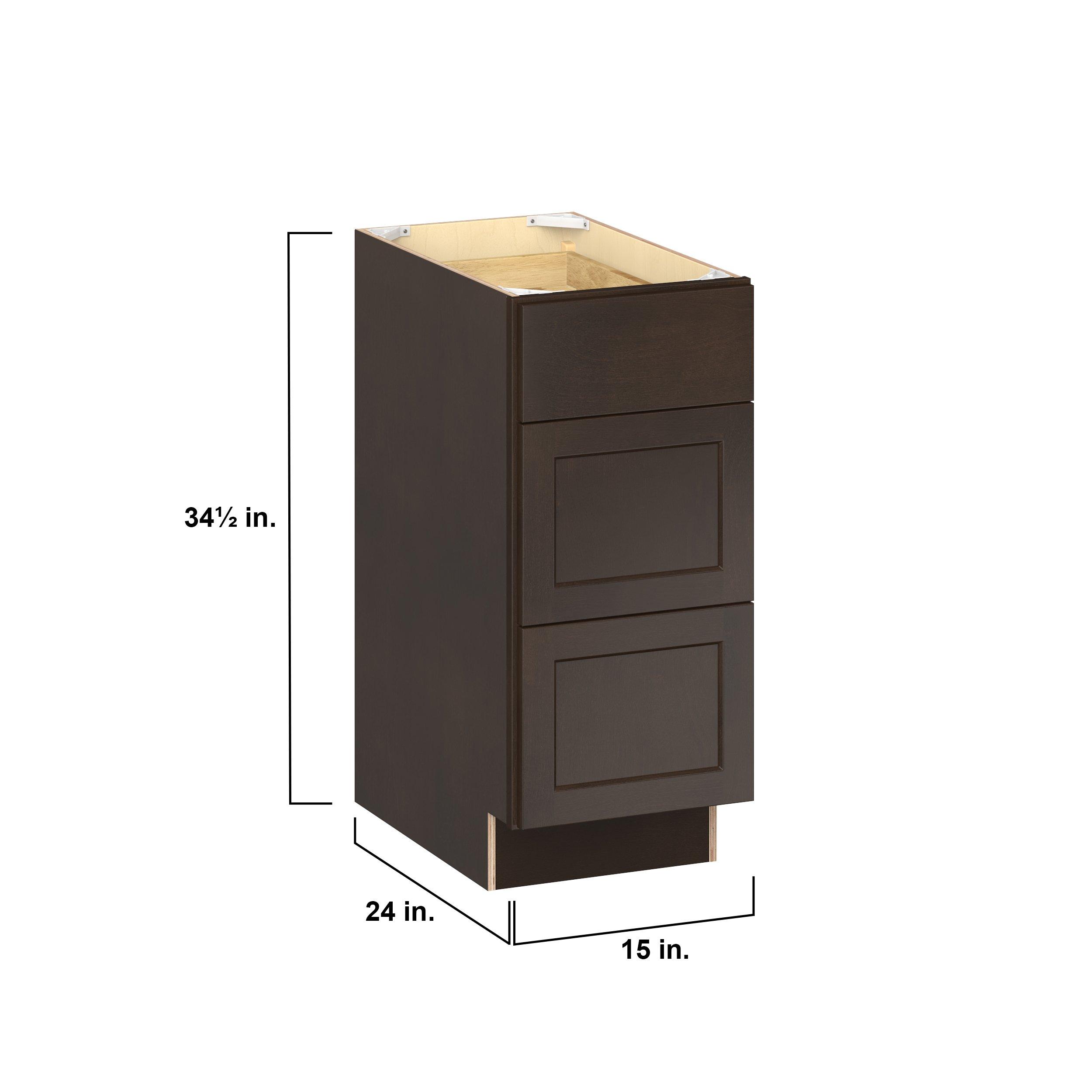 Embrace the timeless charm of the Baxley classic shaker door style. Studio Design Collection Baxley 15 in. Stained Cocoa Drawer Base Cabinet features all plywood construction, offering both superior strength and sophistication to your space. Featuring 5-piece solid wood doors and dovetail drawer joints, these cabinets offer durability and elegance. Baxley classic shaker door style is designed to retain its stunning appearance and withstand the test of time.