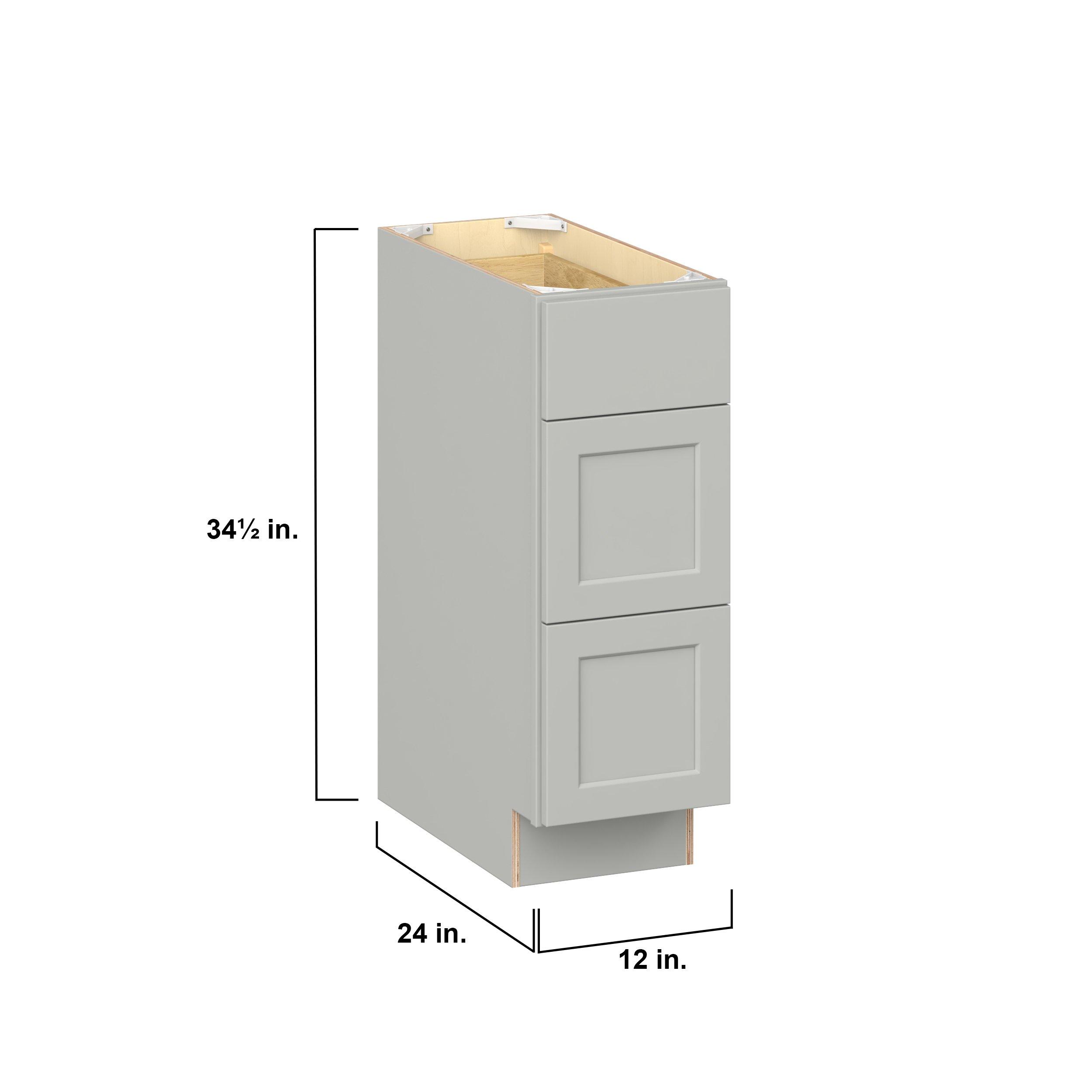 Embrace the timeless charm of the Baxley classic shaker door style. Studio Design Collection Baxley 12 in. Painted Whisper Gray Drawer Base Cabinet features all plywood construction, offering both superior strength and sophistication to your space. Featuring 5-piece MDF doors and dovetail drawer joints, these cabinets offer durability and elegance. Baxley classic shaker door style is designed to retain its stunning appearance and withstand the test of time.