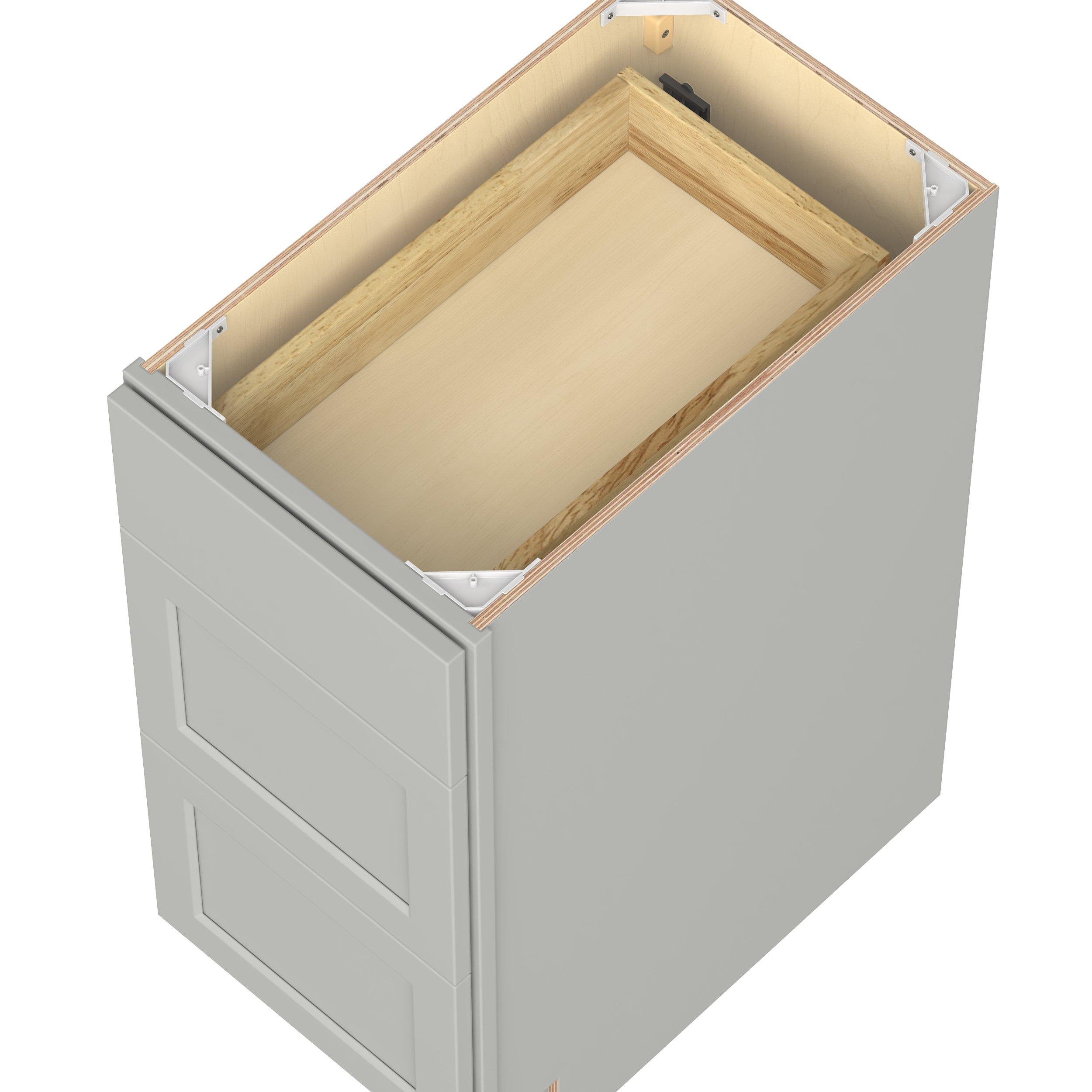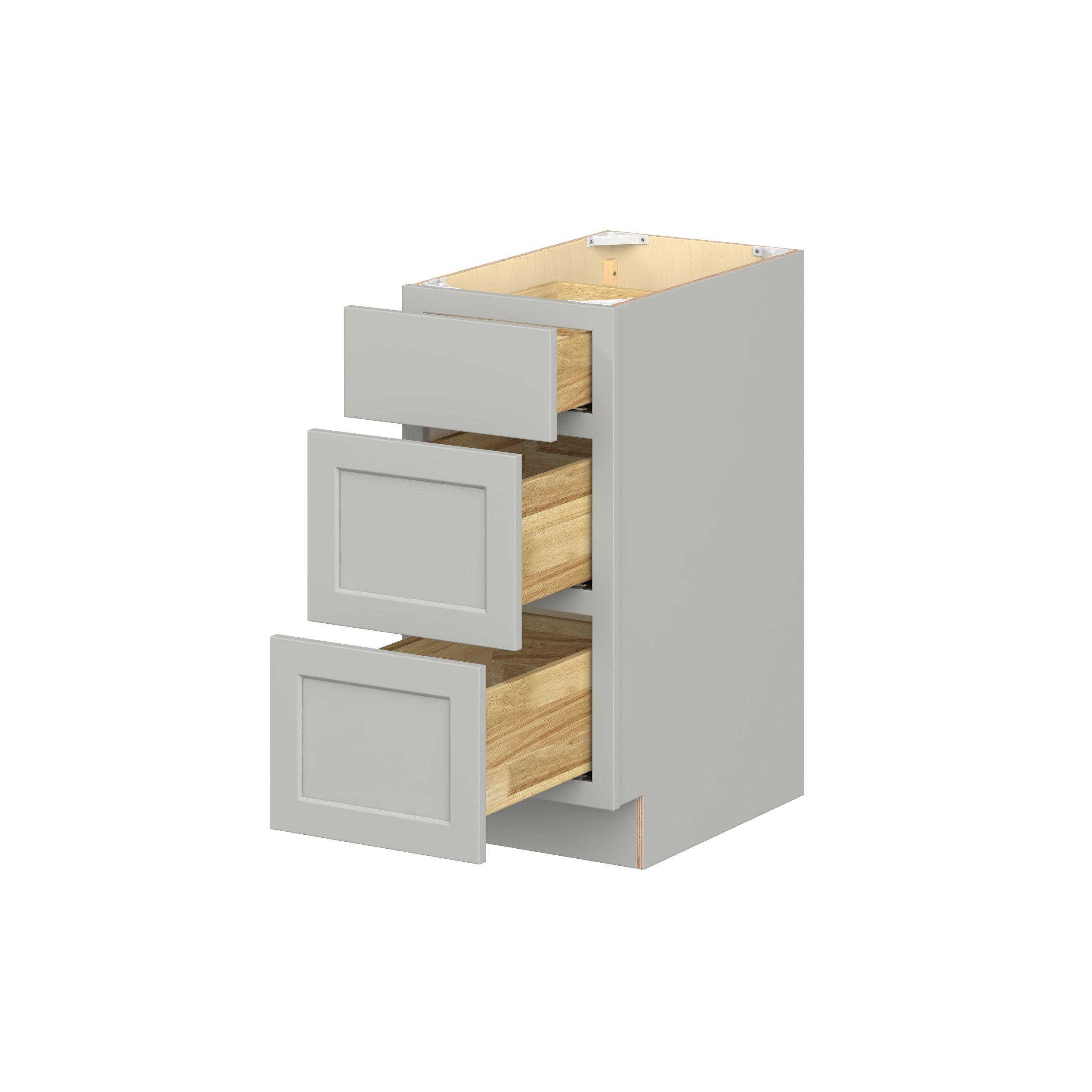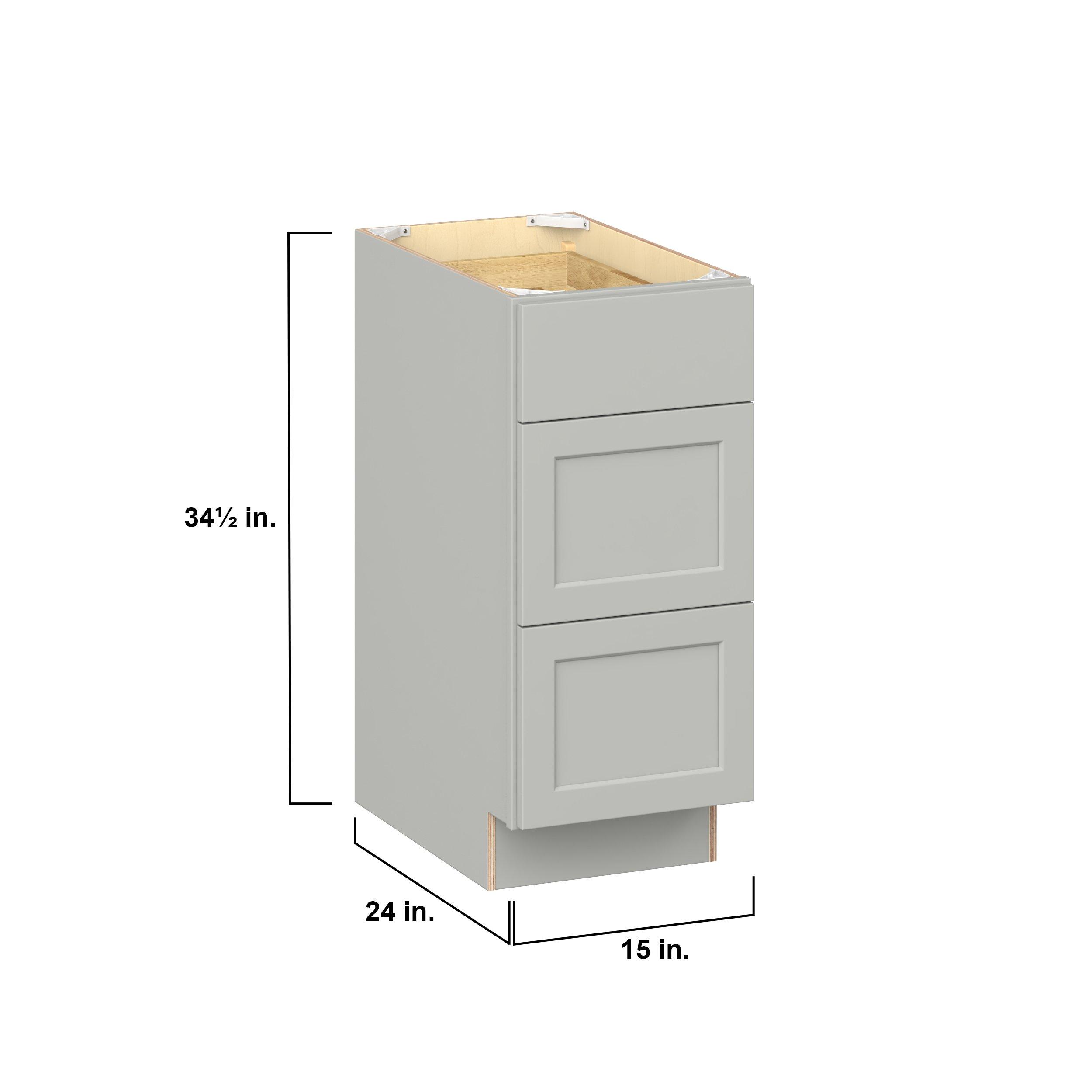 Embrace the timeless charm of the Baxley classic shaker door style. Studio Design Collection Baxley 15 in. Painted Whisper Gray Drawer Base Cabinet features all plywood construction, offering both superior strength and sophistication to your space. Featuring 5-piece MDF doors and dovetail drawer joints, these cabinets offer durability and elegance. Baxley classic shaker door style is designed to retain its stunning appearance and withstand the test of time.
