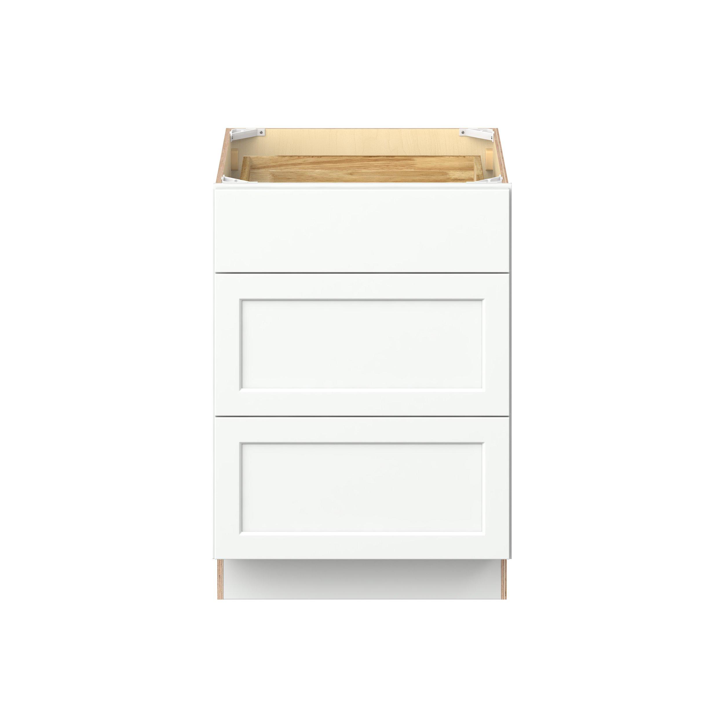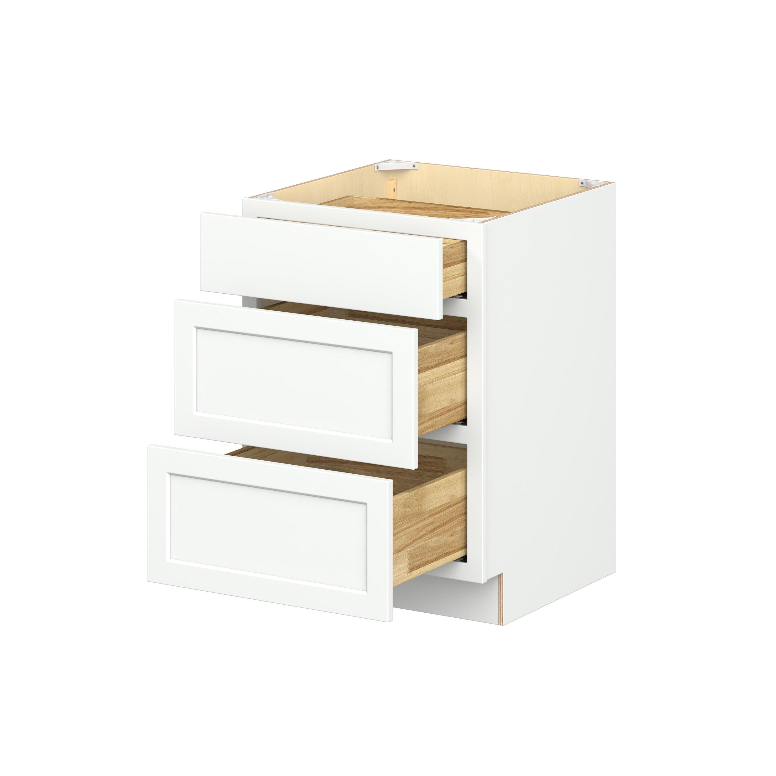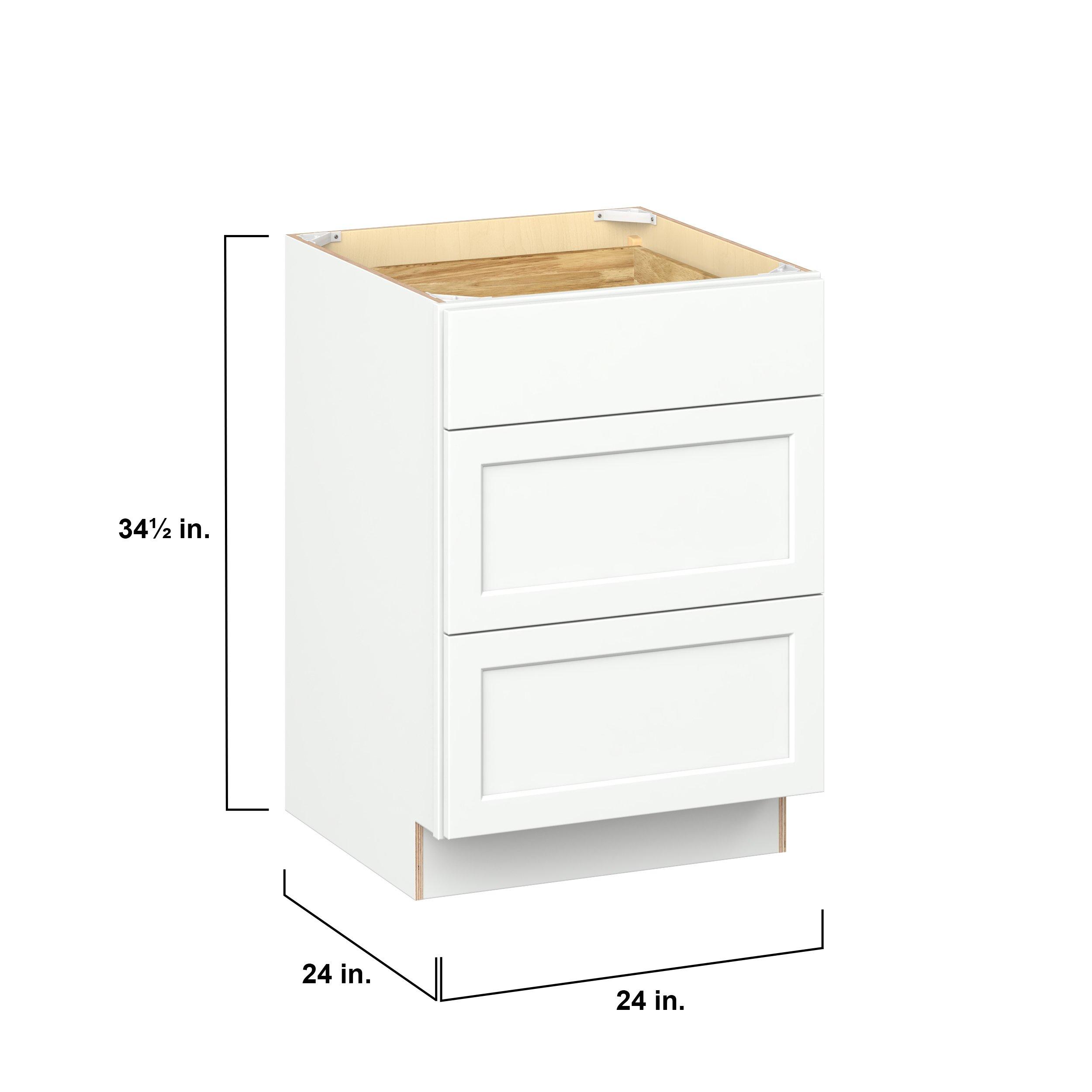 Embrace the timeless charm of the Baxley classic shaker door style. Studio Design Collection Baxley 24 in. Painted Pure White Drawer Base Cabinet features all plywood construction, offering both superior strength and sophistication to your space. Featuring 5-piece MDF doors and dovetail drawer joints, these cabinets offer durability and elegance. Baxley classic shaker door style is designed to retain its stunning appearance and withstand the test of time.