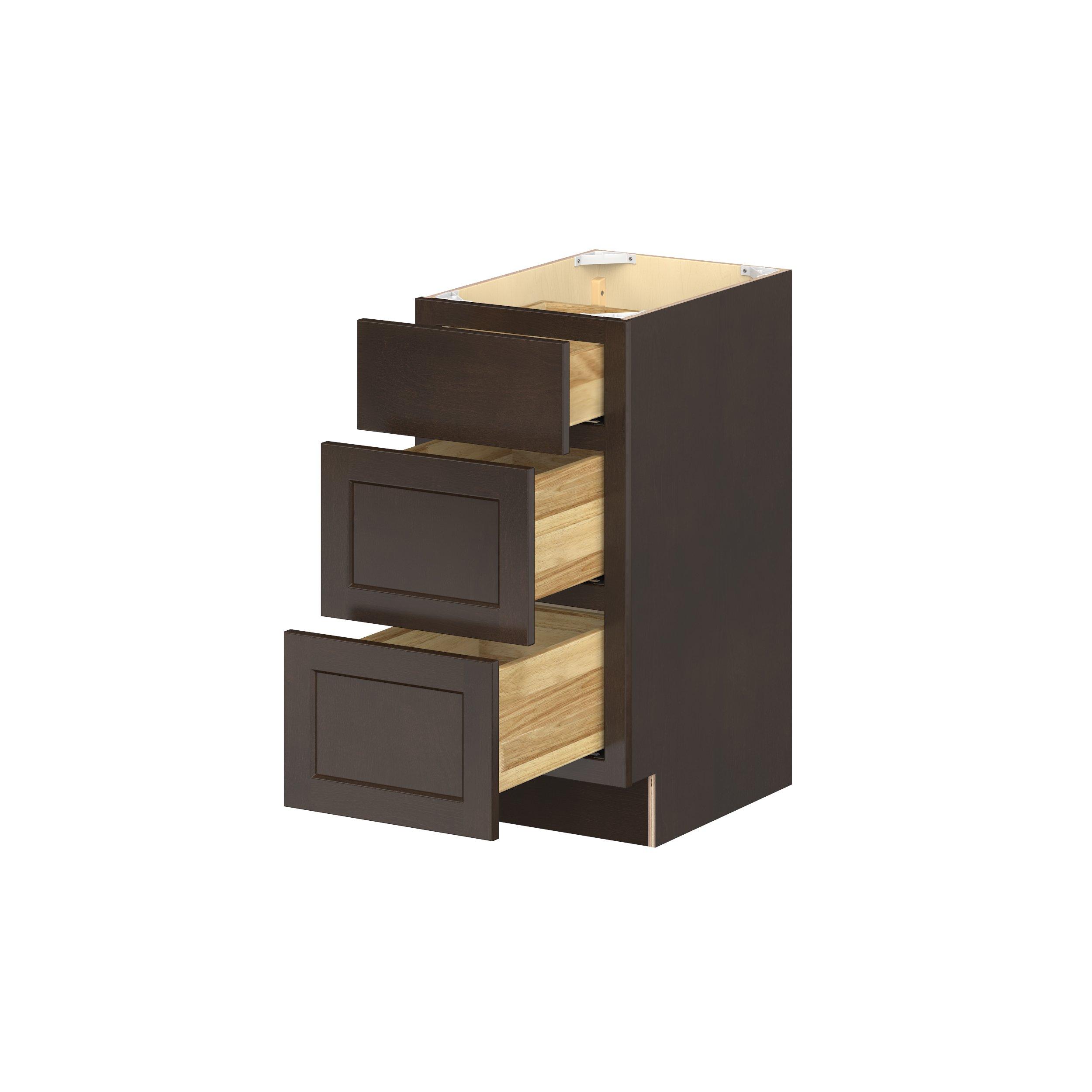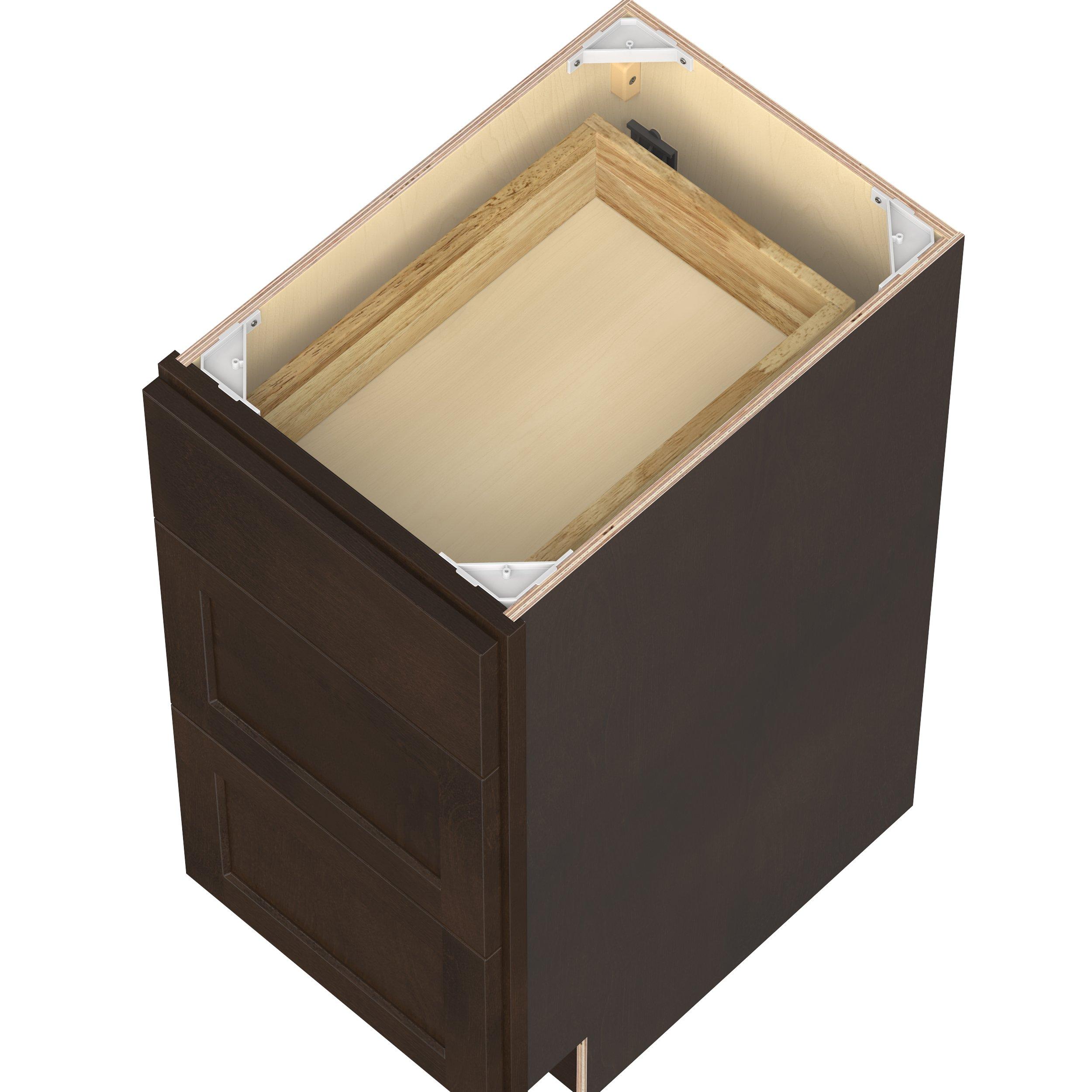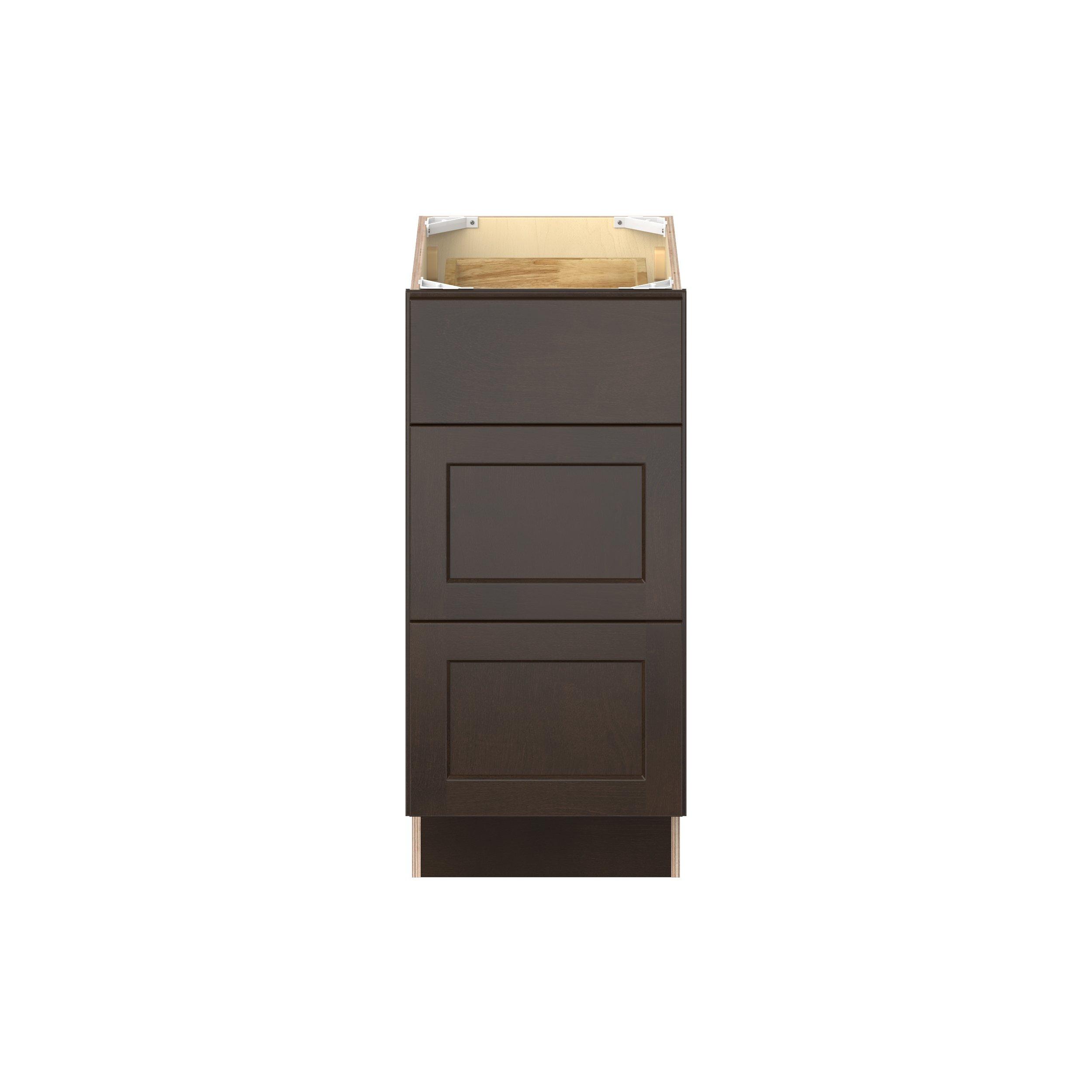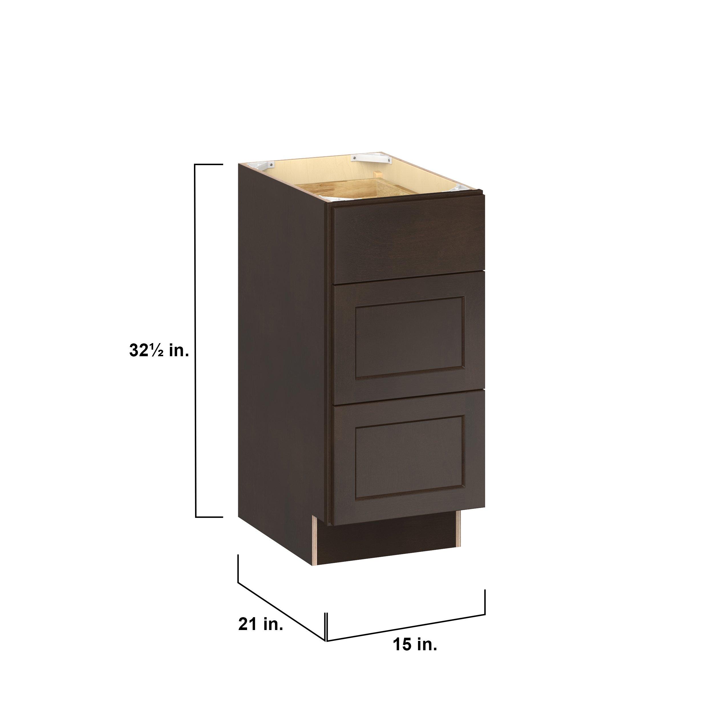Embrace the timeless charm of the Baxley classic shaker door style. Studio Design Collection Baxley 15 in. Stained Cocoa Vanity Drawer Base Cabinet - ADA features all plywood construction, offering both superior strength and sophistication to your space. Featuring 5-piece solid wood doors and dovetail drawer joints, these cabinets offer durability and elegance. Baxley classic shaker door style is designed to retain its stunning appearance and withstand the test of time.