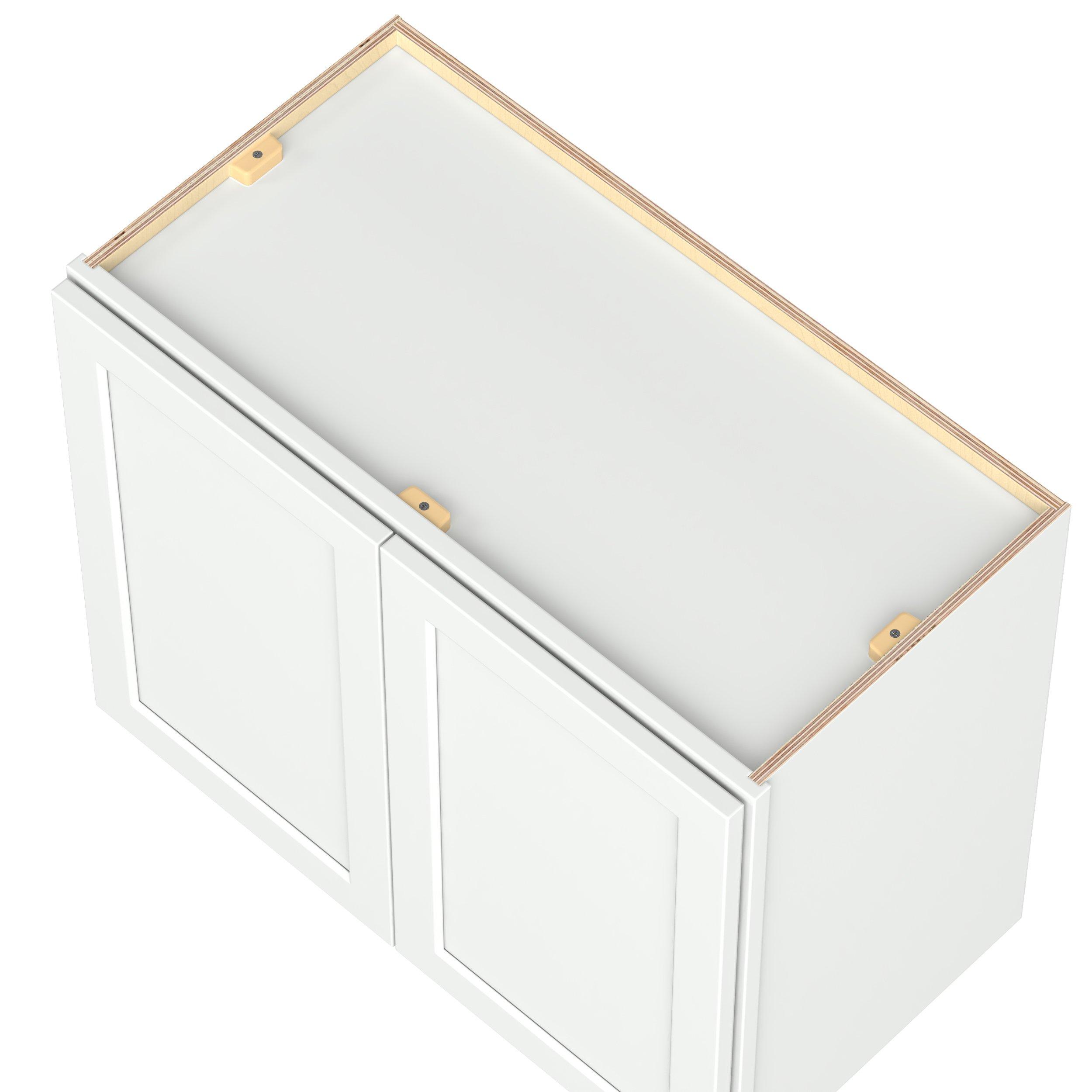 Embrace the timeless charm of the Baxley classic shaker door style. Studio Design Collection Baxley 30 in. Painted Pure White Bridge Wall Cabinet features all plywood construction, offering both superior strength and sophistication to your space. Featuring 5-piece MDF doors and dovetail drawer joints, these cabinets offer durability and elegance. Baxley classic shaker door style is designed to retain its stunning appearance and withstand the test of time.