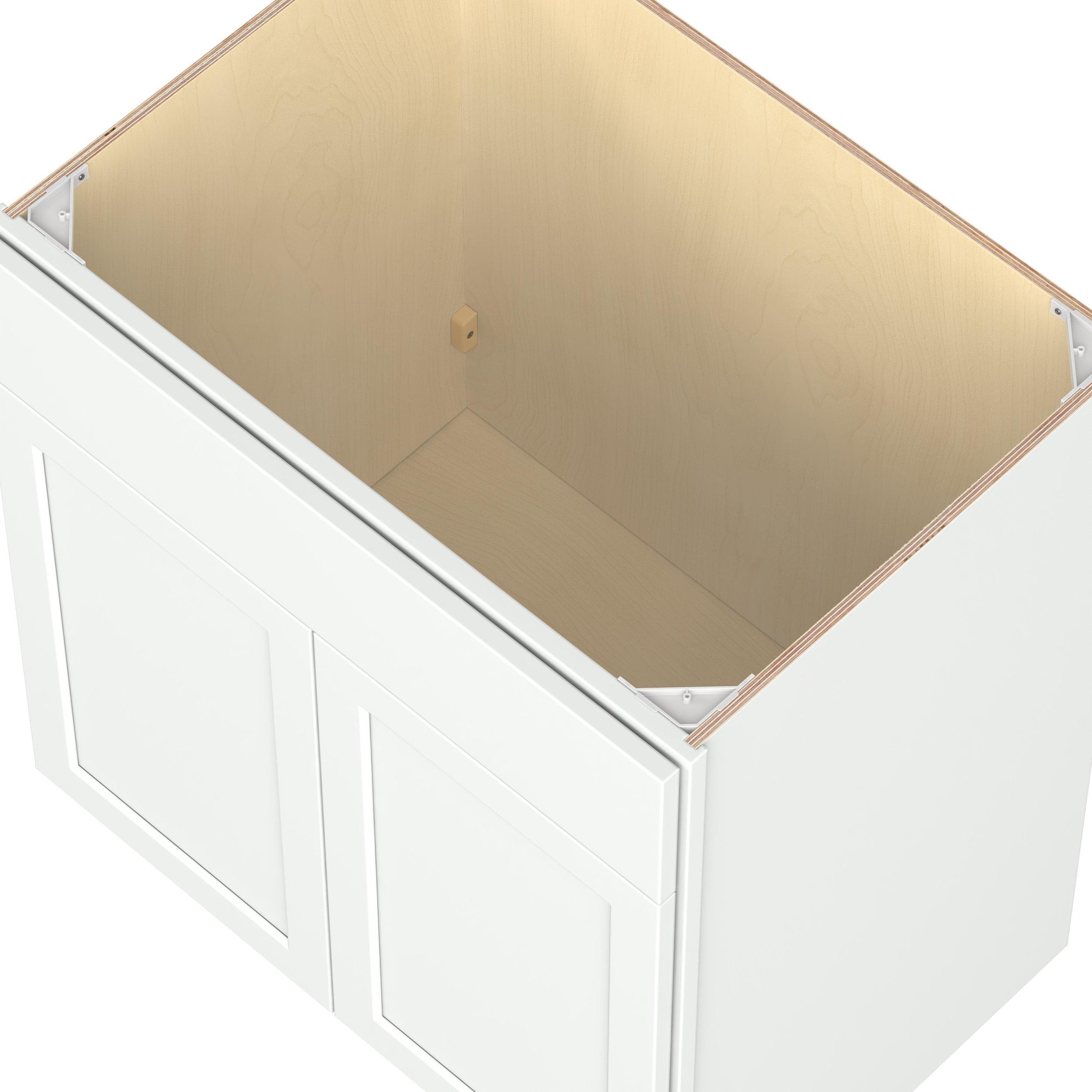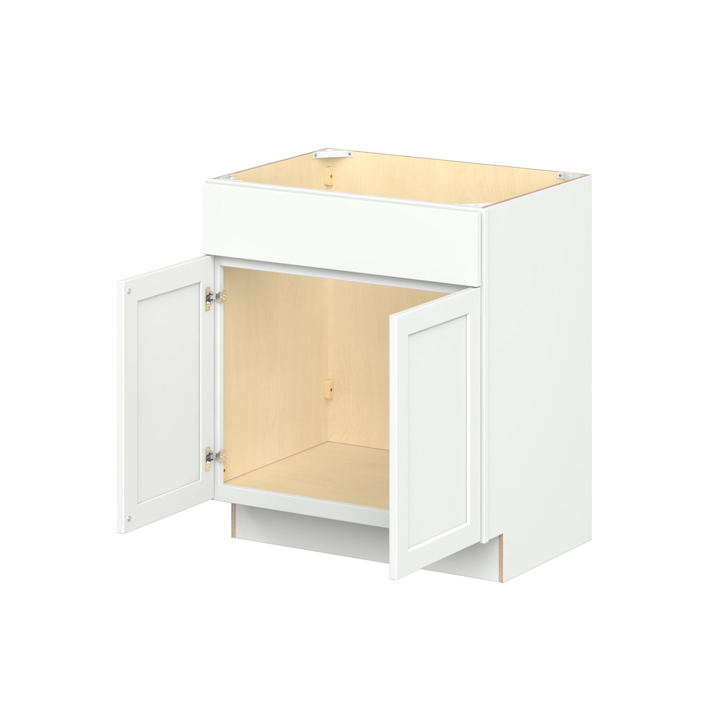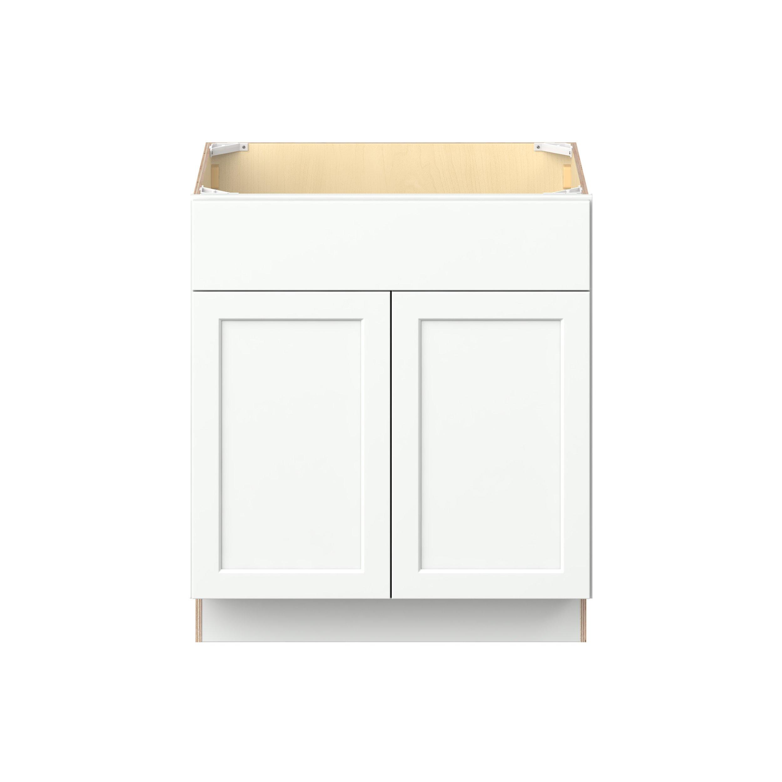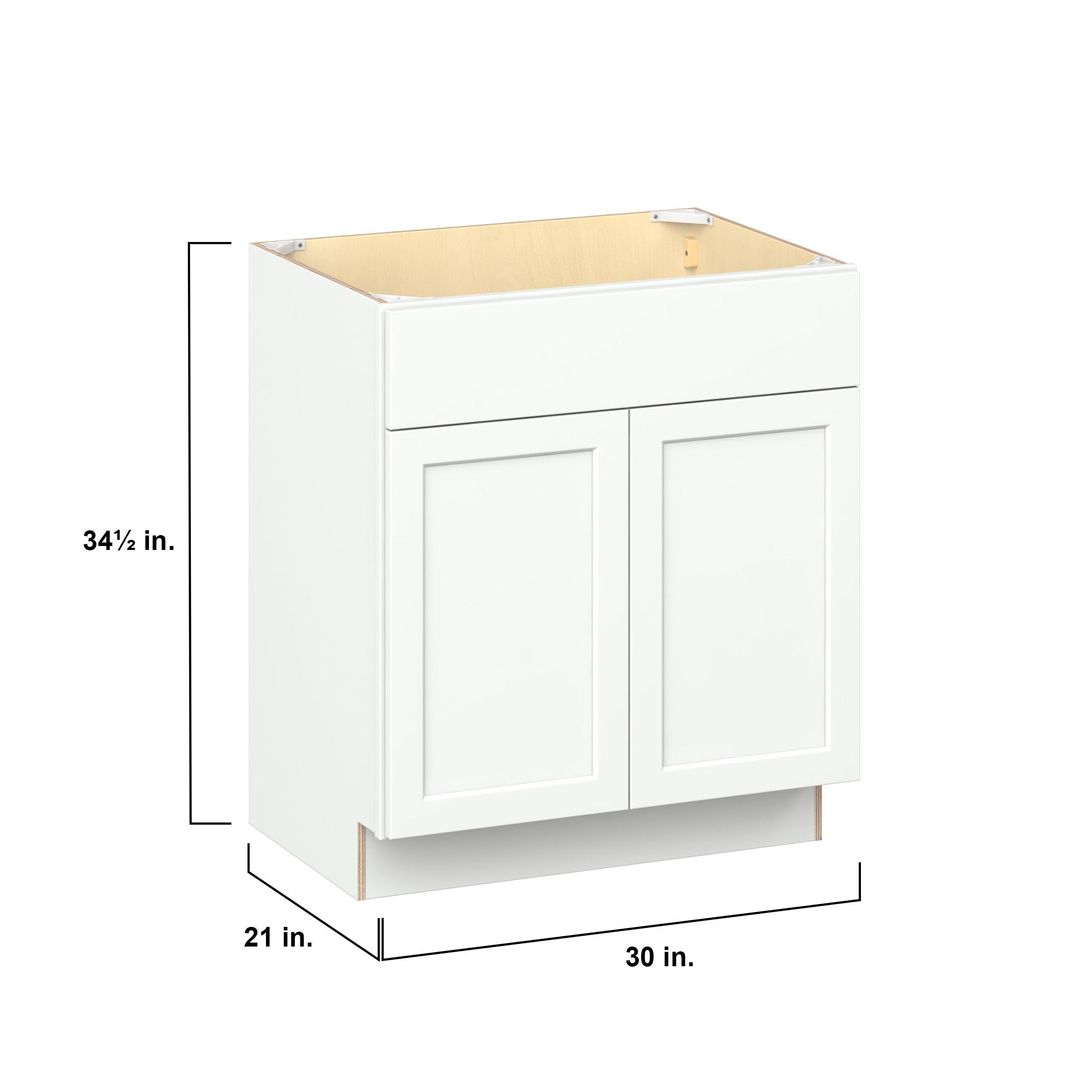 Embrace the timeless charm of the Baxley classic shaker door style. Studio Design Collection Baxley 30 in. Painted Pure White Vanity Sink Base Plywood Cabinet features all plywood construction, offering both superior strength and sophistication to your space. Featuring 5-piece MDF doors and dovetail drawer joints, these cabinets offer durability and elegance. Baxley classic shaker door style is designed to retain its stunning appearance and withstand the test of time.