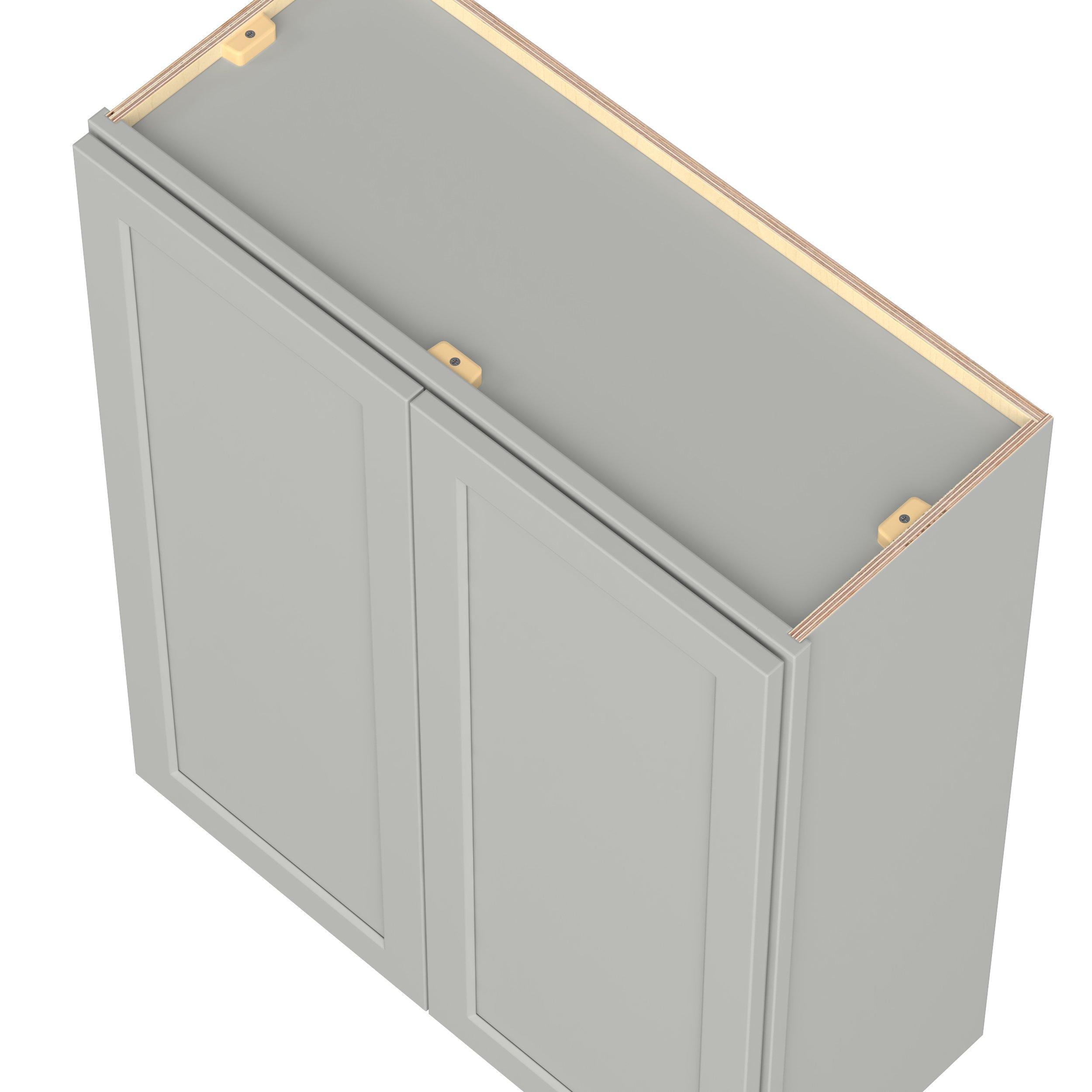 Embrace the timeless charm of the Baxley classic shaker door style. Studio Design Collection Baxley 30 in. Painted Whisper Gray Door Wall Cabinet features all plywood construction, offering both superior strength and sophistication to your space. Featuring 5-piece MDF doors and dovetail drawer joints, these cabinets offer durability and elegance. Baxley classic shaker door style is designed to retain its stunning appearance and withstand the test of time.