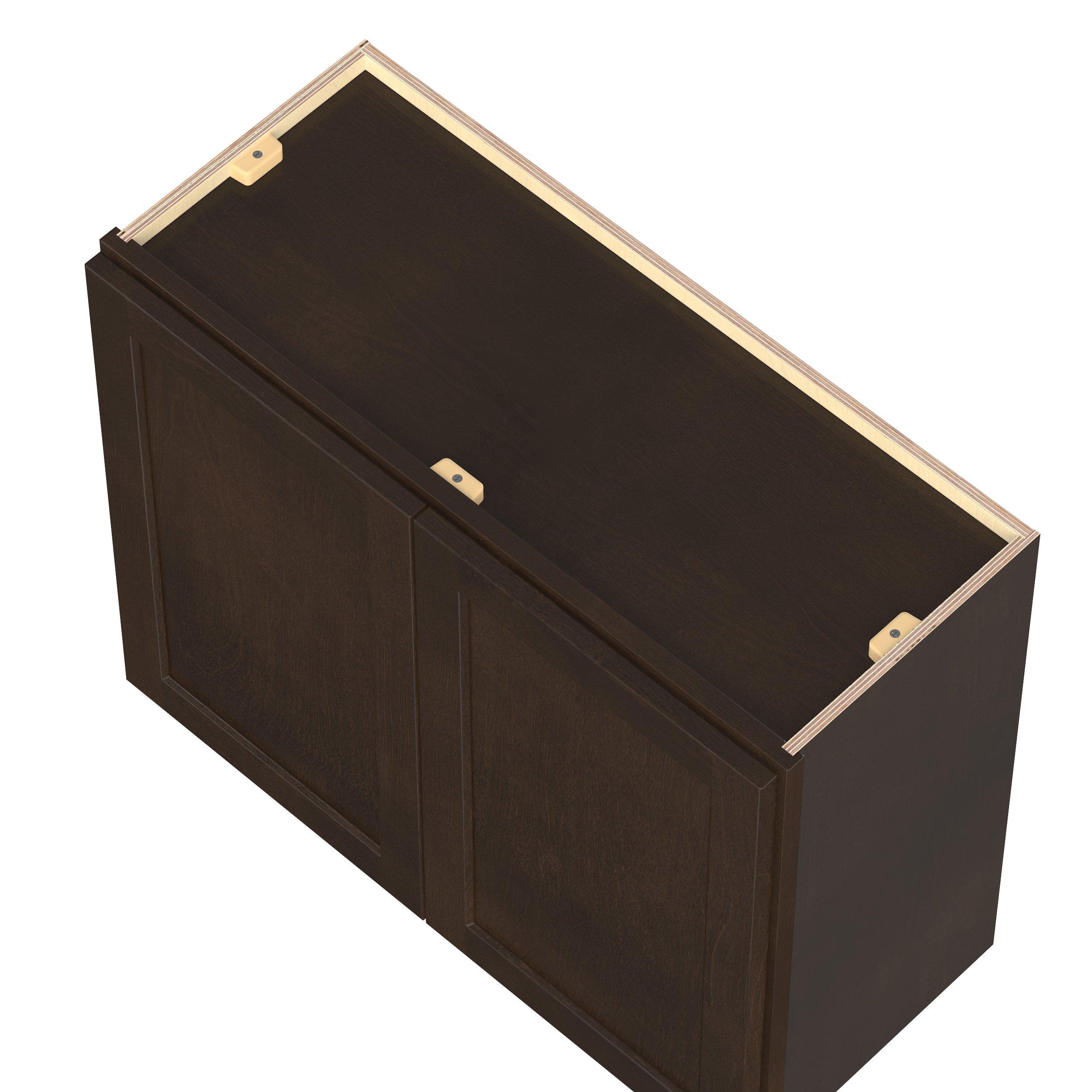 Embrace the timeless charm of the Baxley classic shaker door style. Studio Design Collection Baxley 30 in. Stained Cocoa Bridge Wall Cabinet features all plywood construction, offering both superior strength and sophistication to your space. Featuring 5-piece solid wood doors and dovetail drawer joints, these cabinets offer durability and elegance. Baxley classic shaker door style is designed to retain its stunning appearance and withstand the test of time.