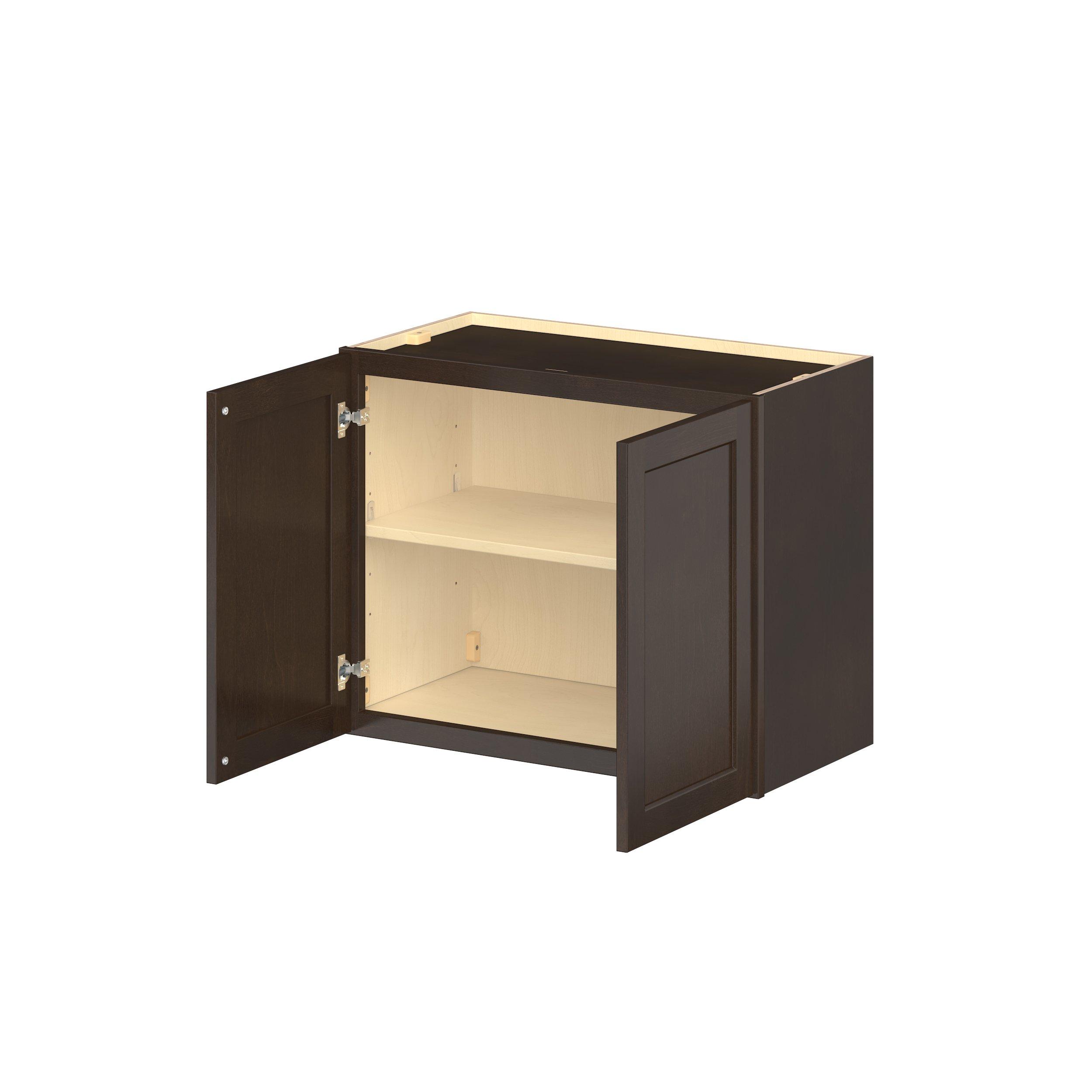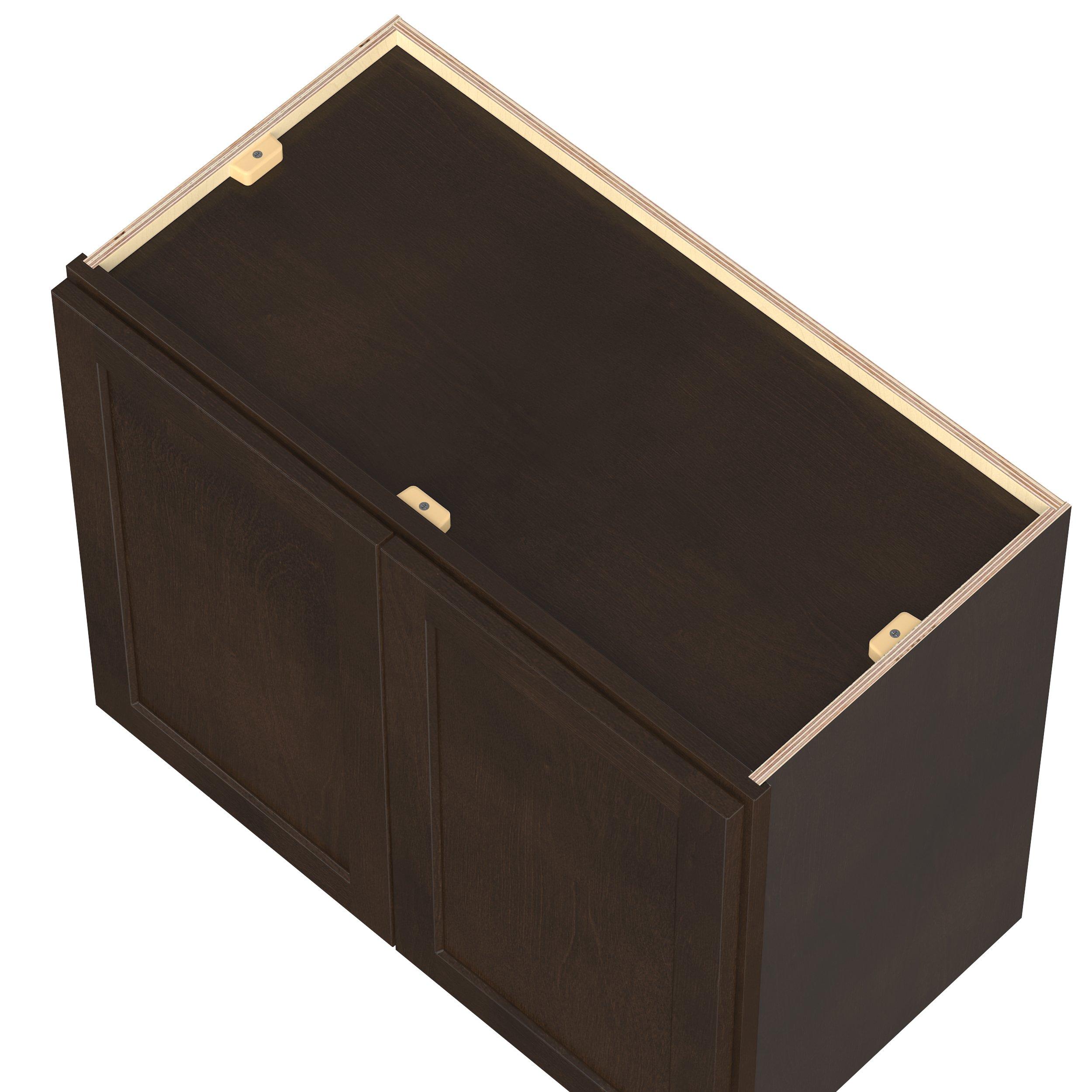 Embrace the timeless charm of the Baxley classic shaker door style. Studio Design Collection Baxley 30 in. Stained Cocoa Bridge Wall Cabinet features all plywood construction, offering both superior strength and sophistication to your space. Featuring 5-piece solid wood doors and dovetail drawer joints, these cabinets offer durability and elegance. Baxley classic shaker door style is designed to retain its stunning appearance and withstand the test of time.