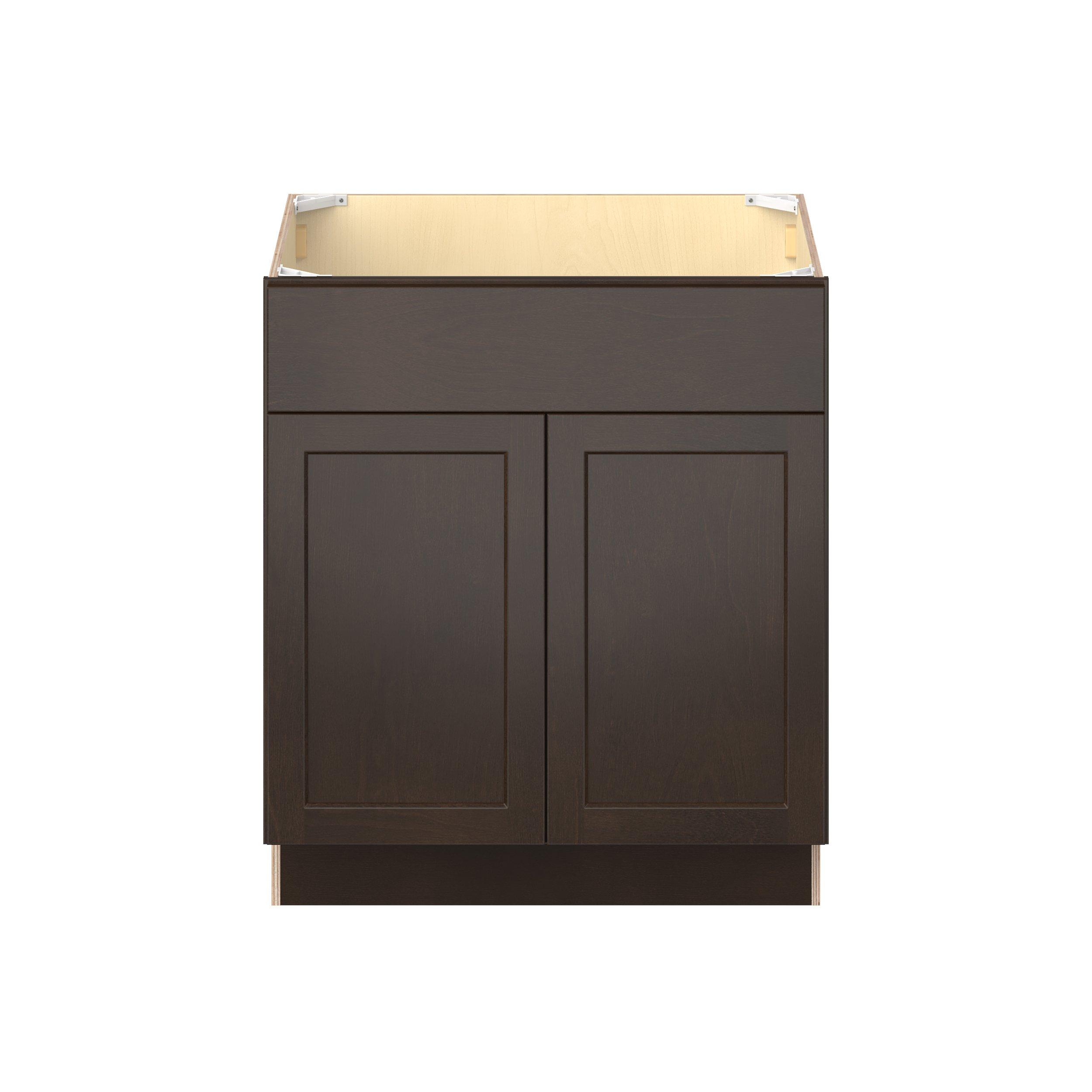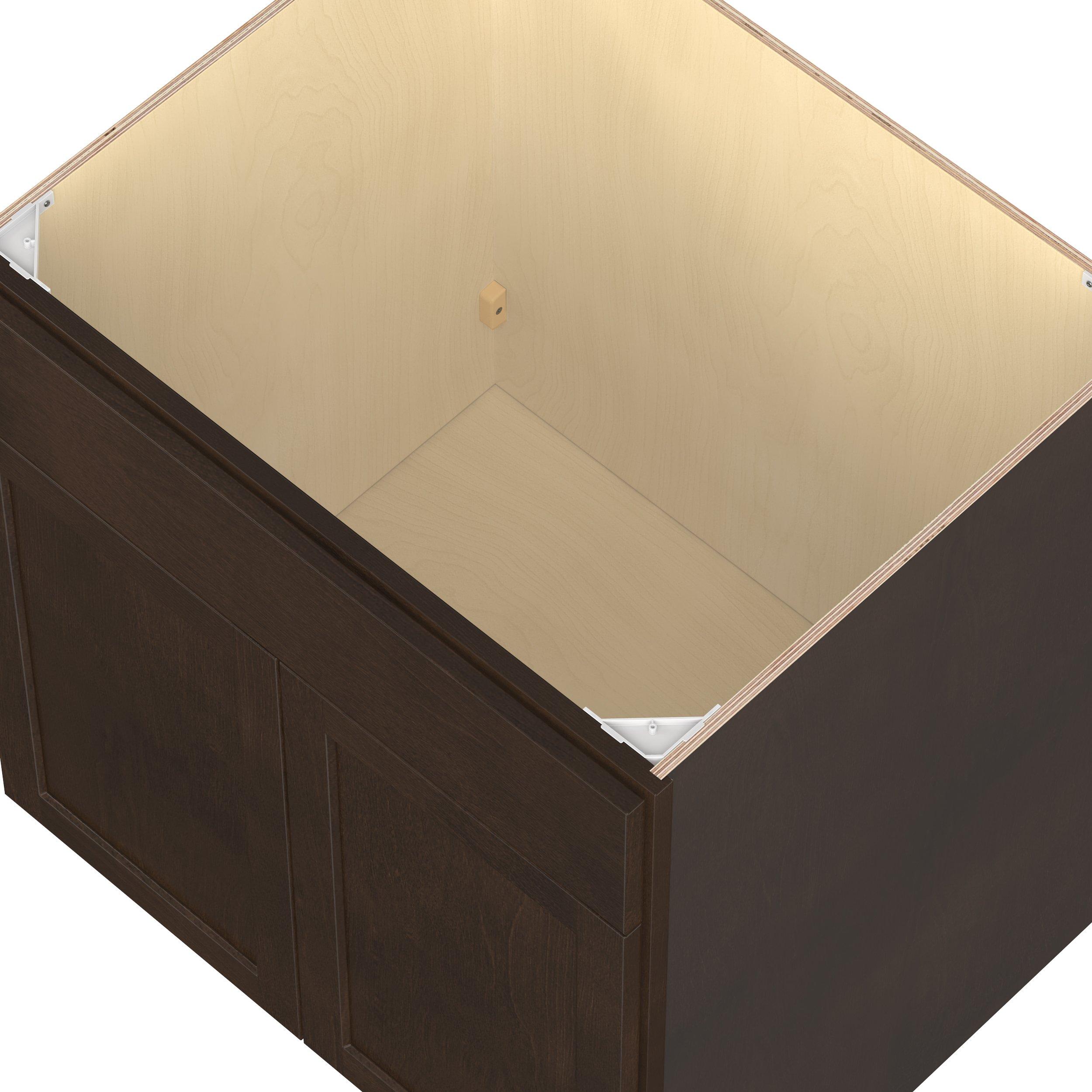 Embrace the timeless charm of the Baxley classic shaker door style. Studio Design Collection Baxley 30 in. Stained Cocoa Sink Base Cabinet with False Front features all plywood construction, offering both superior strength and sophistication to your space. Featuring 5-piece solid wood doors and dovetail drawer joints, these cabinets offer durability and elegance. Baxley classic shaker door style is designed to retain its stunning appearance and withstand the test of time.