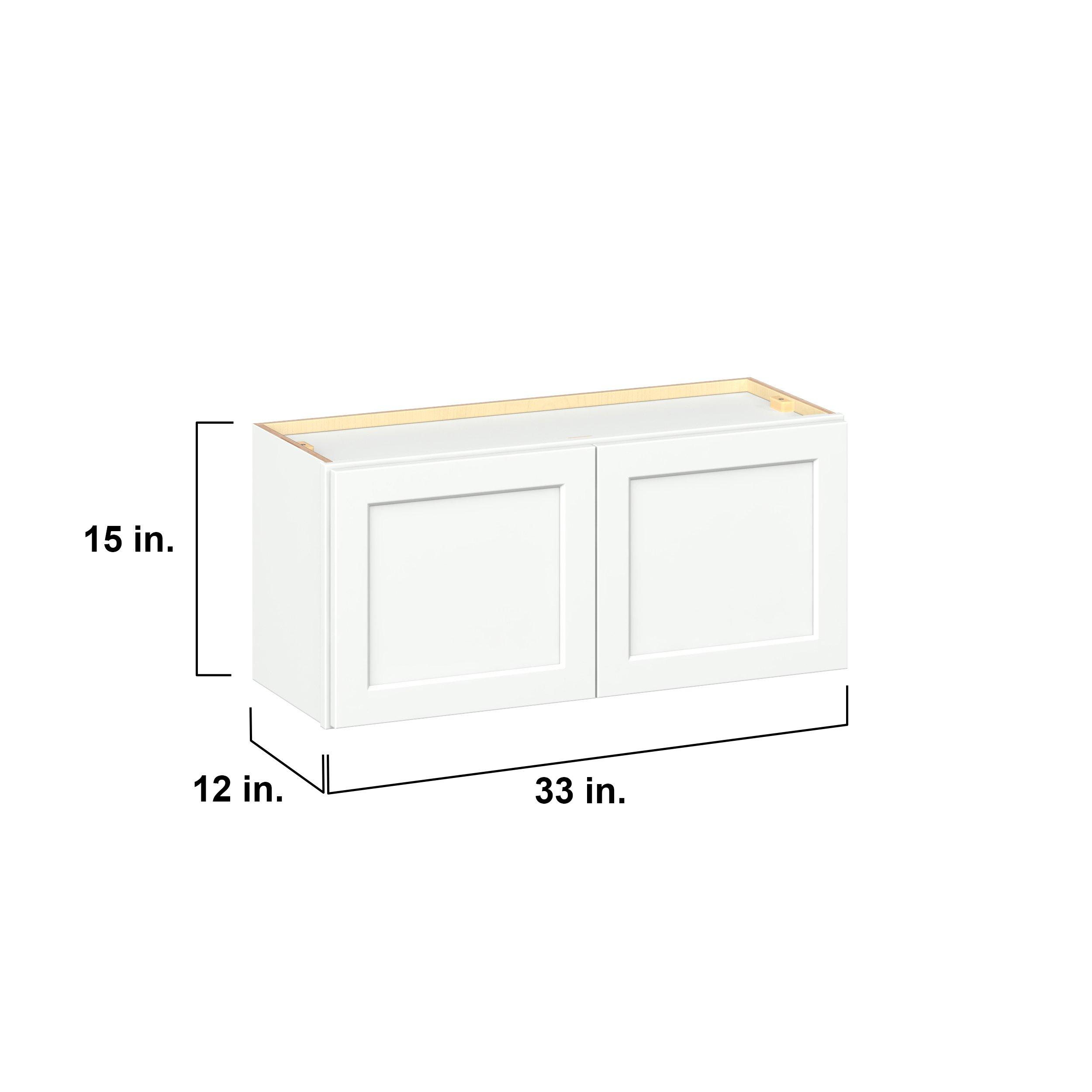 Embrace the timeless charm of the Baxley classic shaker door style. Studio Design Collection Baxley 33 in. Painted Pure White Bridge Wall Cabinet features all plywood construction, offering both superior strength and sophistication to your space. Featuring 5-piece MDF doors and dovetail drawer joints, these cabinets offer durability and elegance. Baxley classic shaker door style is designed to retain its stunning appearance and withstand the test of time.