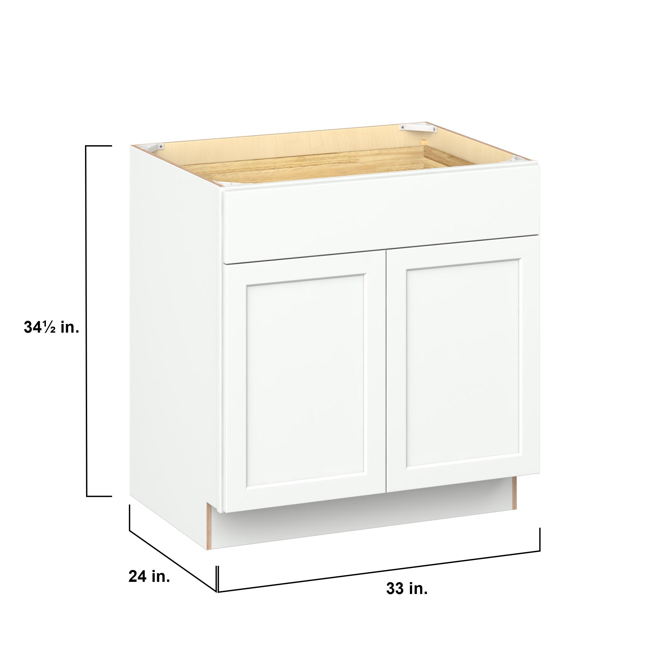 Embrace the timeless charm of the Baxley classic shaker door style. Studio Design Collection Baxley 33 in. Painted Pure White Door and Drawer Base Cabinet features all plywood construction, offering both superior strength and sophistication to your space. Featuring 5-piece MDF doors and dovetail drawer joints, these cabinets offer durability and elegance. Baxley classic shaker door style is designed to retain its stunning appearance and withstand the test of time.