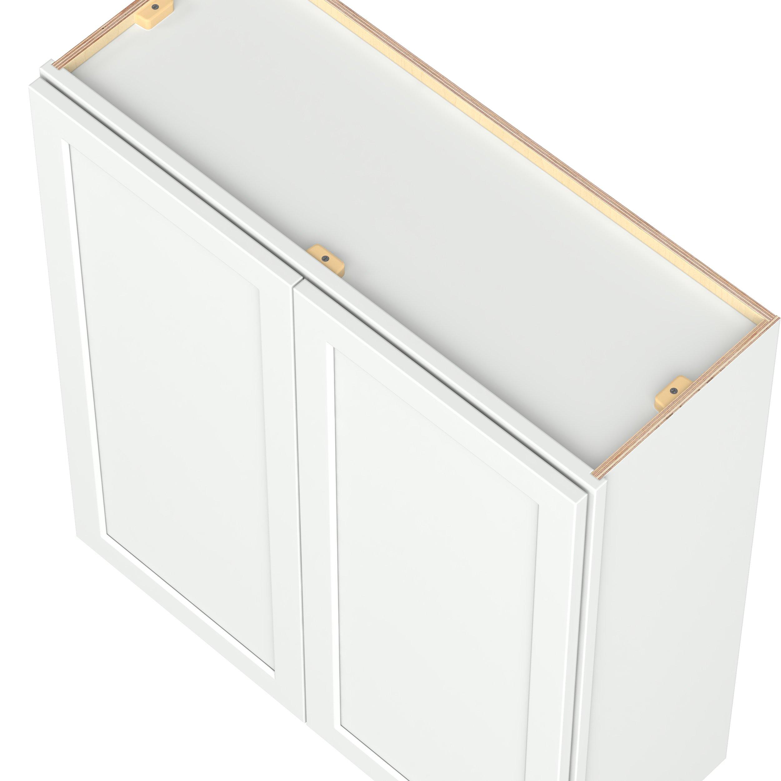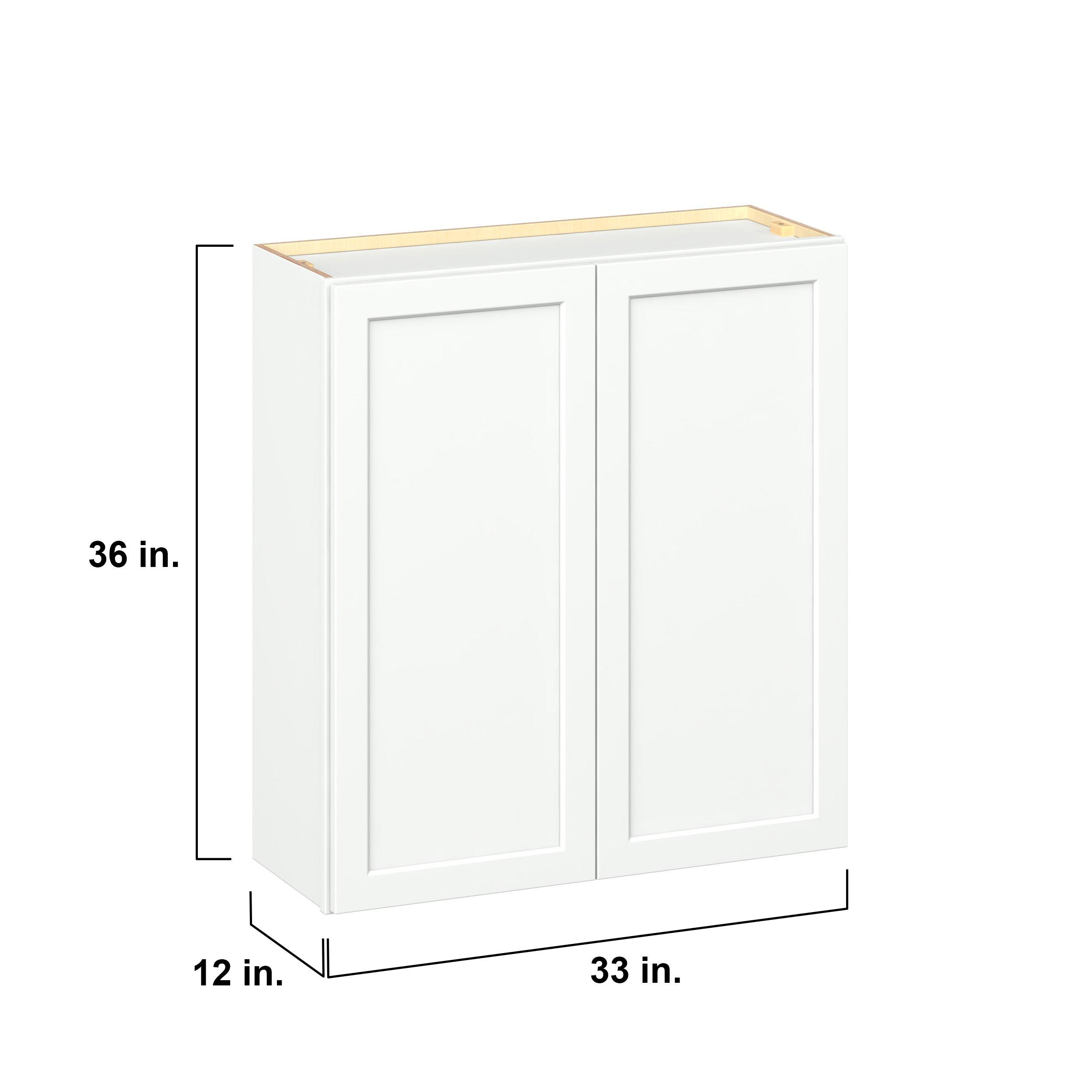 Embrace the timeless charm of the Baxley classic shaker door style. Studio Design Collection Baxley 33 in. Painted Pure White Door Wall Cabinet features all plywood construction, offering both superior strength and sophistication to your space. Featuring 5-piece MDF doors and dovetail drawer joints, these cabinets offer durability and elegance. Baxley classic shaker door style is designed to retain its stunning appearance and withstand the test of time.